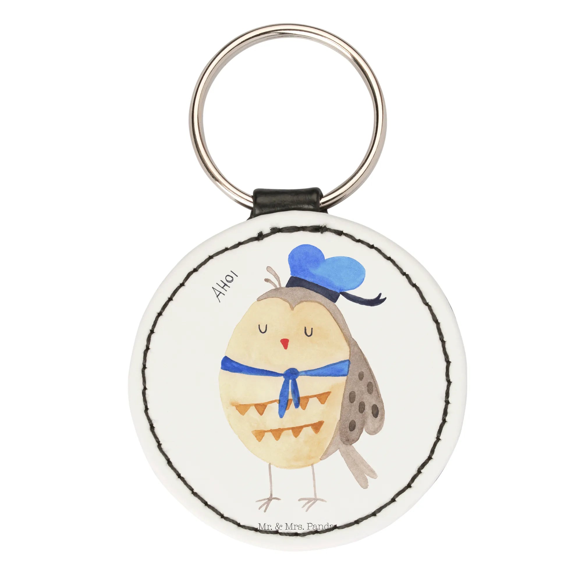 Okrągły brelok sowa Marynarz - Biały
