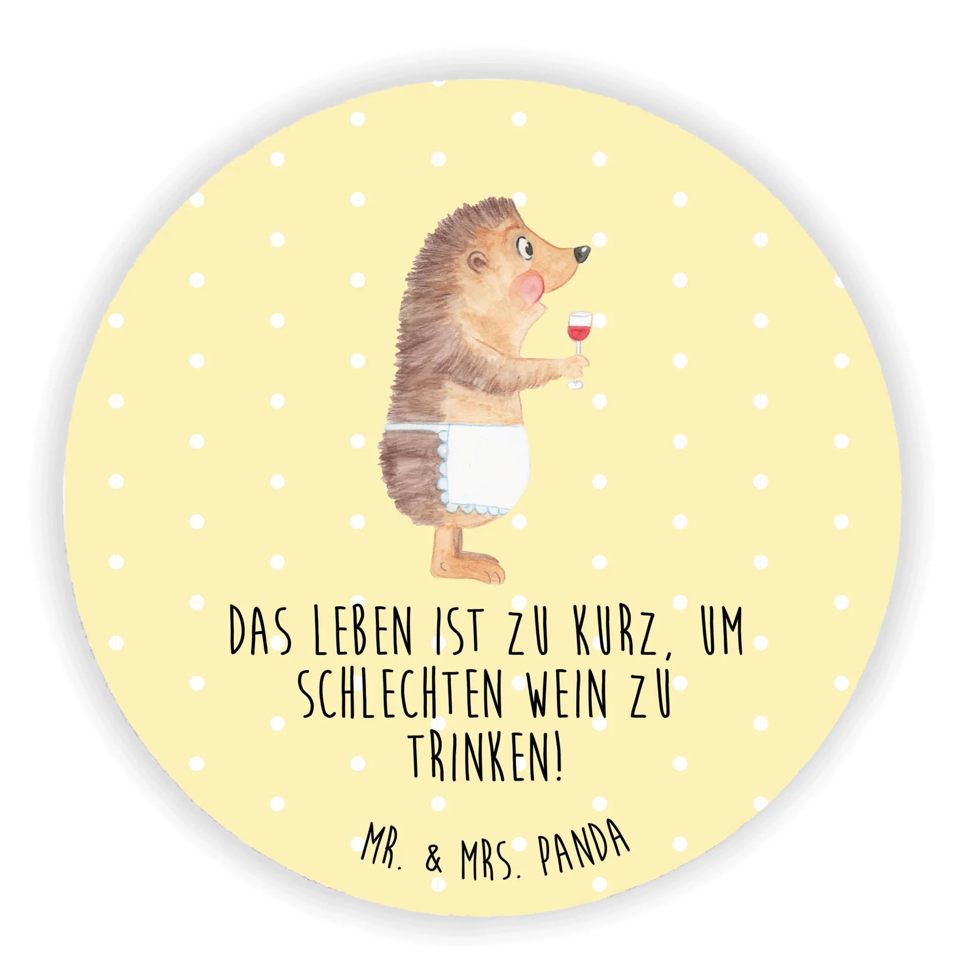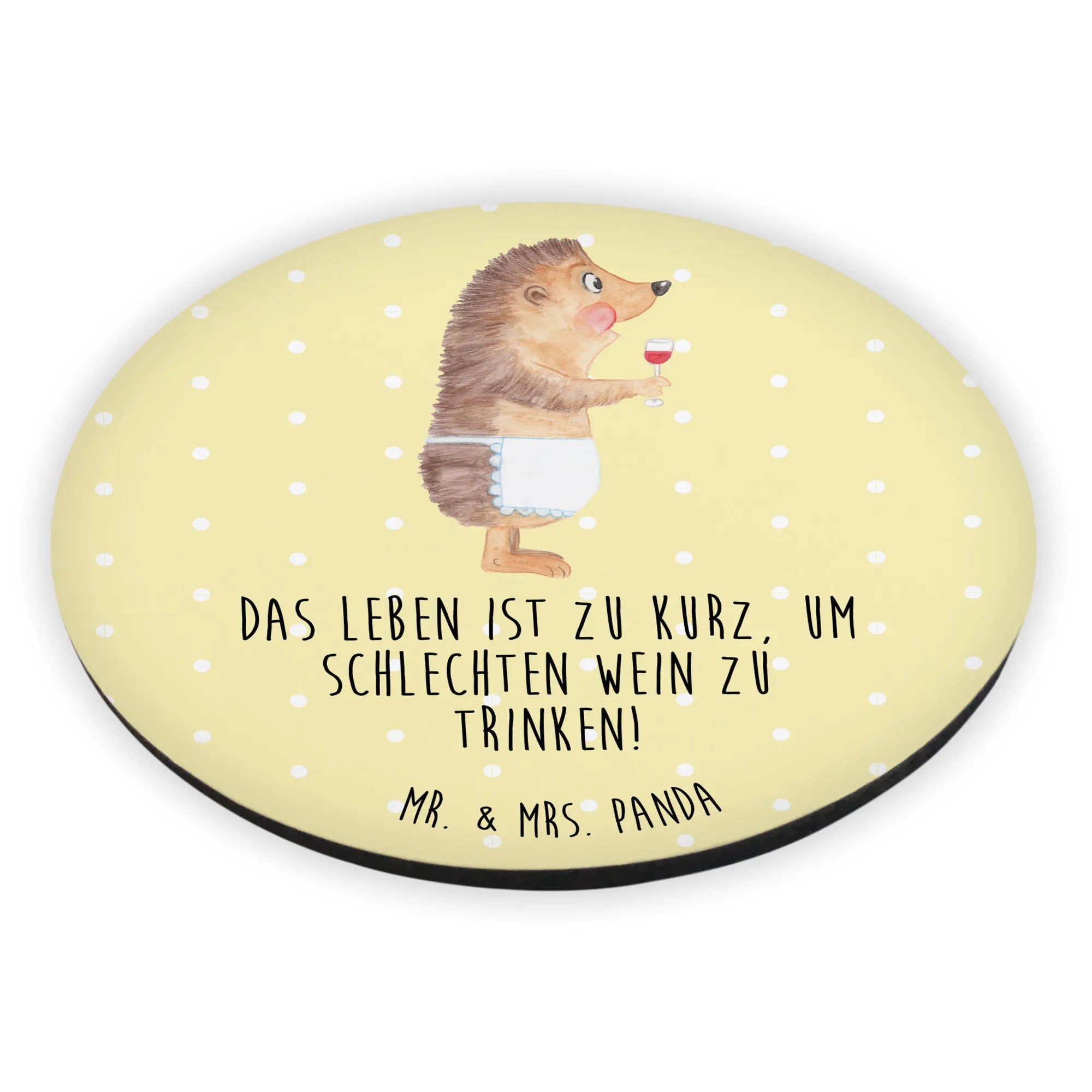 Okrągły magnes jeż wino - z napisem - Pastelowy żółty