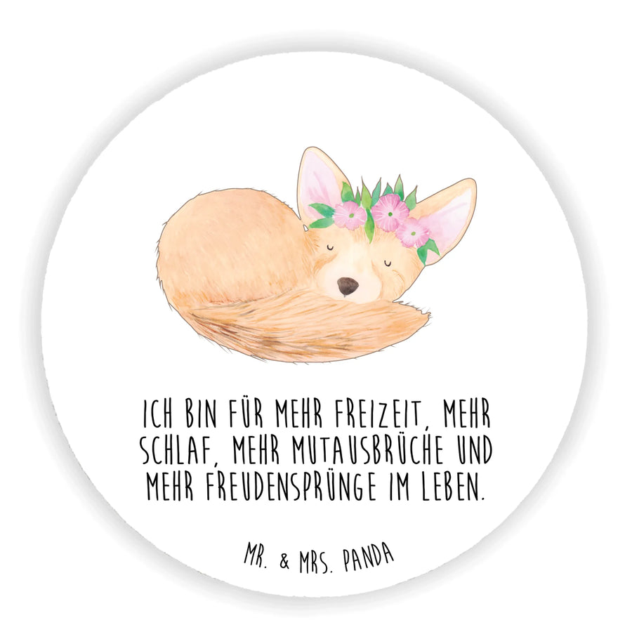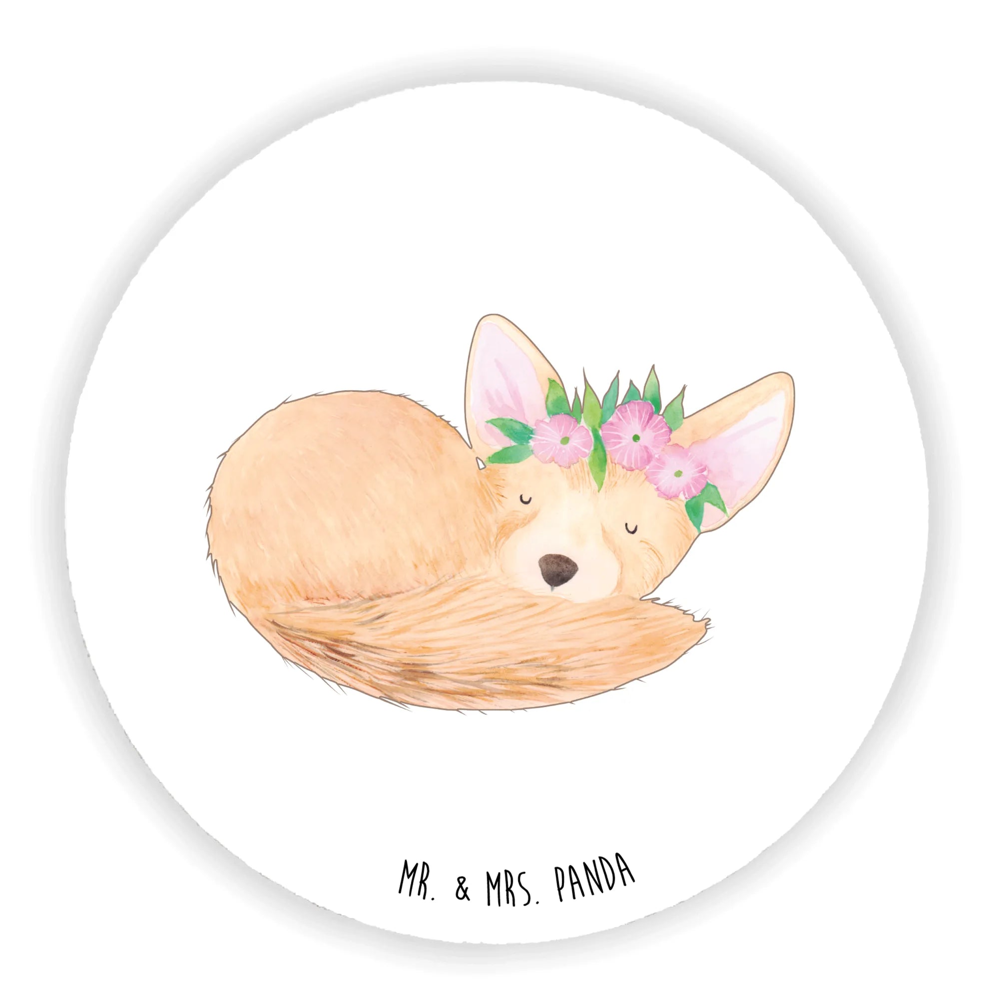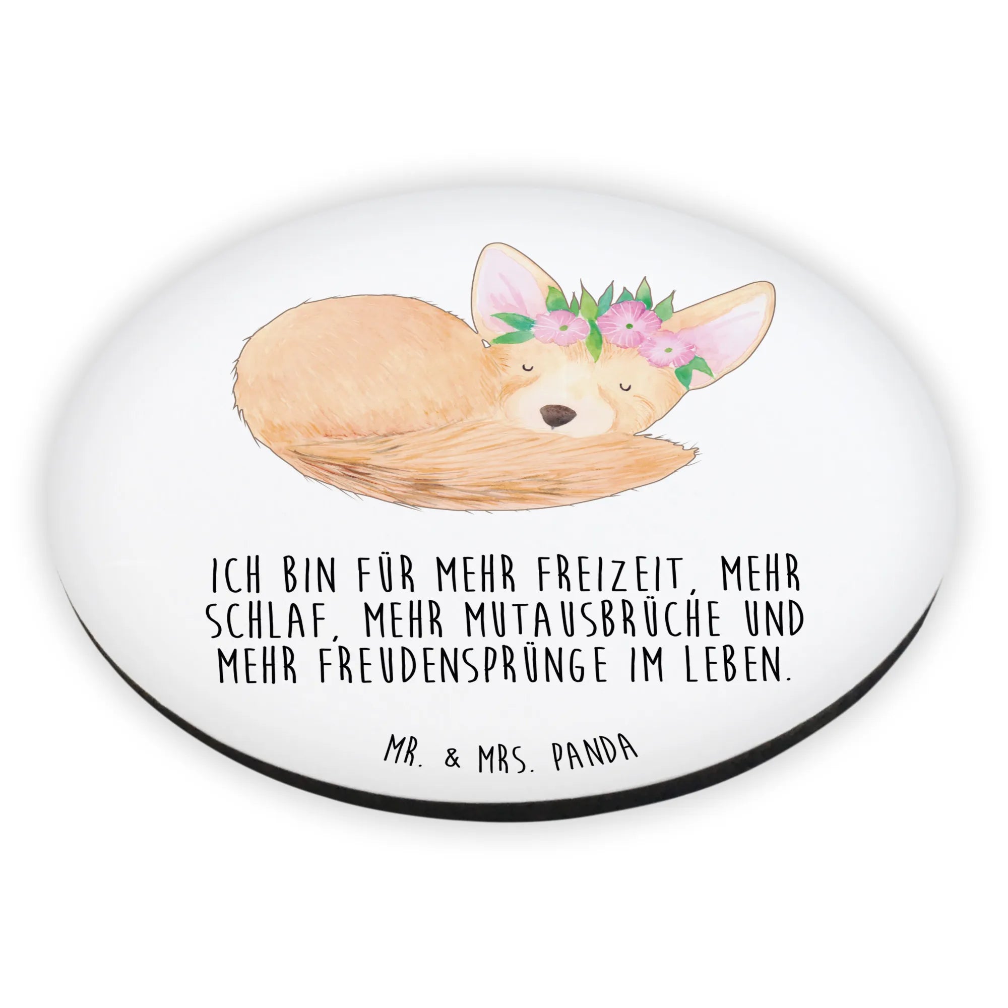 Okrągły magnes lis pustynny kwiaty - z napisem