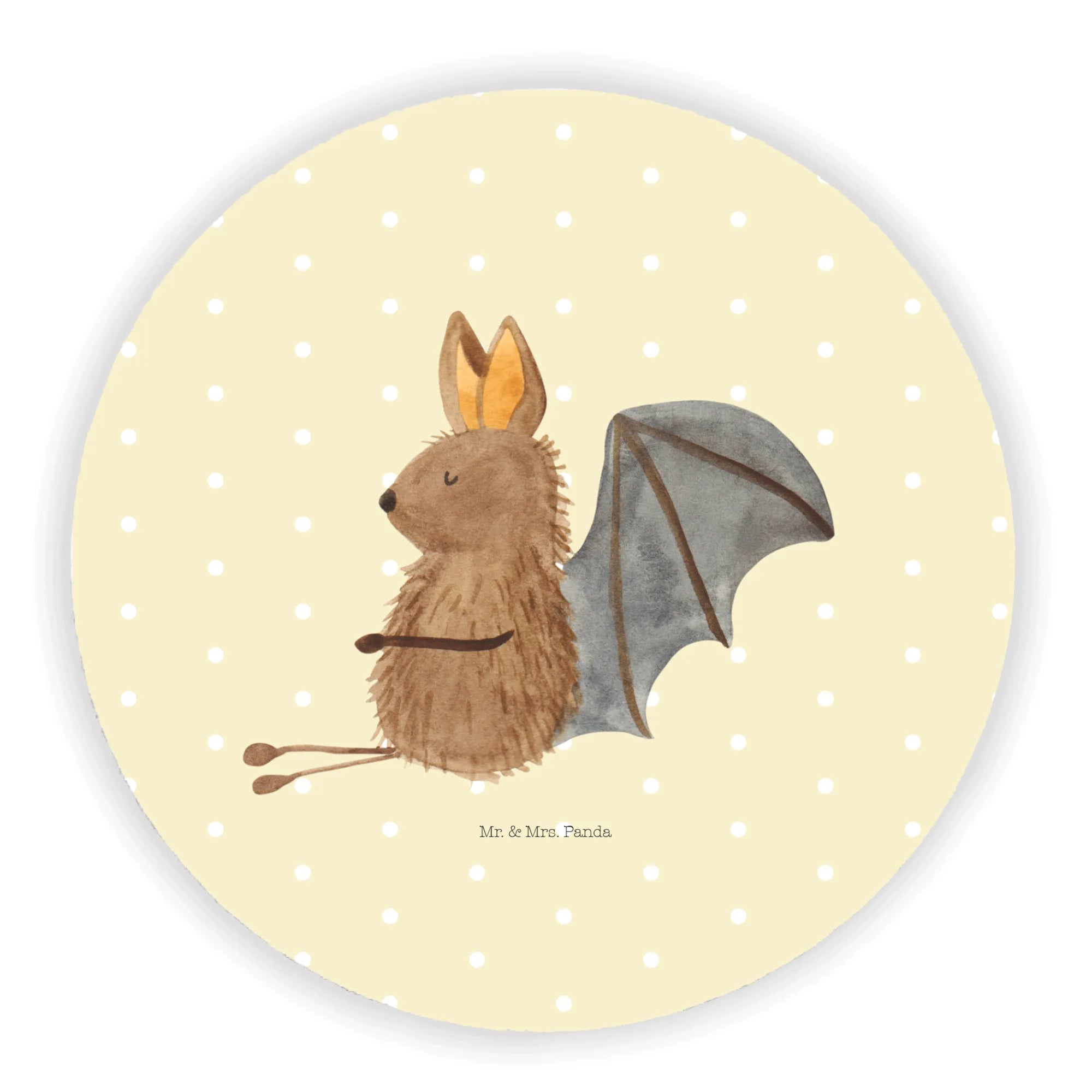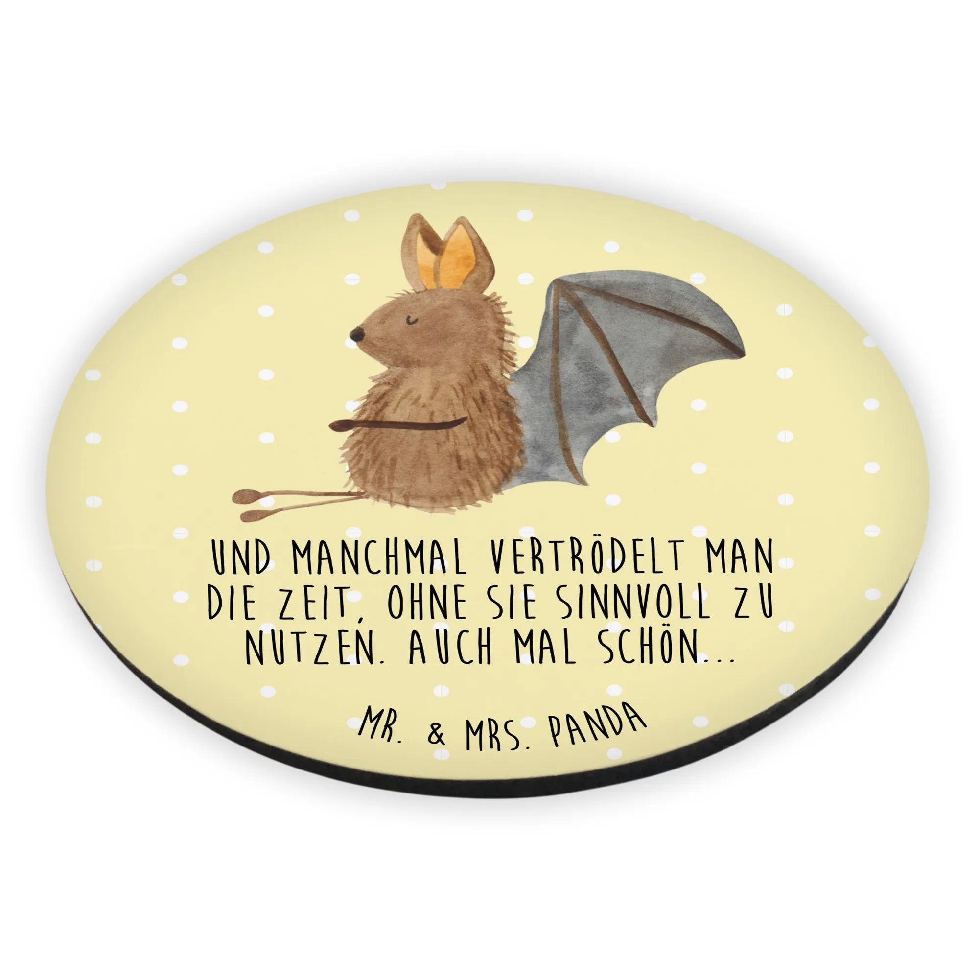 Okrągły magnes Nietoperz siedzenie - z napisem - Żółty Pastel
