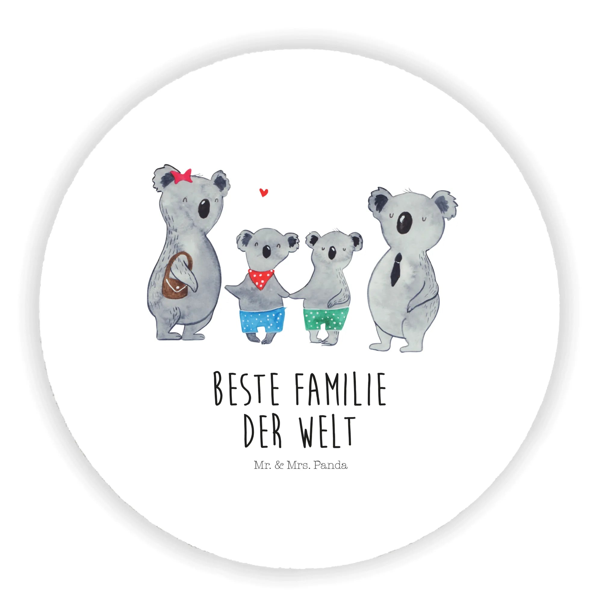 Okrągły magnes Rodzina koali dwa - z napisem - Biały