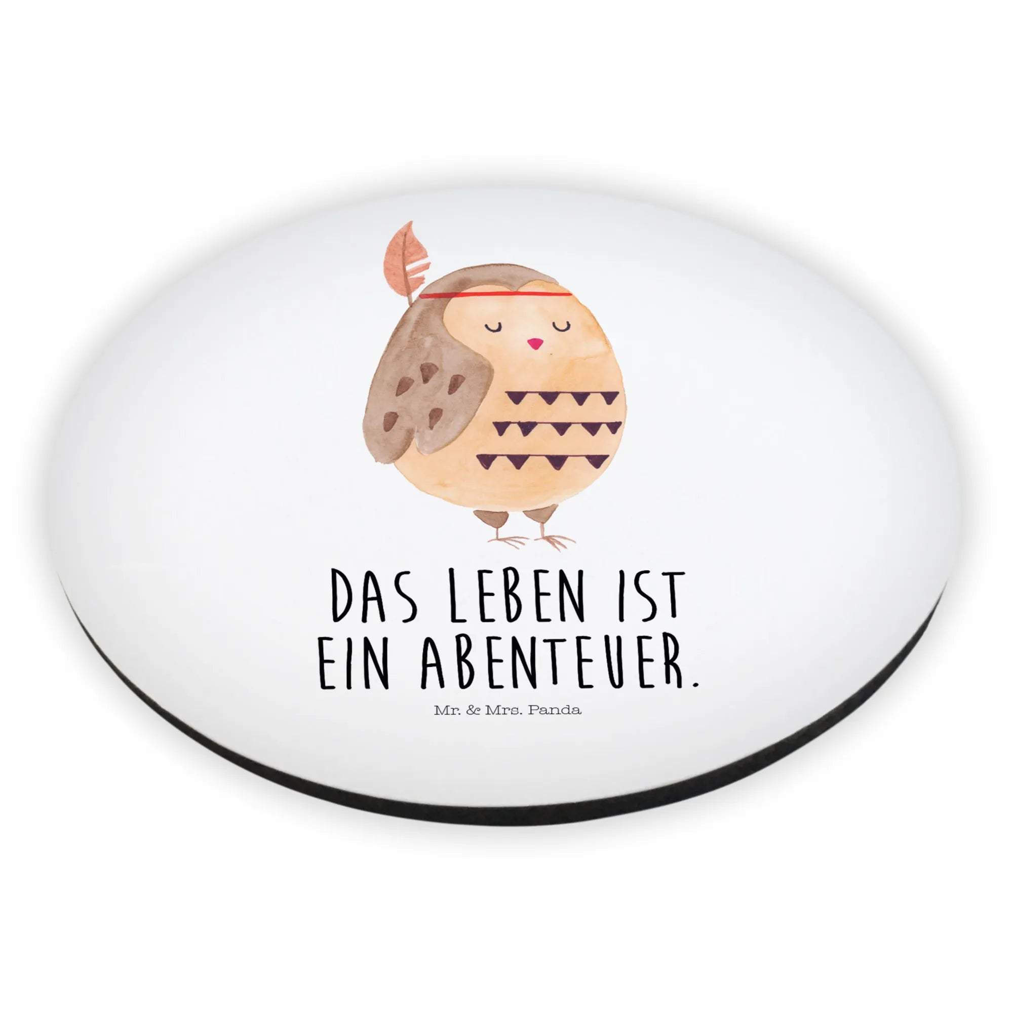 Okrągły magnes sowa Ozdoba z piór - z napisem - Turkusowy Pastel