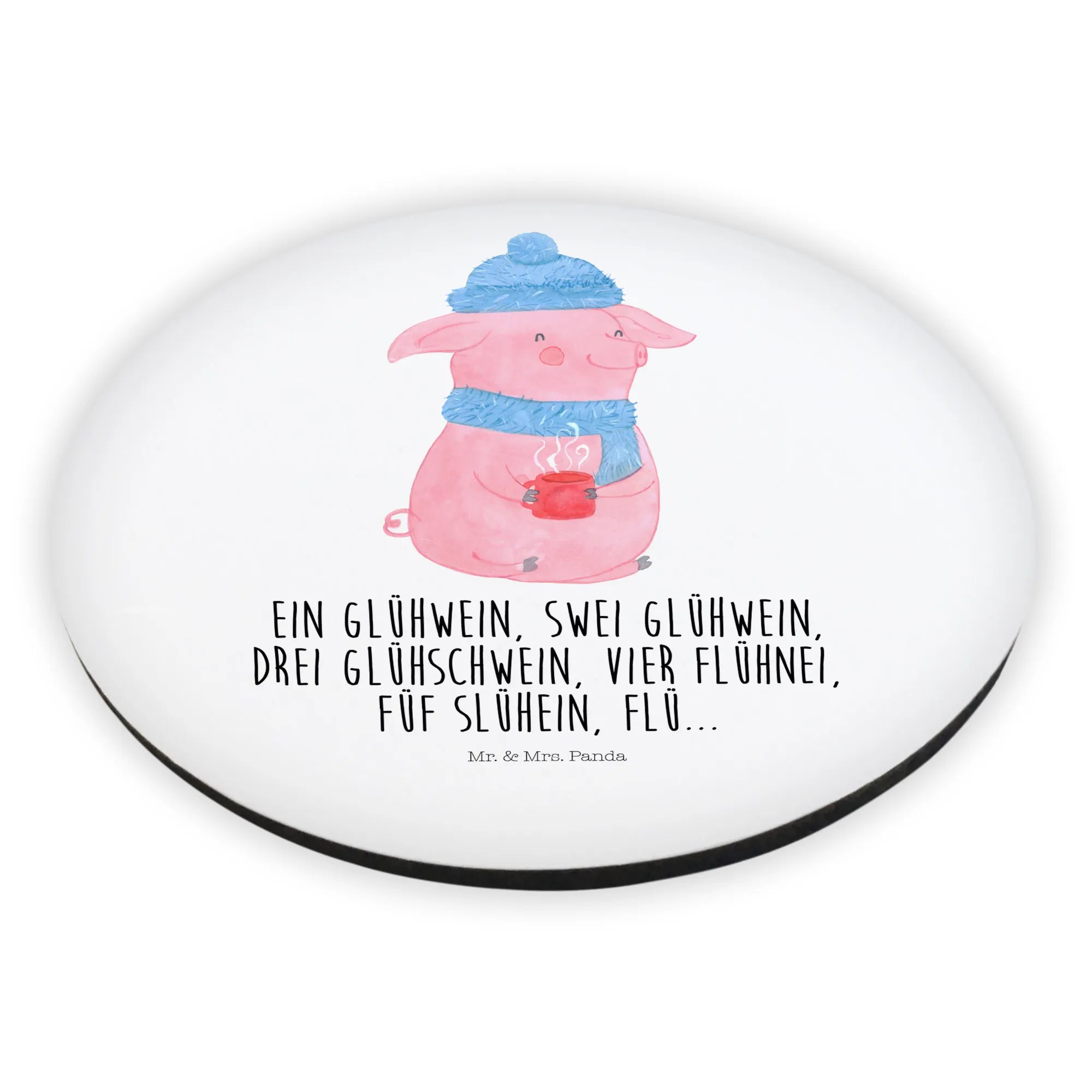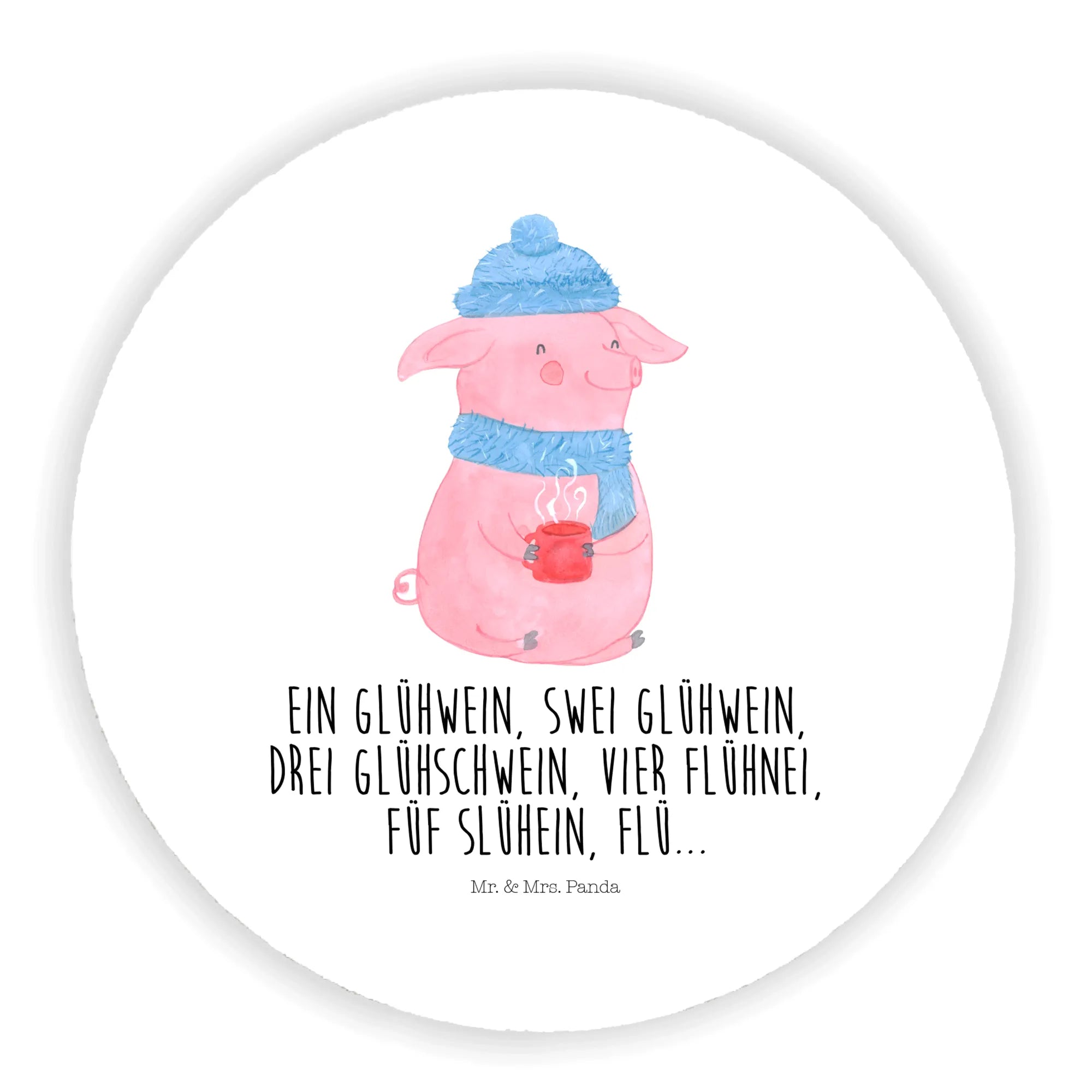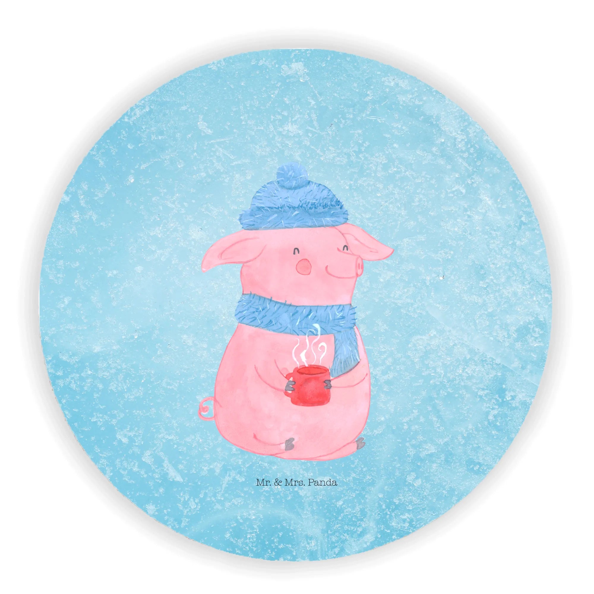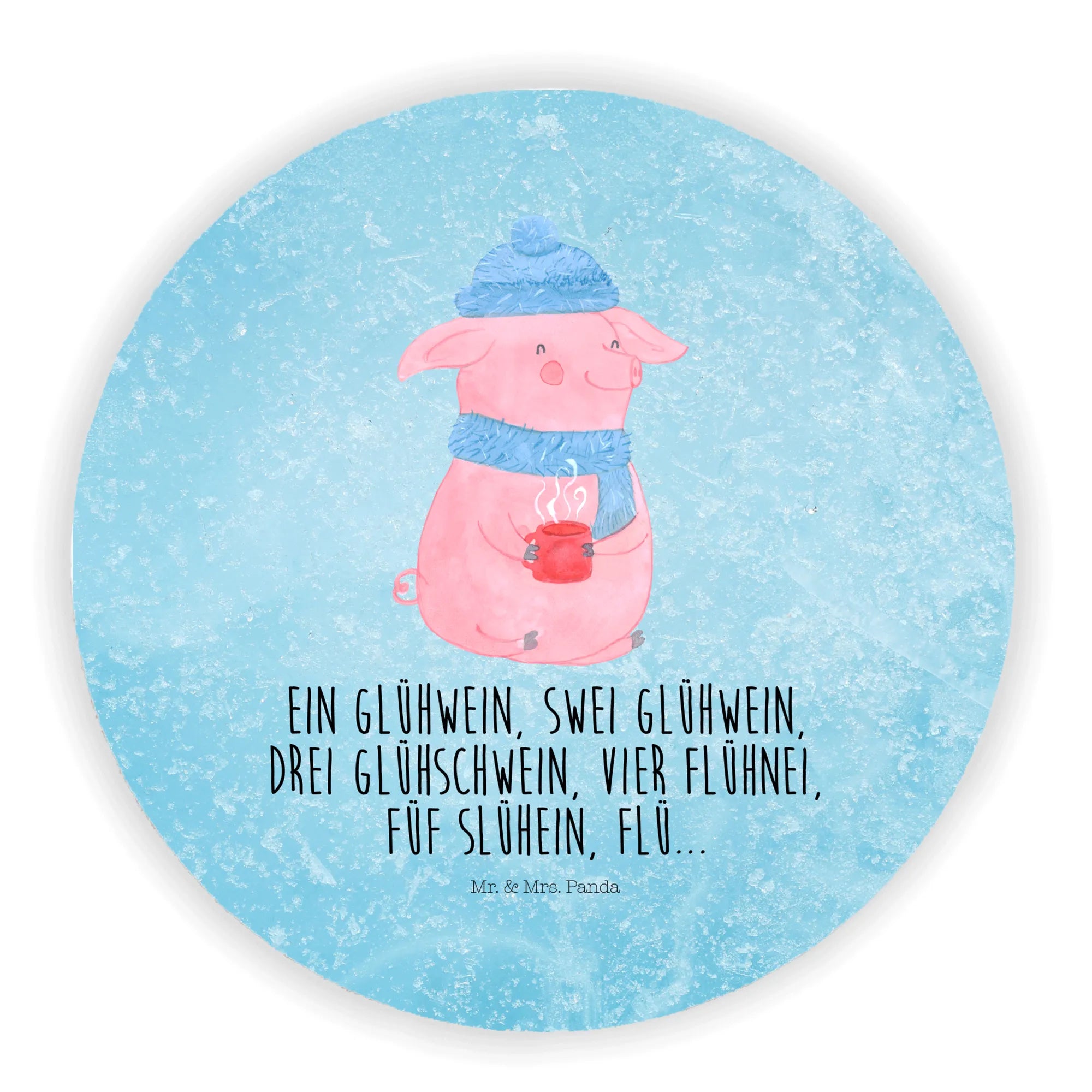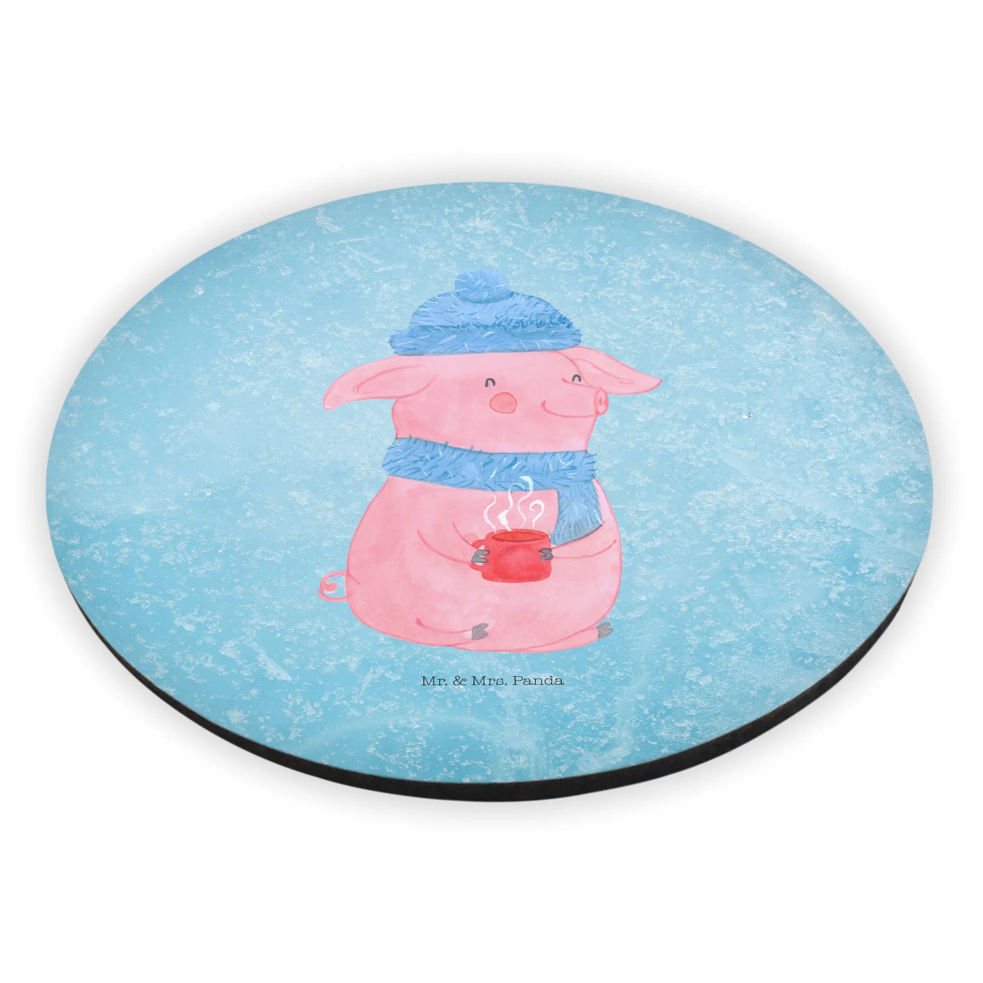 Okrągły magnes Świnka grzane wino - z napisem - lodowoniebieski