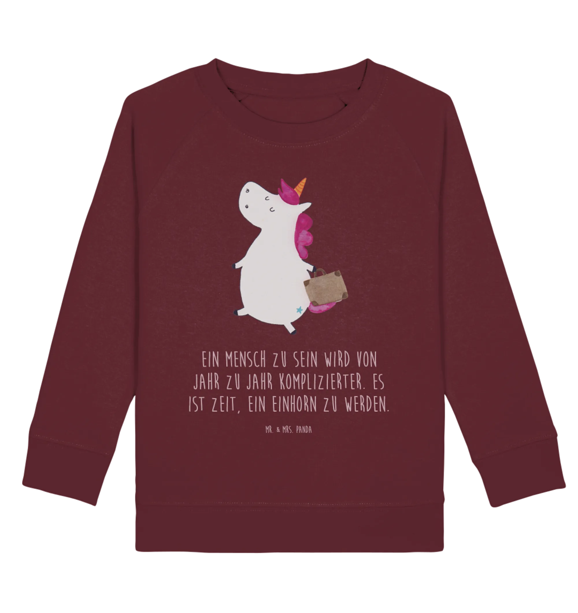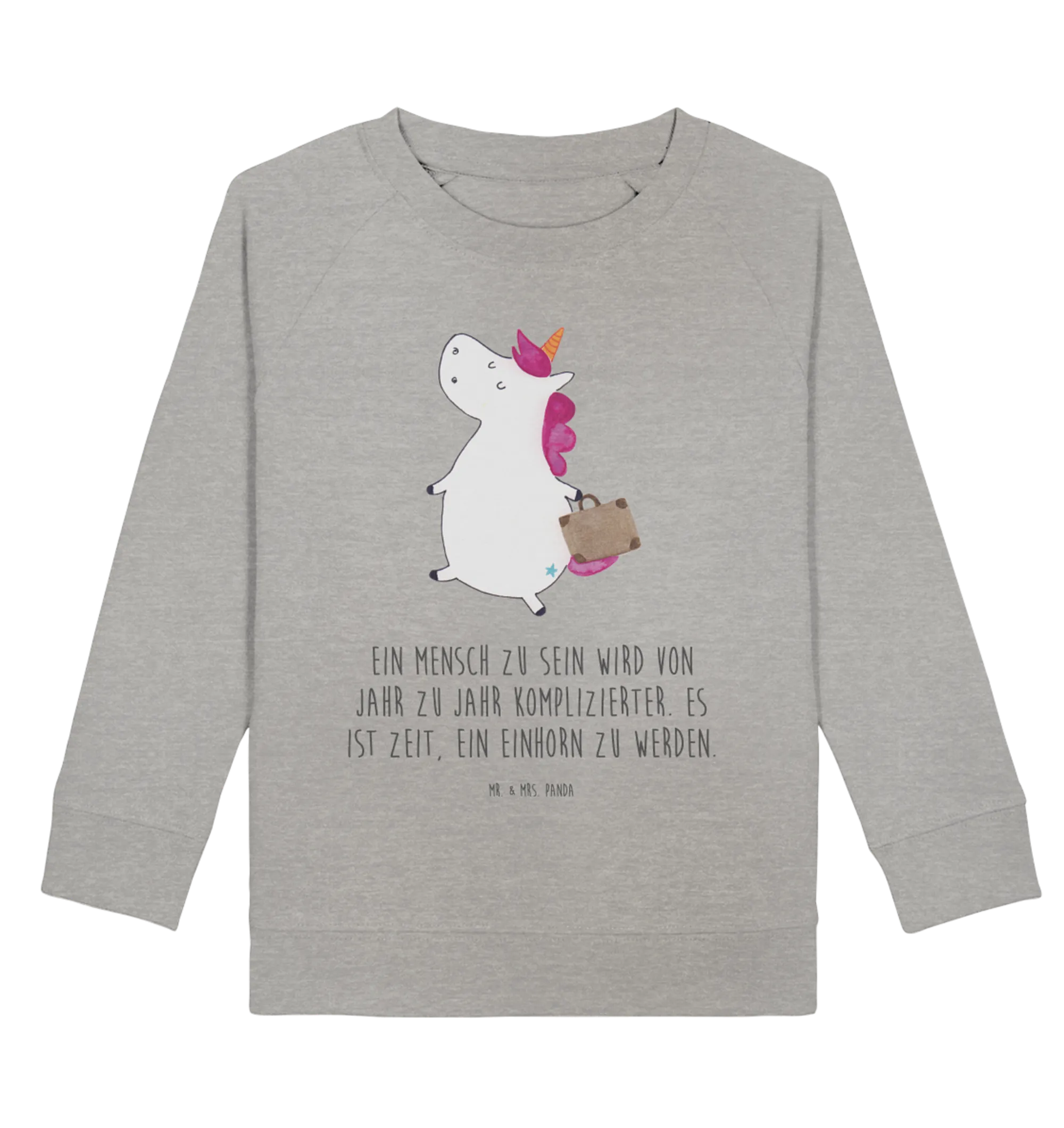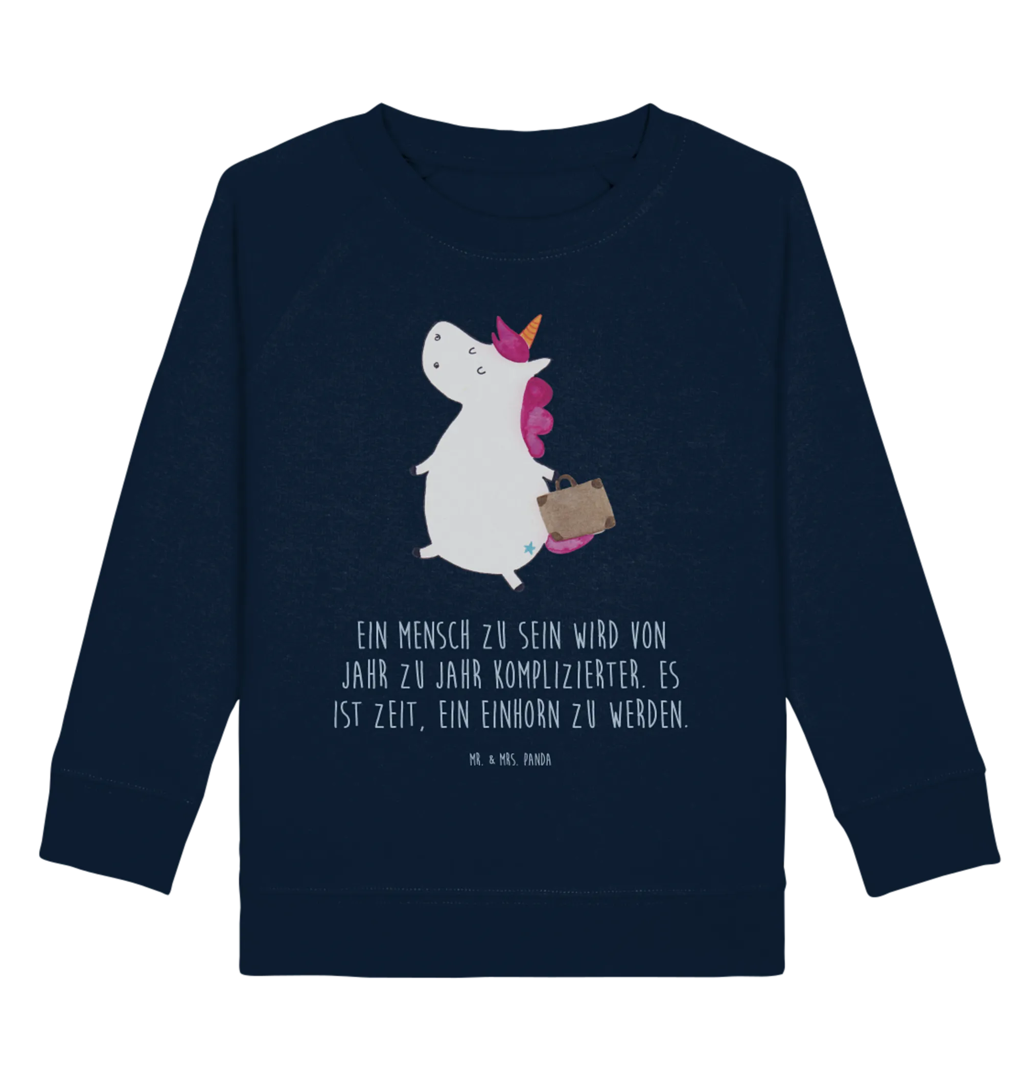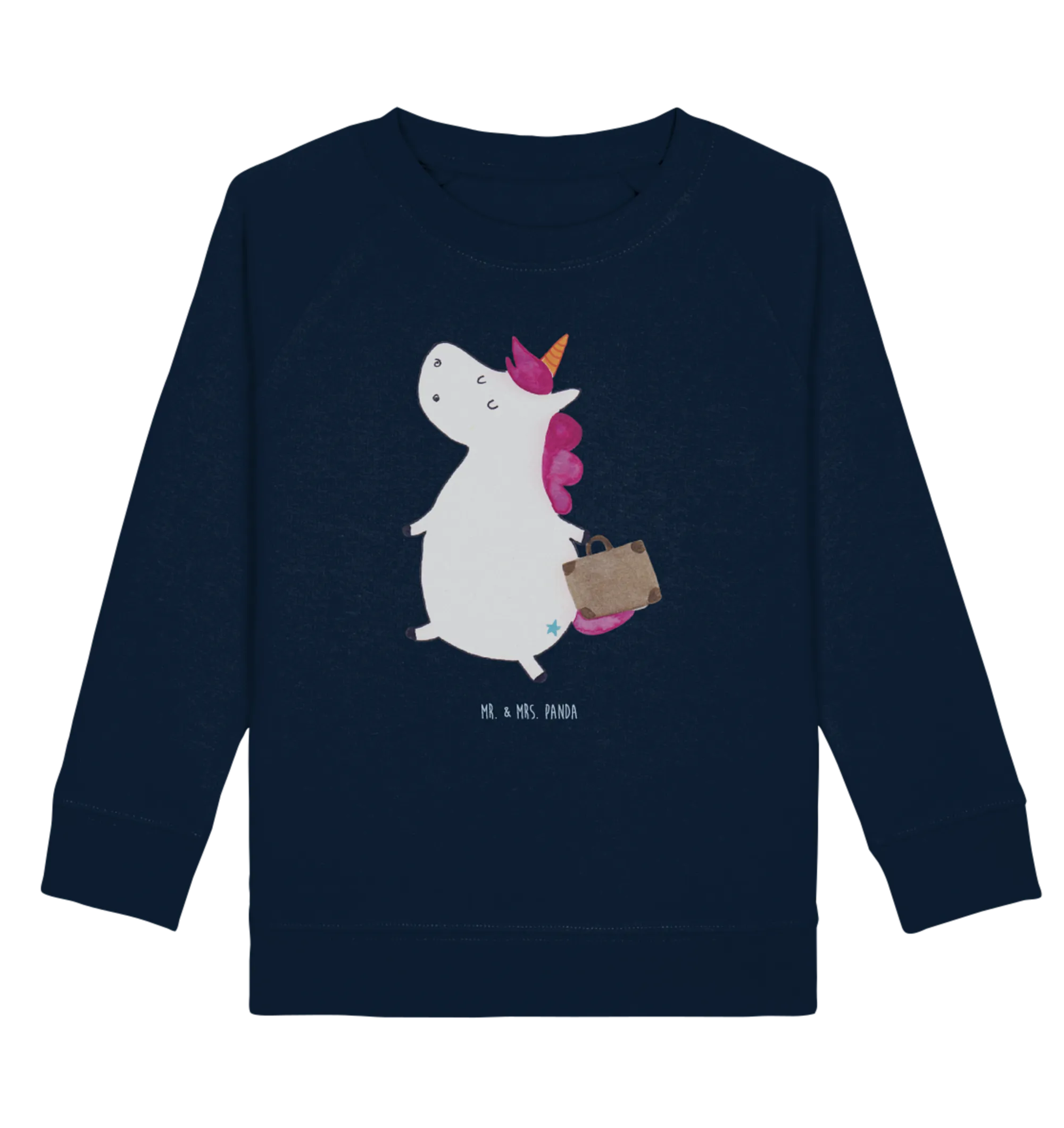 Entdecke den perfekten Kinder Pullover mit einem magischen Einhorn Koffer Motiv aus der zauberhaften Einhorn - Kollektion von Mr. & Mrs. Panda! Dieser Organic Kinder Pullover ist nicht nur stylisch, sondern auch gemütlich, ideal für kleine Abenteuerlustige.