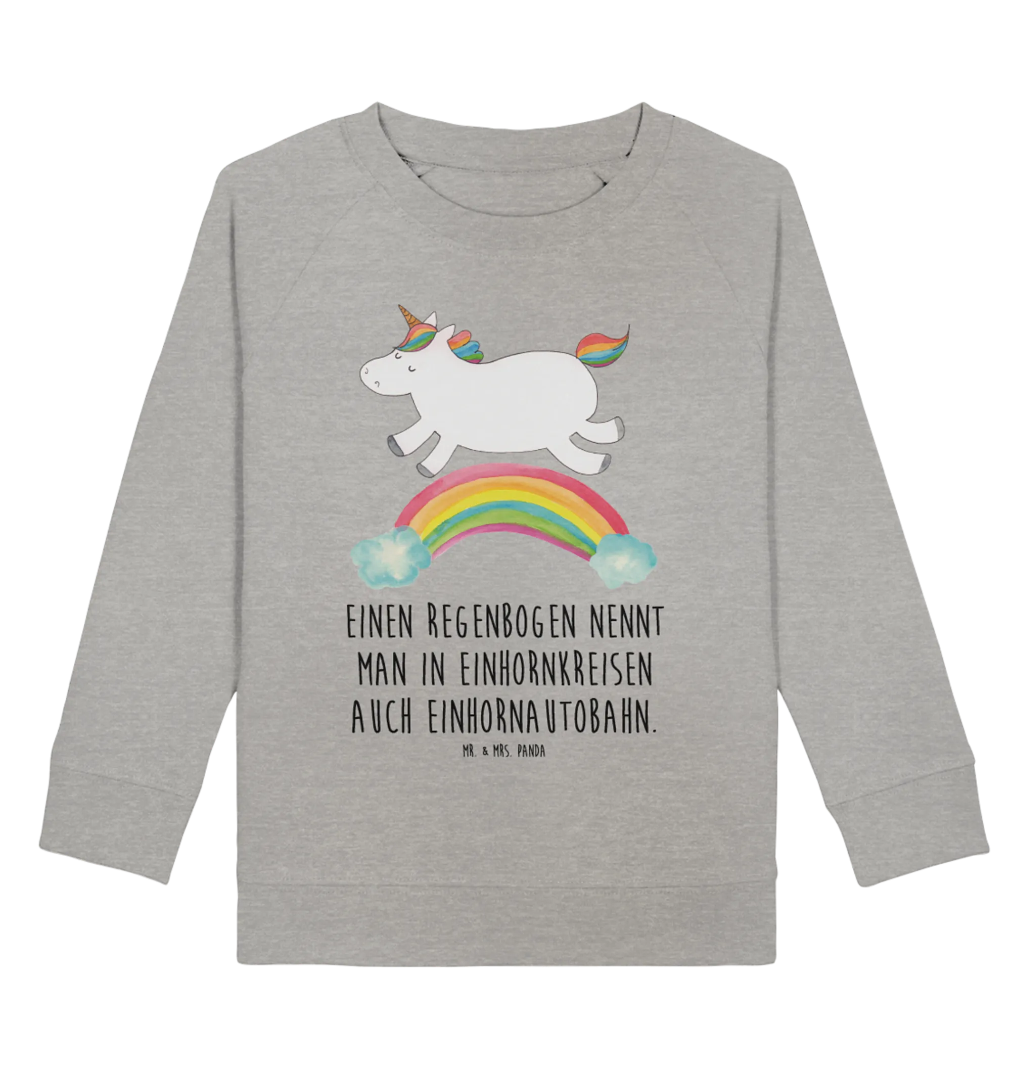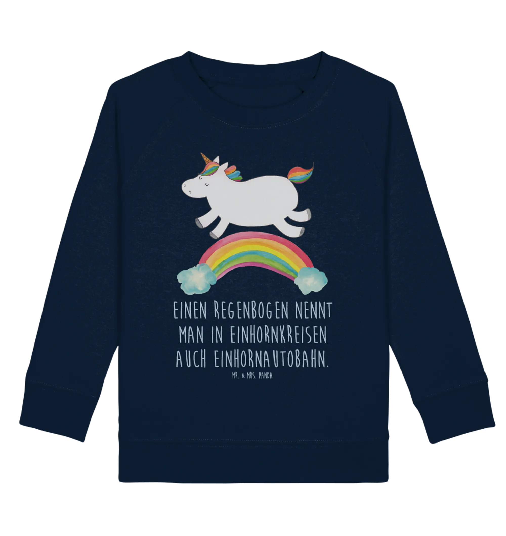 Entdecke den perfekten Organic Kinder Pullover mit dem zauberhaften Einhorn Regenbogen-Motiv aus der exklusiven Einhorn-Kollektion von Mr. & Mrs. Panda!
