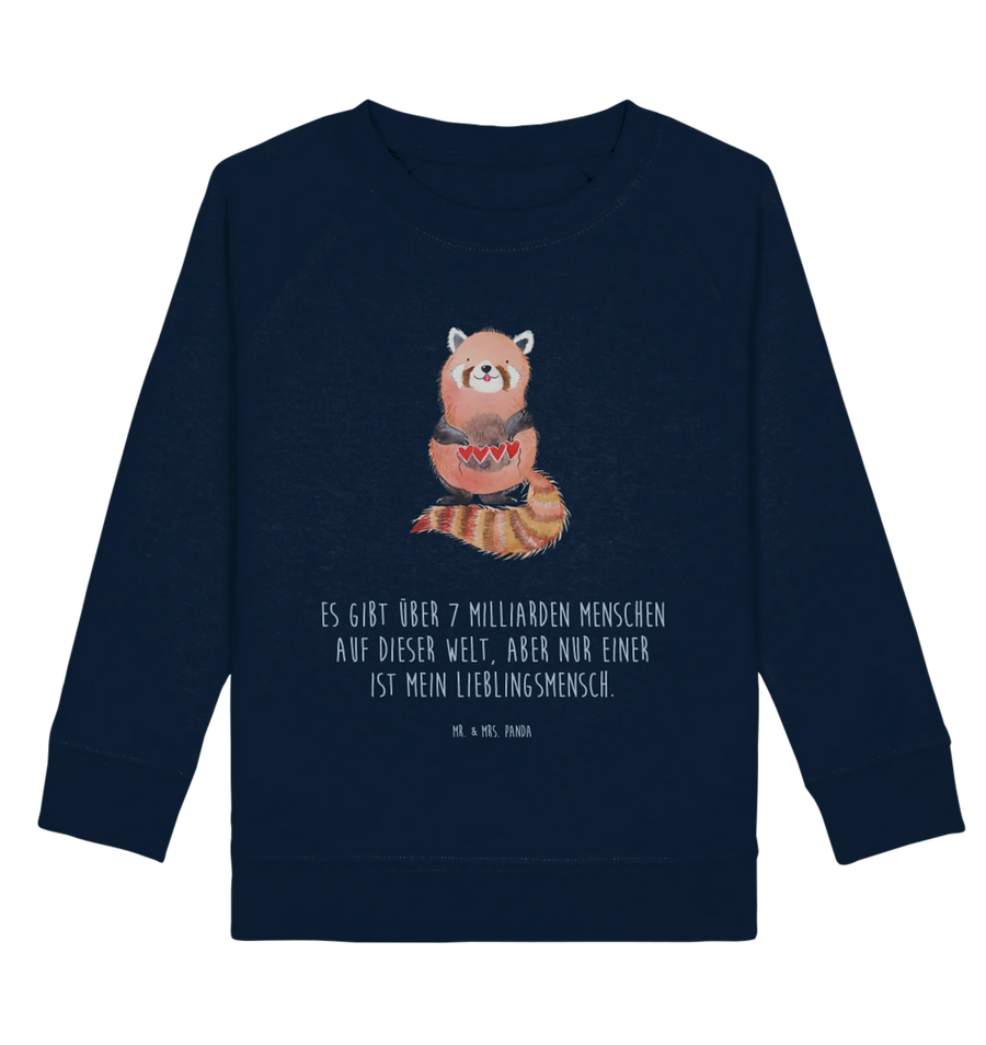 Der bezaubernde rote Panda, der eine Herzgirlande in seinen kleinen Pfoten hält, ist ein echter Hingucker und macht den Pullover zu etwas ganz Besonderem. Jedes Mal, wenn dein kleiner Schatz diesen Pullover trägt, fühlt er sich geliebt und geschätzt, denn schließlich steht auf diesem einzigartigen Sweatshirt: "Es gibt über 7 Milliarden Menschen auf dieser Welt, aber nur einer ist mein Lieblingsmensch."