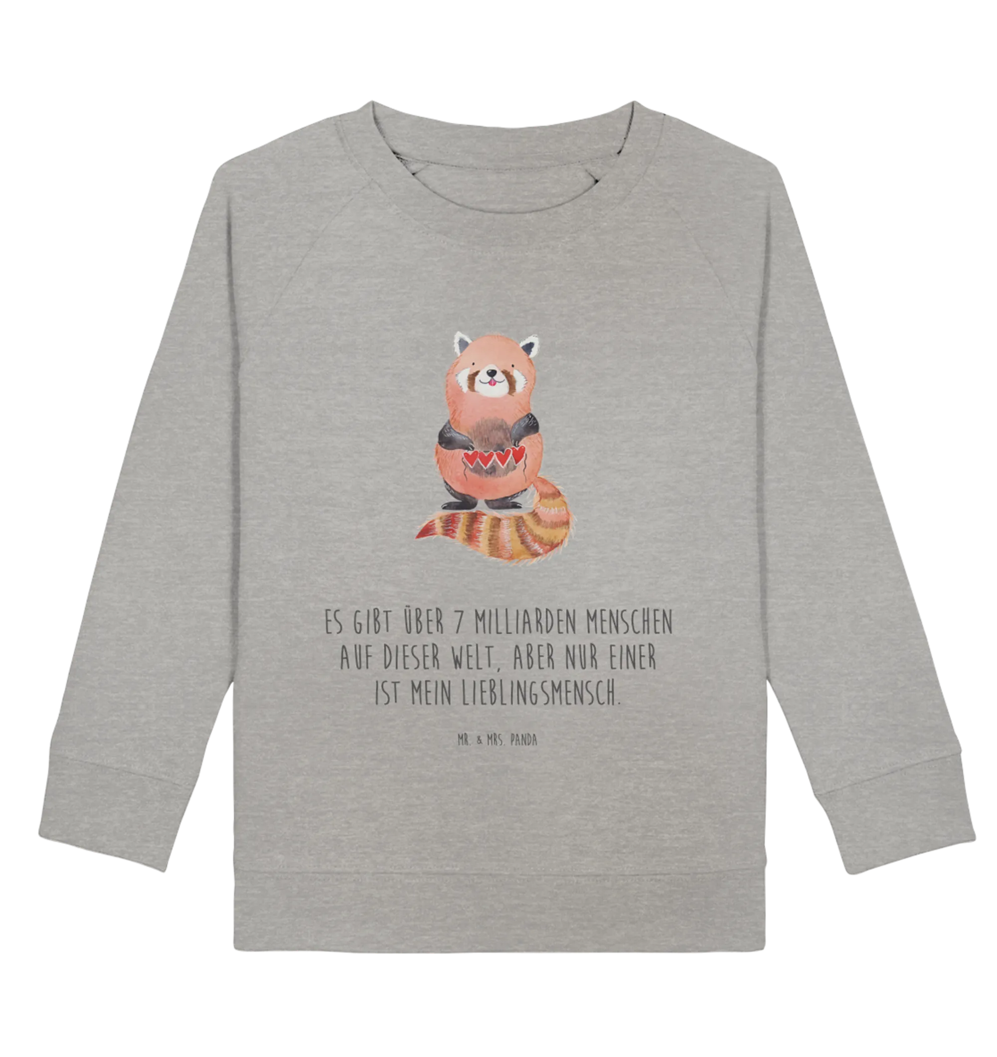 Der Rote Panda prangt auf einem angenehmen Heather Grey Hintergrund, was ihn zu einem modischen Highlight macht, das Kinder gerne tragen. Schenke deinem Kind oder einem geliebten Menschen ein Stück Freude und Liebe mit diesem liebevollen Pullover. Erinnere sie daran, dass es auf der Welt über 7 Milliarden Menschen gibt, aber nur einen Lieblingsmenschen.