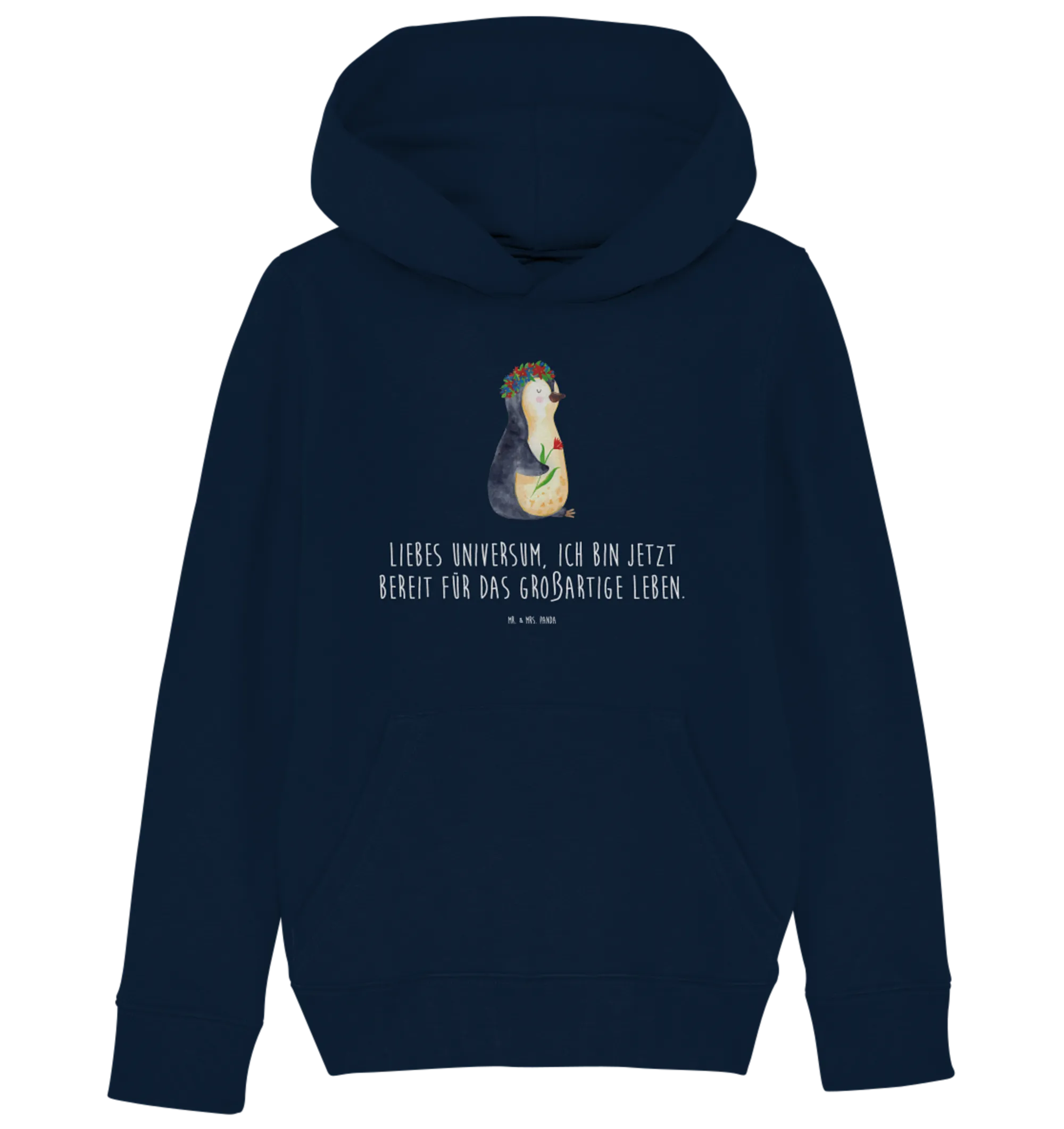Sei bereit für die Abenteuer des Lebens mit dem Organic Kinder Hoodie mit Pinguin Blumenkranz von Mr. & Mrs. Panda! Es ist Zeit für große Träume und kreative Ideen!