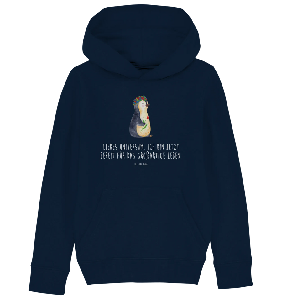 Mit dem Pinguin Blumenkranz Hoodie von Mr. & Mrs. Panda verschenkst du nicht nur ein Kleidungsstück, sondern ein Stück Lebensfreude und Motivation, während die Kleinen die Welt erkunden.