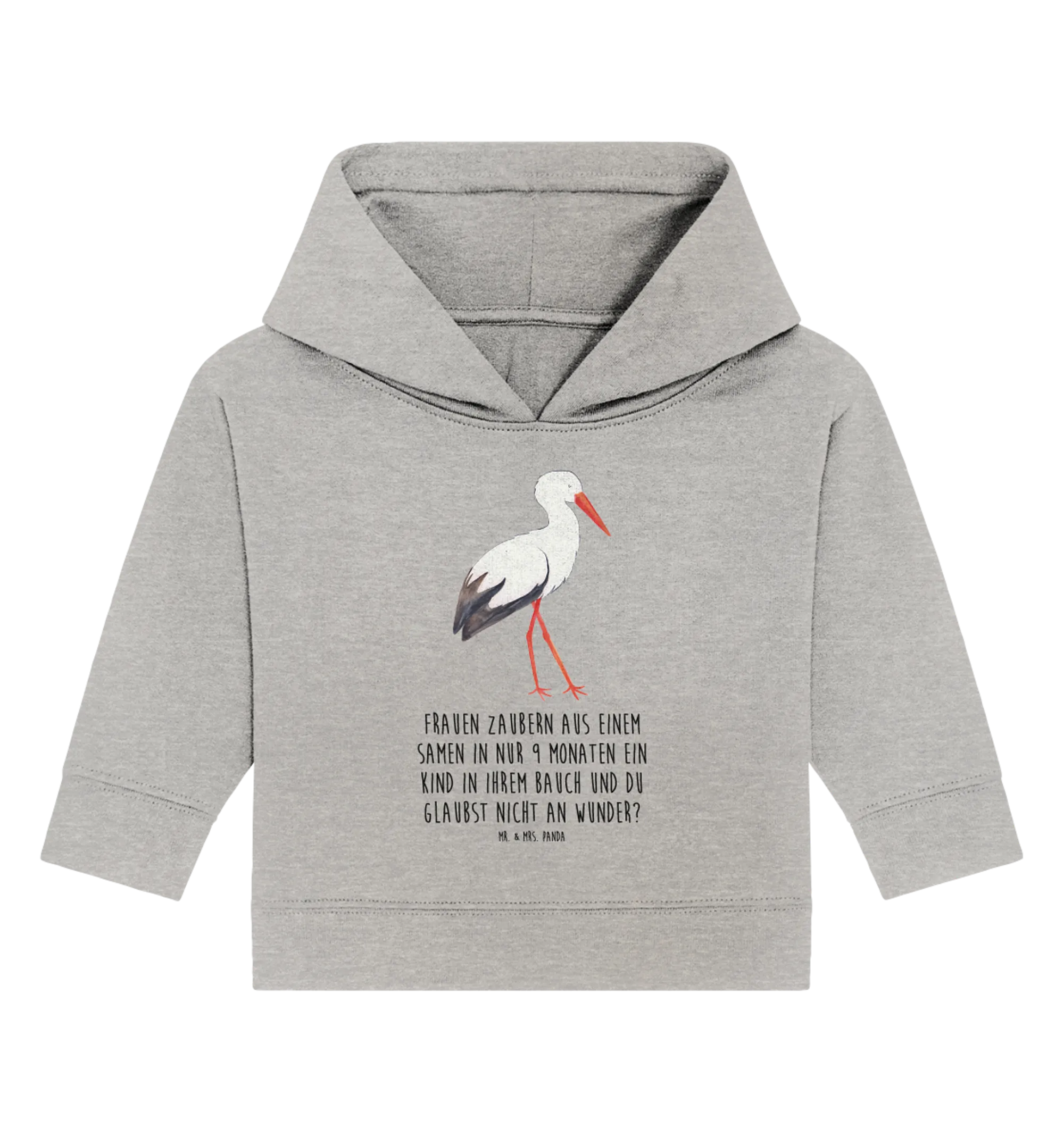 Suchst du das perfekte Geschenk für frischgebackene Eltern oder werdende Mütter? Dann ist das Organic Baby Hoodie mit dem süßen Storch-Motiv aus der bezaubernden Small World Kollektion von Mr. & Mrs. Panda genau das Richtige für dich! Dieses niedliche Kapuzenshirt ist nicht nur ein echter Hingucker, sondern auch ein Zeichen der Freude und Liebe, die mit der Ankunft eines neuen Lebens verbunden sind.