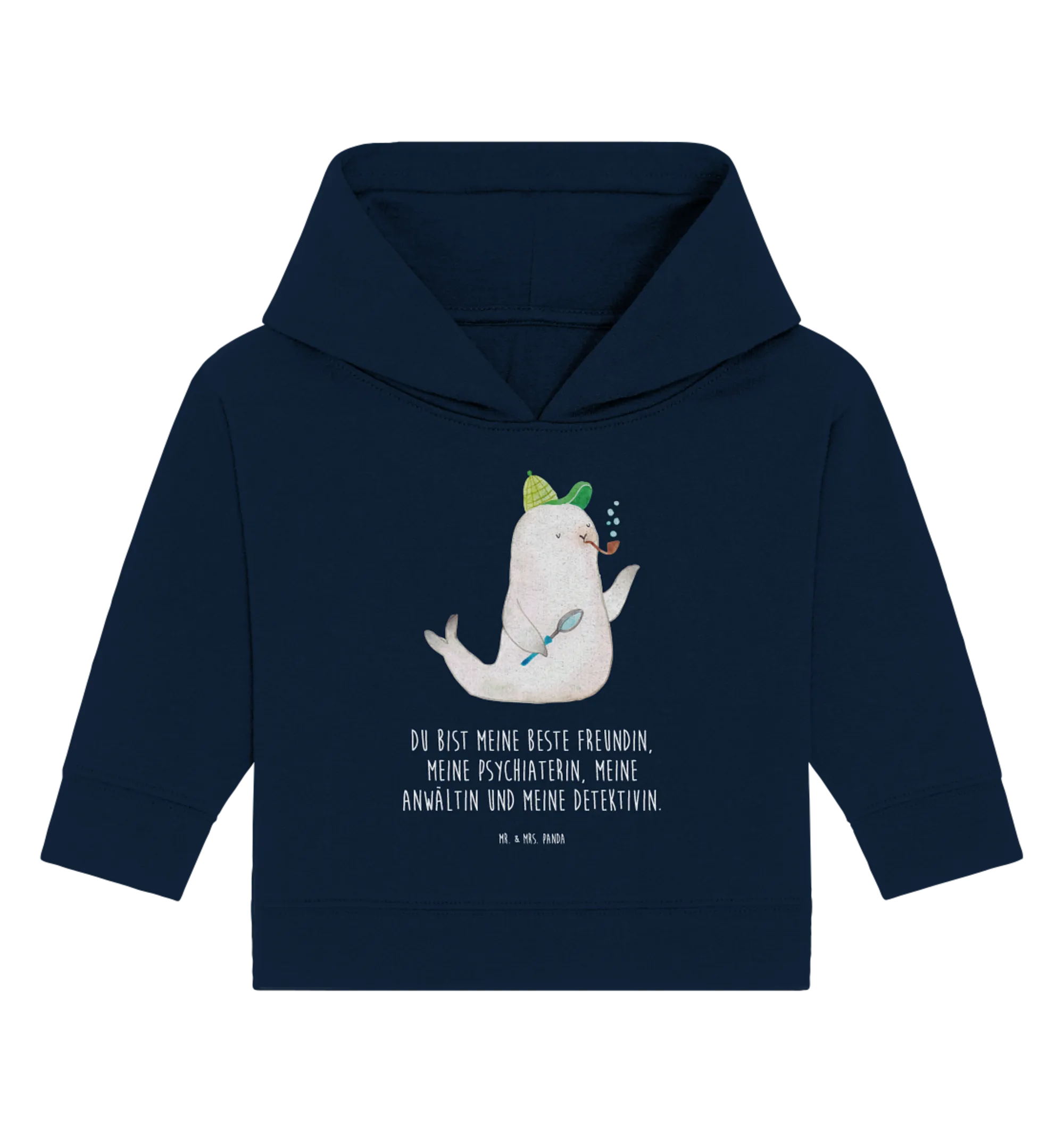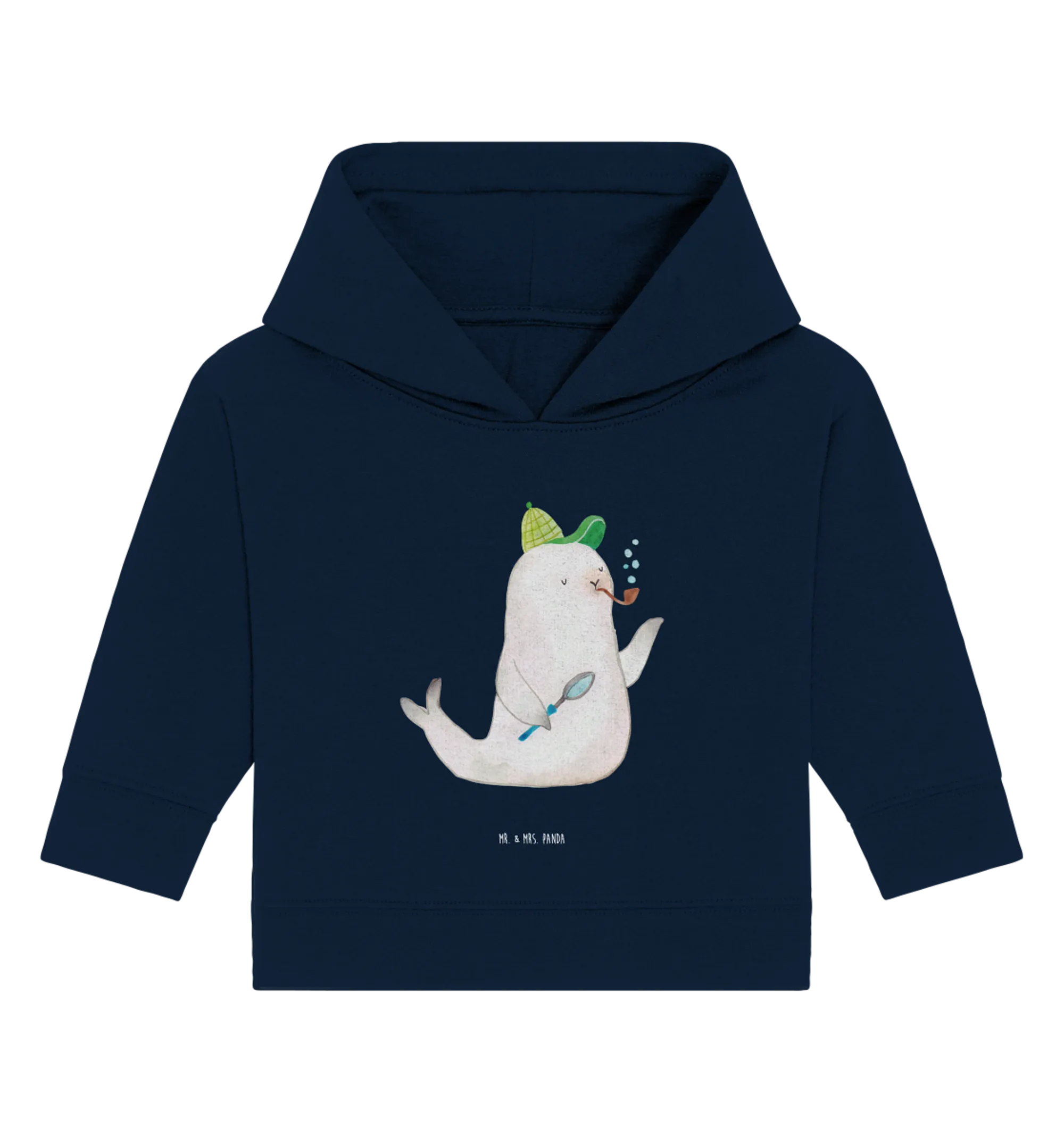 Die Robbe Sherlock erweckt die Vorstellungskraft und lädt dazu ein, gemeinsam spannende Geschichten zu erleben. Sei es zum Geburtstag, zur Geburt oder einfach so, dieser Baby Hoodie mit dem fröhlichen Tiermotiv bringt Freude in jeden Alltag. Aus hochwertiger, ökologischer Baumwolle gefertigt, ist der Hoodie nicht nur super bequem, sondern auch gut für die Umwelt.