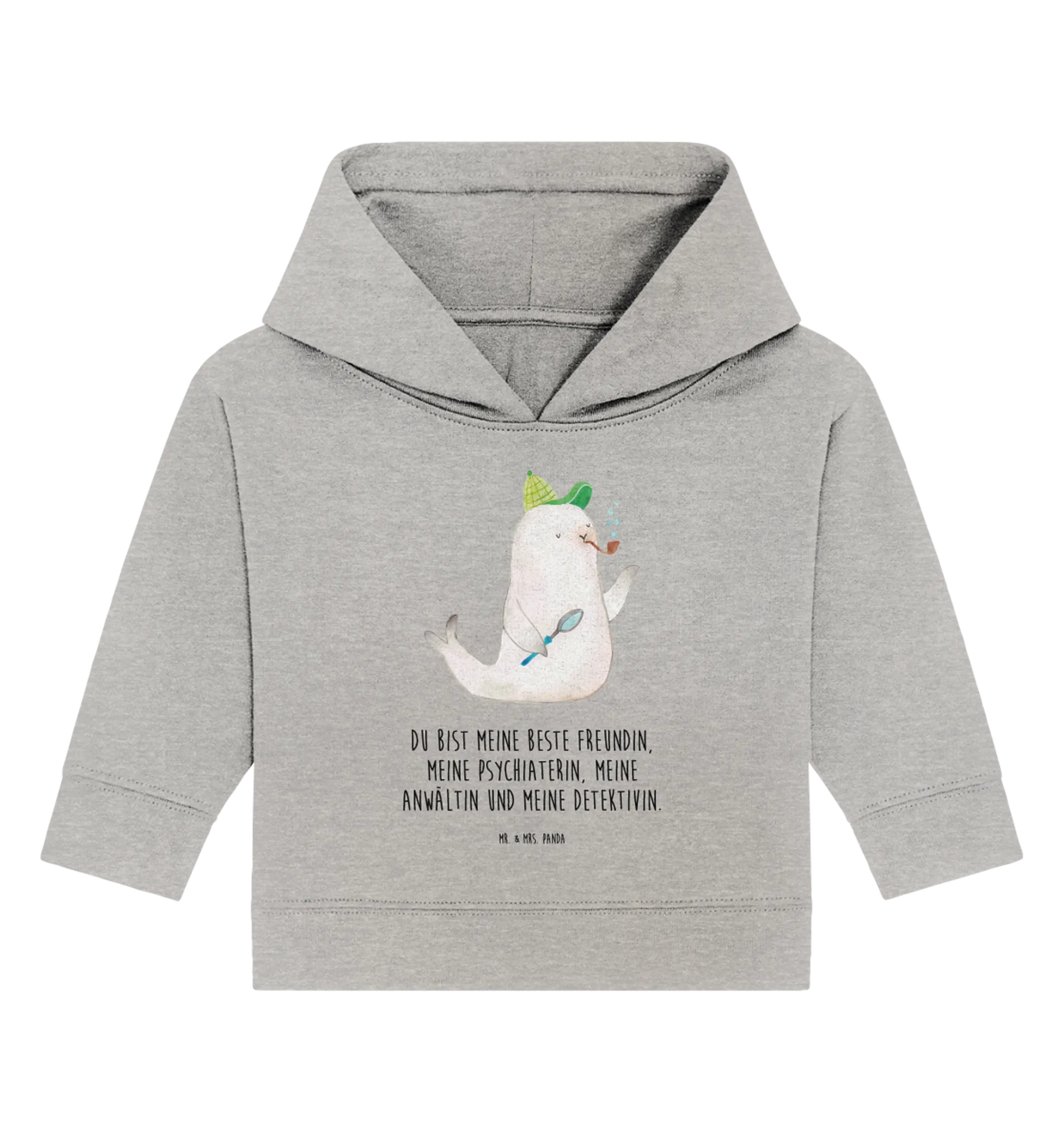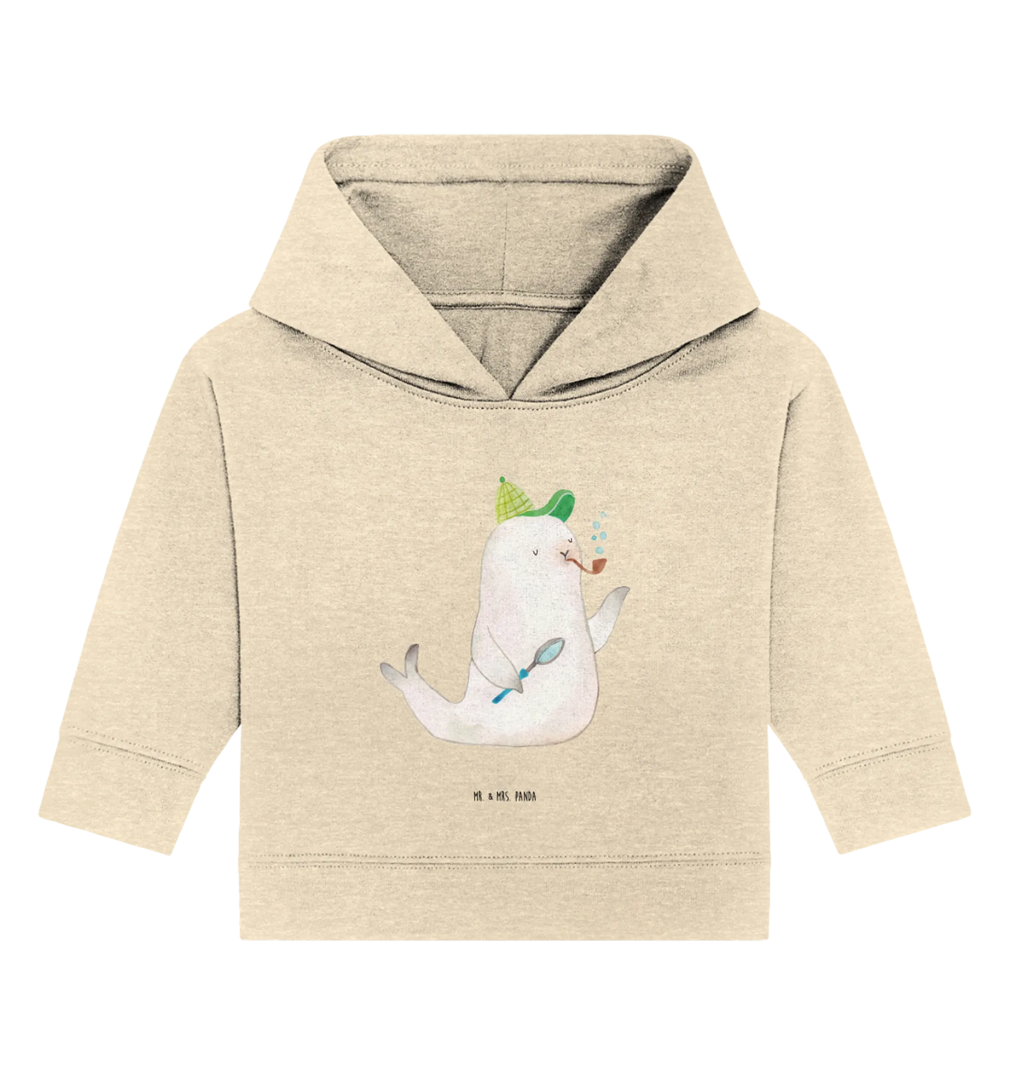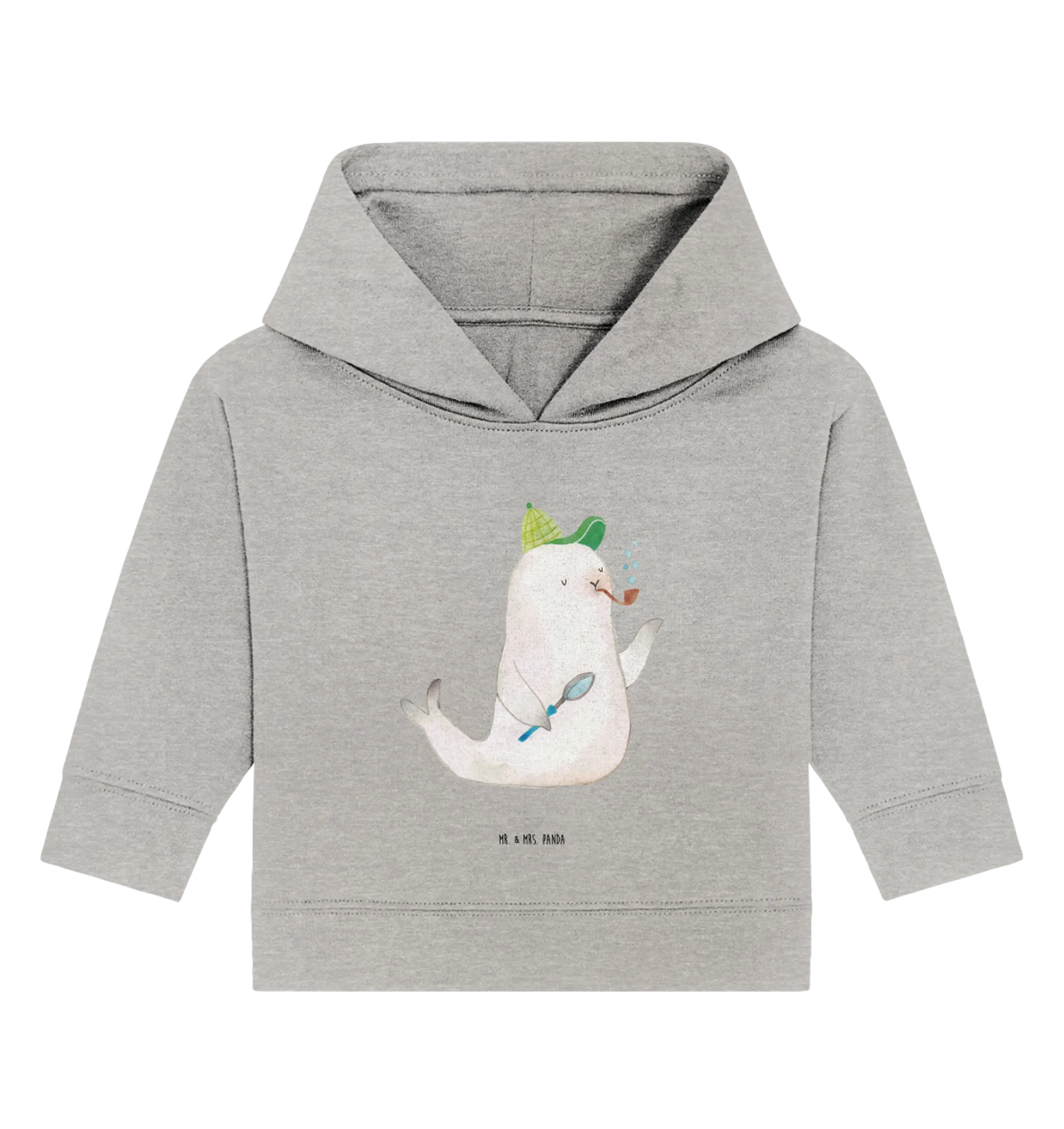 Suchst du das perfekte Geschenk für ein kleines Entdeckerherz? Unser Organic Baby Hoodie mit dem liebevollen Motiv "Robbe Sherlock" aus der Small World Kollektion von Mr. & Mrs. Panda ist genau das Richtige! Diese originelle Kapuze, gefertigt aus hochwertiger Öko-Baumwolle, bietet nicht nur hohen Tragekomfort, sondern auch einen ganz besonderen Look.