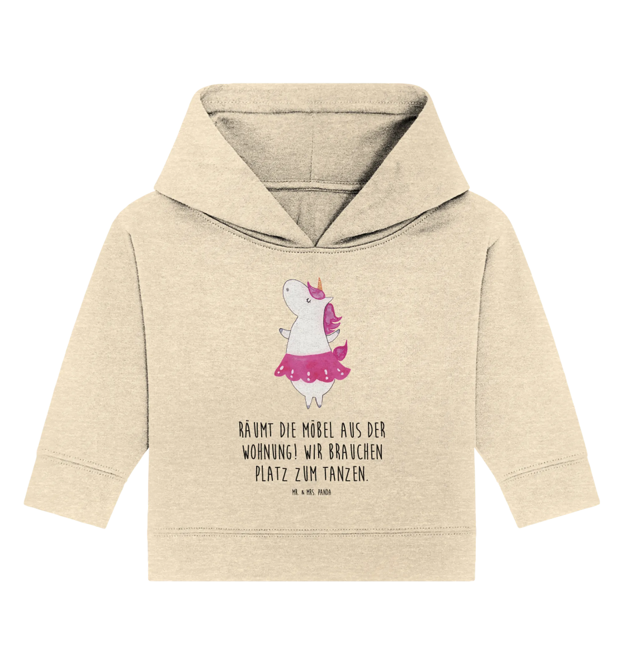 Es ist perfekt für alle, die das Besondere und Lebensfrohe lieben. Mit dem einzigartigen Motiv und dem witzigen Spruch "Räumt die Möbel aus der Wohnung! Wir brauchen Platz zum Tanzen." wird das Hoodie schnell zum Liebling deiner Kleinen. Sei es als Geschenk zur Geburt, zur Taufe oder einfach nur, um deinem kleinen Lieblingsmensch eine Freude zu machen.