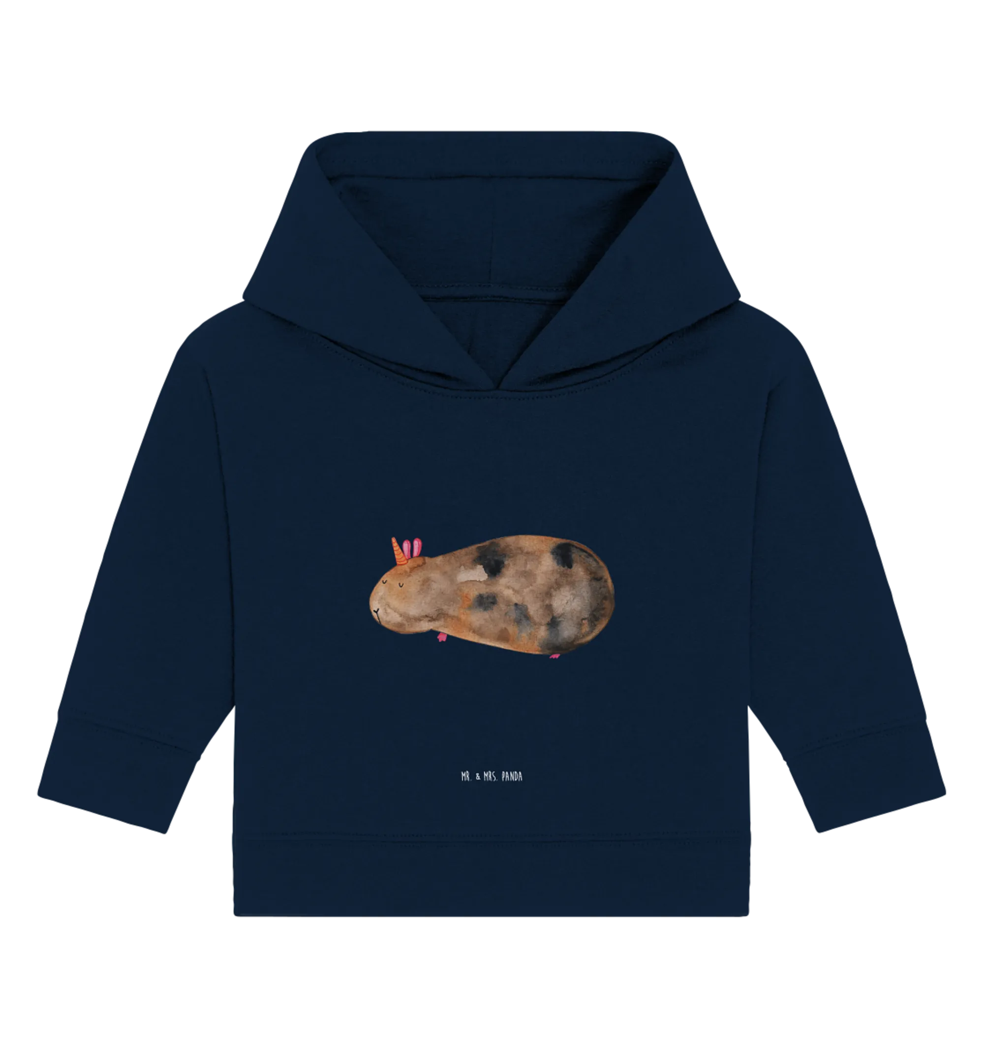 Entdecke unser zauberhaftes Organic Baby Hoodie mit dem süßen Meerhörnchen-Motiv aus der Einhorn-Kollektion von Mr. & Mrs. Panda! Dieses Kleidungsstück ist nicht nur ein echter Hingucker, sondern auch ideal für kleine Entdecker, die die wunderbare Welt der Einhörner lieben. Hergestellt aus 100% Öko-Baumwolle, bietet das Hoodie höchsten Tragekomfort und ist sanft zur zarten Babyhaut. Die einzigartige Kombination aus einem niedlichen Meerschweinchen mit einem Einhorn-Horn und einer tiefblauen Hintergrundfarbe macht dieses Hoodie zu einem Must-Have für jeden kleinen Wunscherfüller.