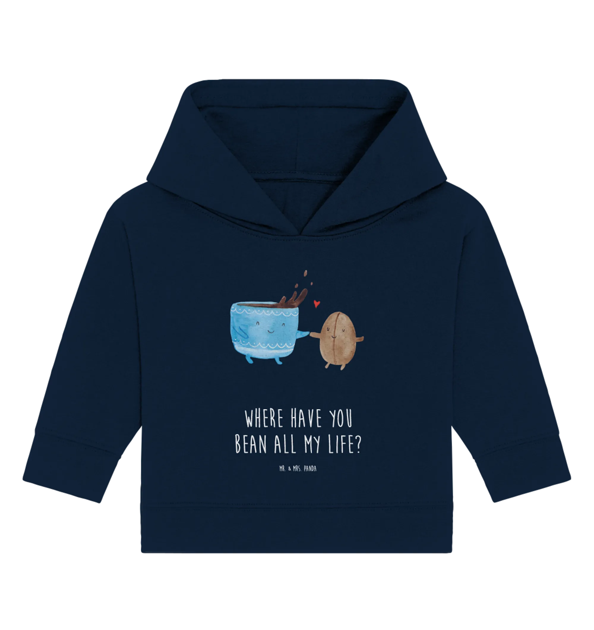 Die strahlend glückliche Kaffeetasse, die stolz ihre kleine Kaffeebohne in der Hand hält, zaubert jedem Betrachter ein Lächeln ins Gesicht. Dieses süße Motiv wurde mit viel Liebe und Leidenschaft von Mr. & Mrs. Panda handgezeichnet und spiegelt die Freude und den Genuss wider, die ein köstlicher Kaffee mit sich bringt. Mit dem charmanten Spruch 'Where have you bean all my life?' wird der Hoodie zum perfekten Begleiter für dein Baby in den ersten Lebensmonaten.