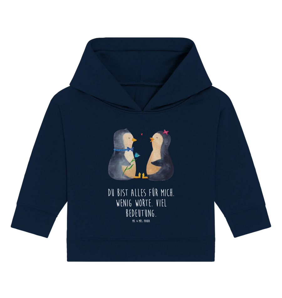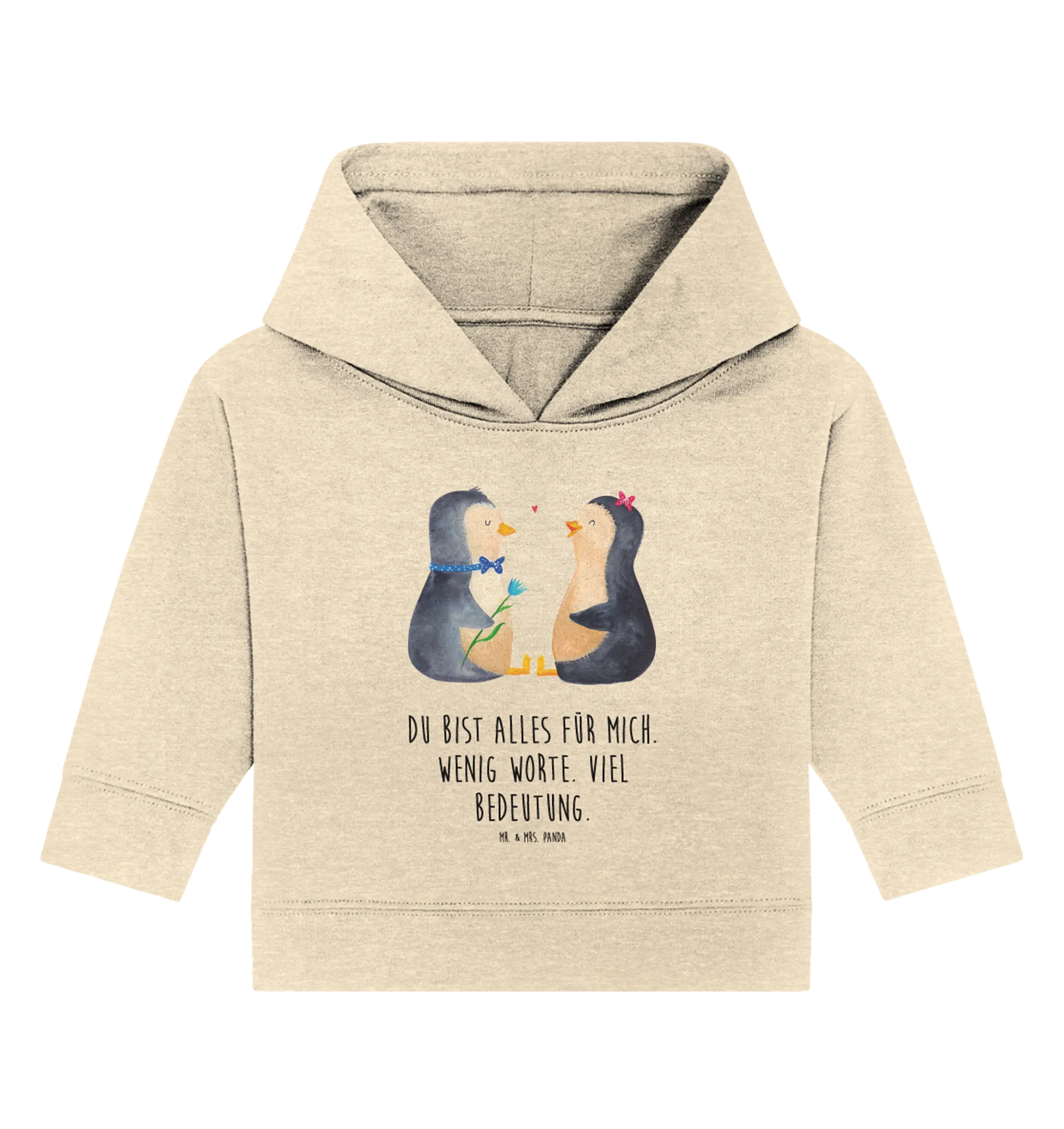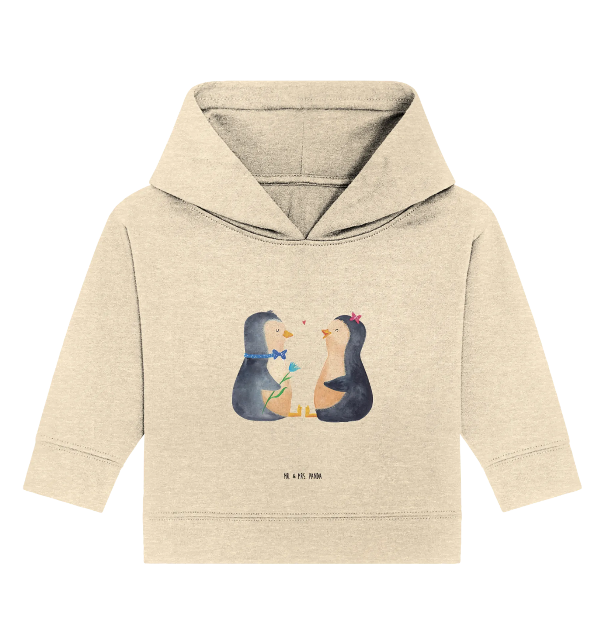 Das Organic Baby Hoodie mit dem süßen Pinguin Pärchen ist das perfekte Geschenk für kleine Herzen und ihre Eltern!