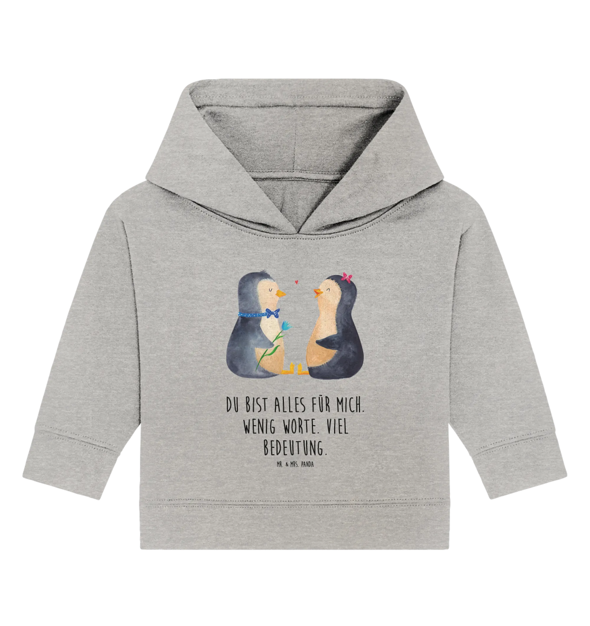 Das Organic Baby Hoodie "Pinguin Pärchen" aus der exklusiven Pinguin-Kollektion von Mr. & Mrs. Panda ist das perfekte Geschenk für frische Eltern und ihre kleinen Schätze. Die beiden süßen, handgezeichneten Pinguine, die sich liebevoll anschauen, stehen für die große Liebe und die innige Verbindung zwischen Familienmitgliedern. Ob zur Verlobung, zum Jahrestag oder als Hochzeitsgeschenk - dieses Baby Hoodie ist eine fröhliche Erinnerung daran, wie wertvoll die Liebe ist.
