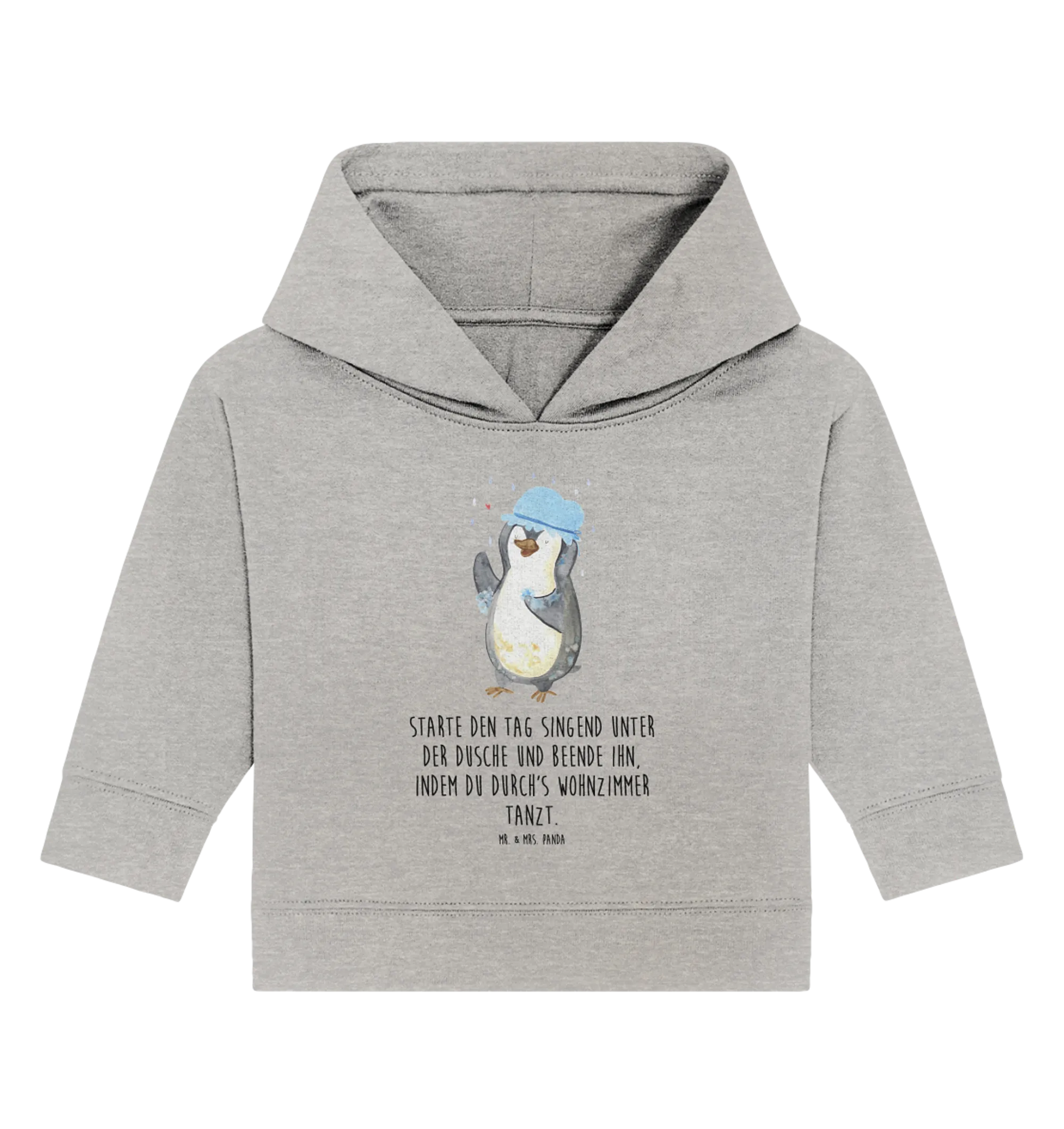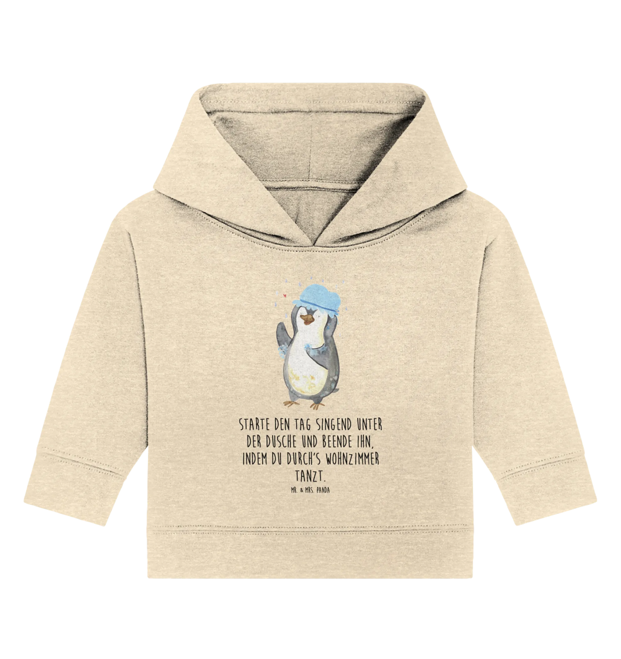 Kaufe jetzt das Organic Baby Hoodie "Pinguin duscht" und bringe Freude in das Leben eines kleinen Erdenbürgers! Dieser Hoodie ist nicht nur ein Kleidungsstück, sondern auch eine kleine Motivation für jeden neuen Tag – perfekt, um Kinder zum Lachen und Spielen einzuladen!