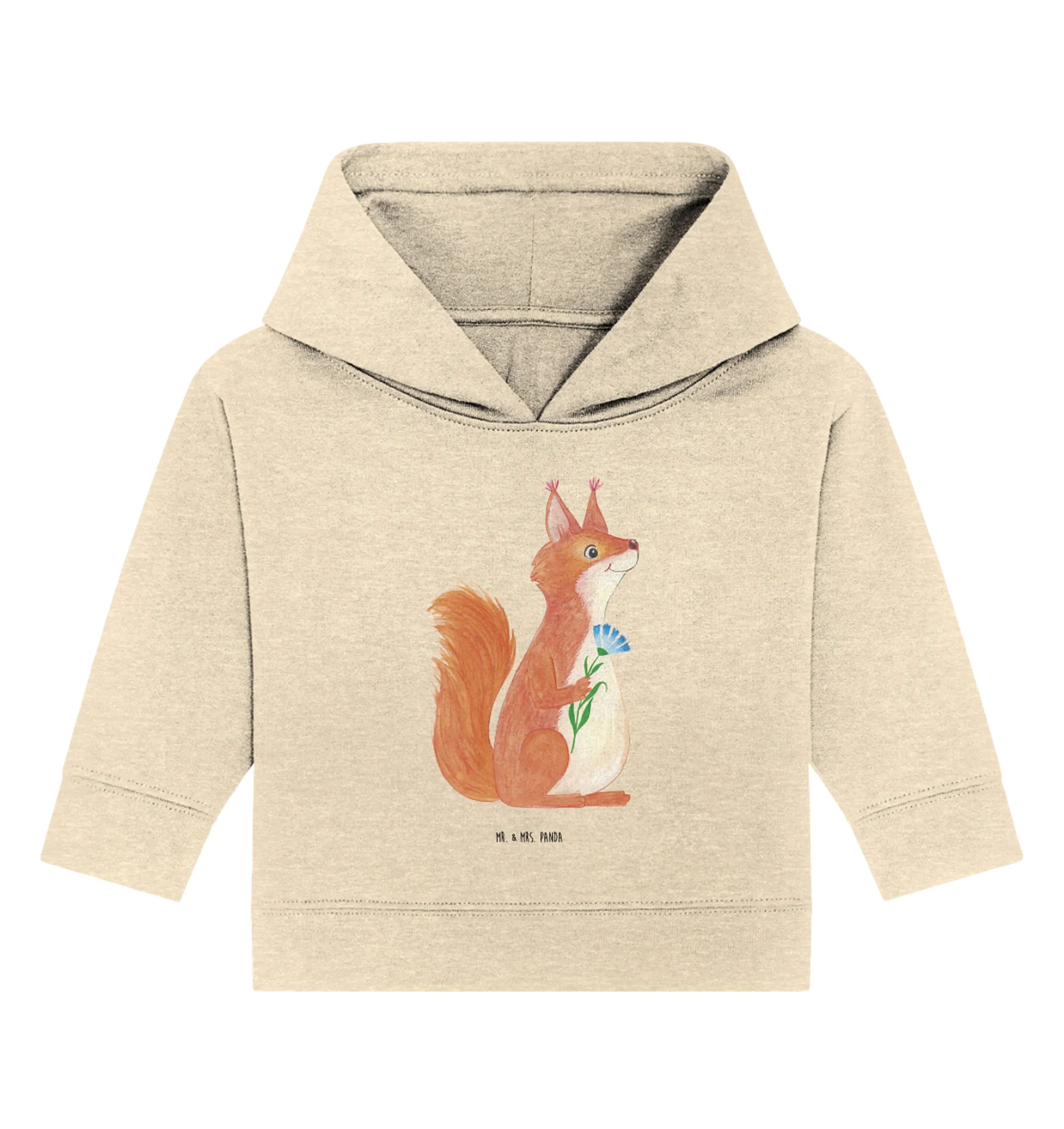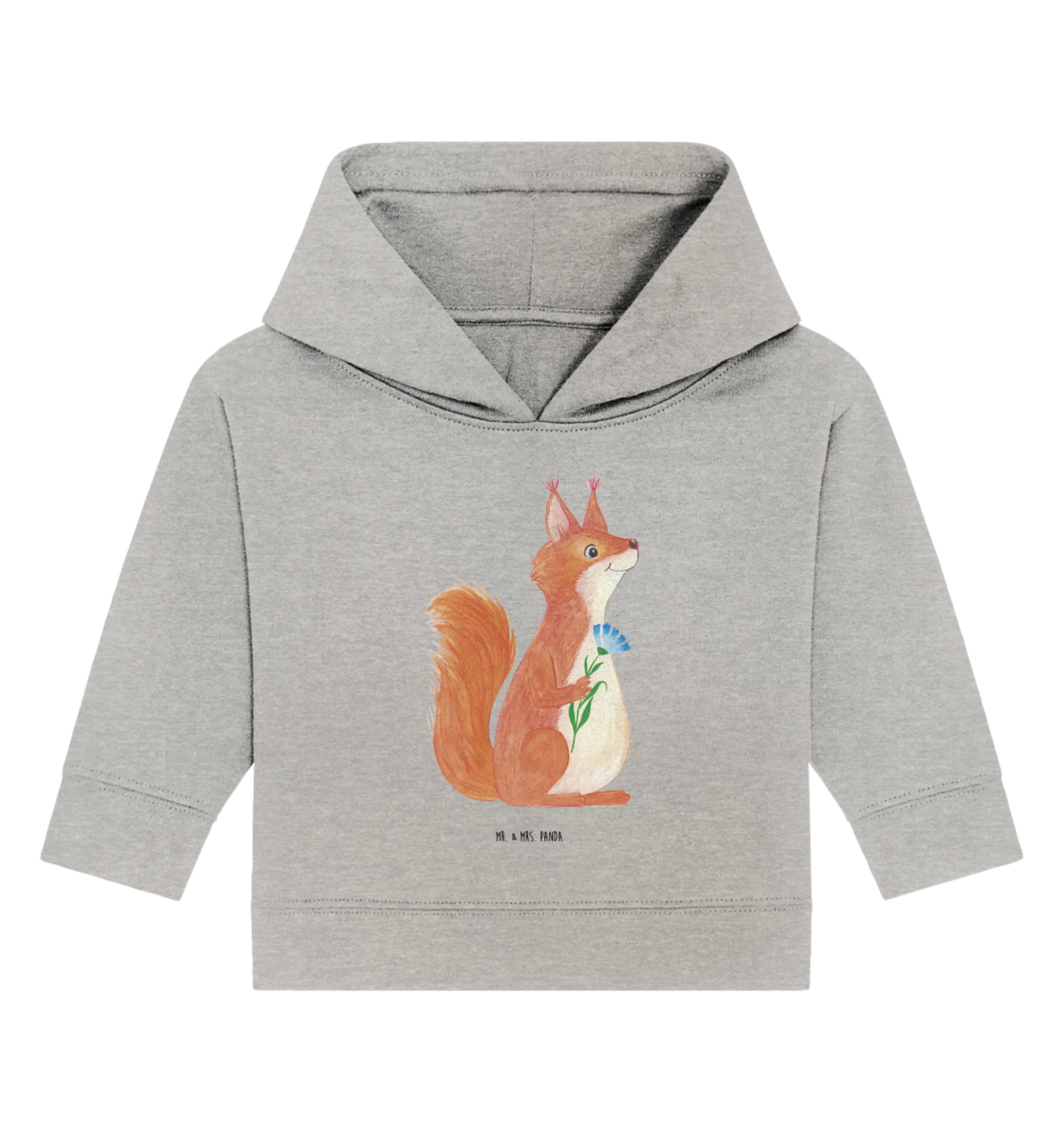 Das Organic Baby Hoodie mit dem niedlichen Eichhörnchen-Blume-Motiv aus der kleinen Welt Kollektion von Mr. & Mrs. Panda ist der perfekte Begleiter für Dein kleines Liebling. Es vereint Stil und Komfort und ist aus hochwertiger, ökologischer Baumwolle gefertigt.