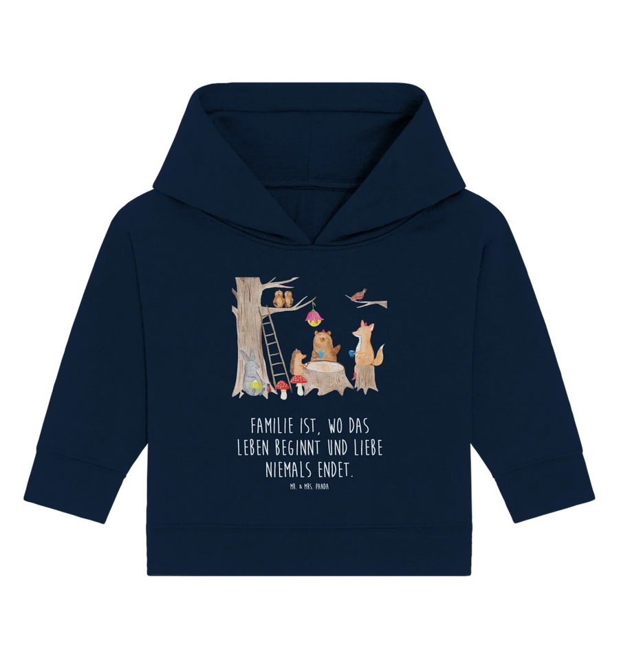 Hol dir dieses besondere Stück und lass deinen kleinen Schatz die Welt der Waldtiere entdecken! Mit dem Slogan "Familie ist, wo das Leben beginnt und Liebe niemals endet", strahlt es die Herzenswärme aus, die in jeder Familie zu finden ist und macht den Hoodie zu einem besonderen Geschenk, das die Eltern immer schätzen werden.