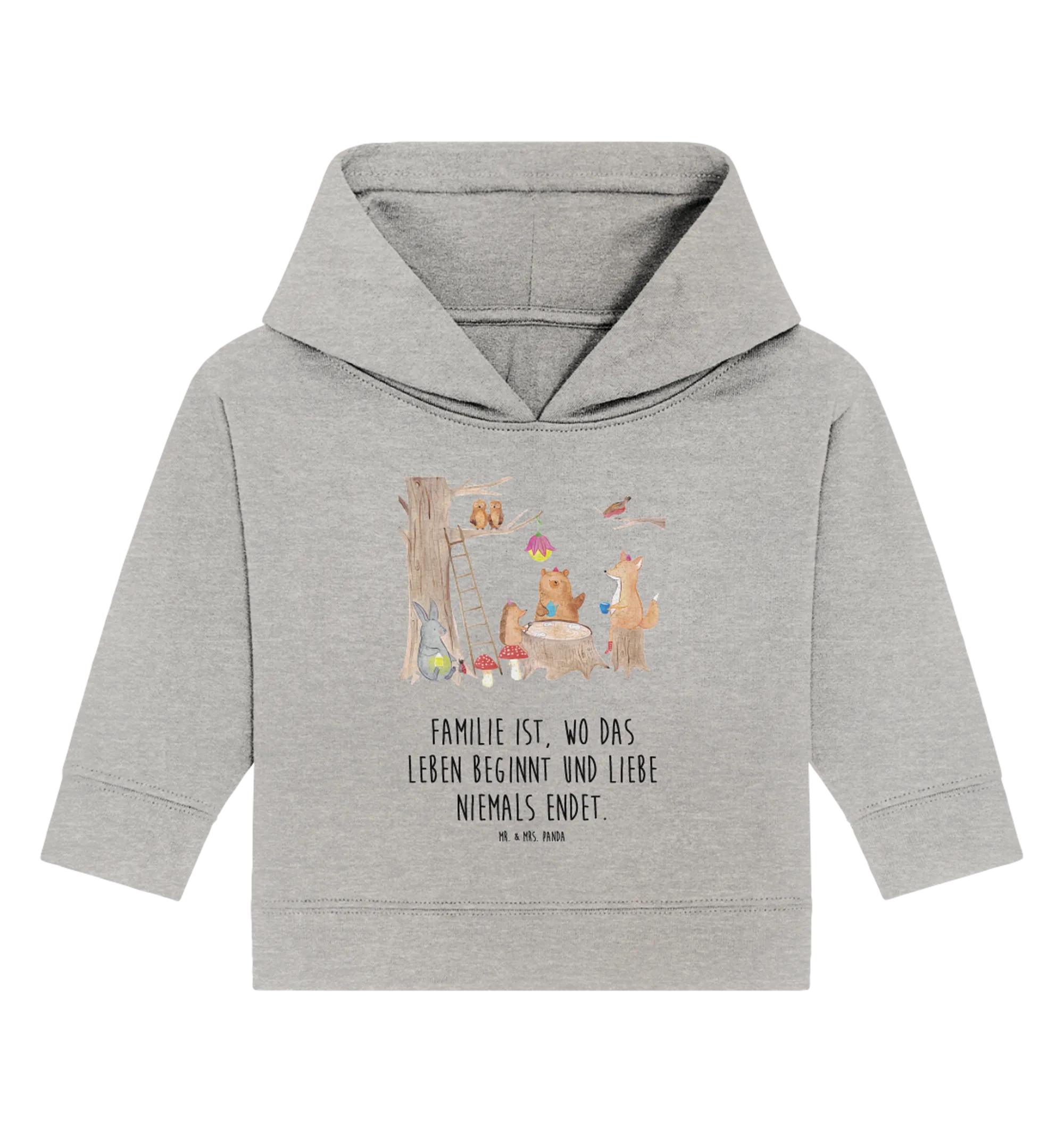 Aber nicht nur für die Kleinsten ist das das perfekte Geschenk: Auch als Teil einer Babyparty-Geschenkidee macht sich das Organic Baby Hoodie super! Die kleinen Waldtiere bieten eine liebevolle Botschaft der Zusammengehörigkeit: "Familie ist, wo das Leben beginnt und Liebe niemals endet." Ein schöner Spruch, der für viele Eltern eine tiefere Bedeutung hat.