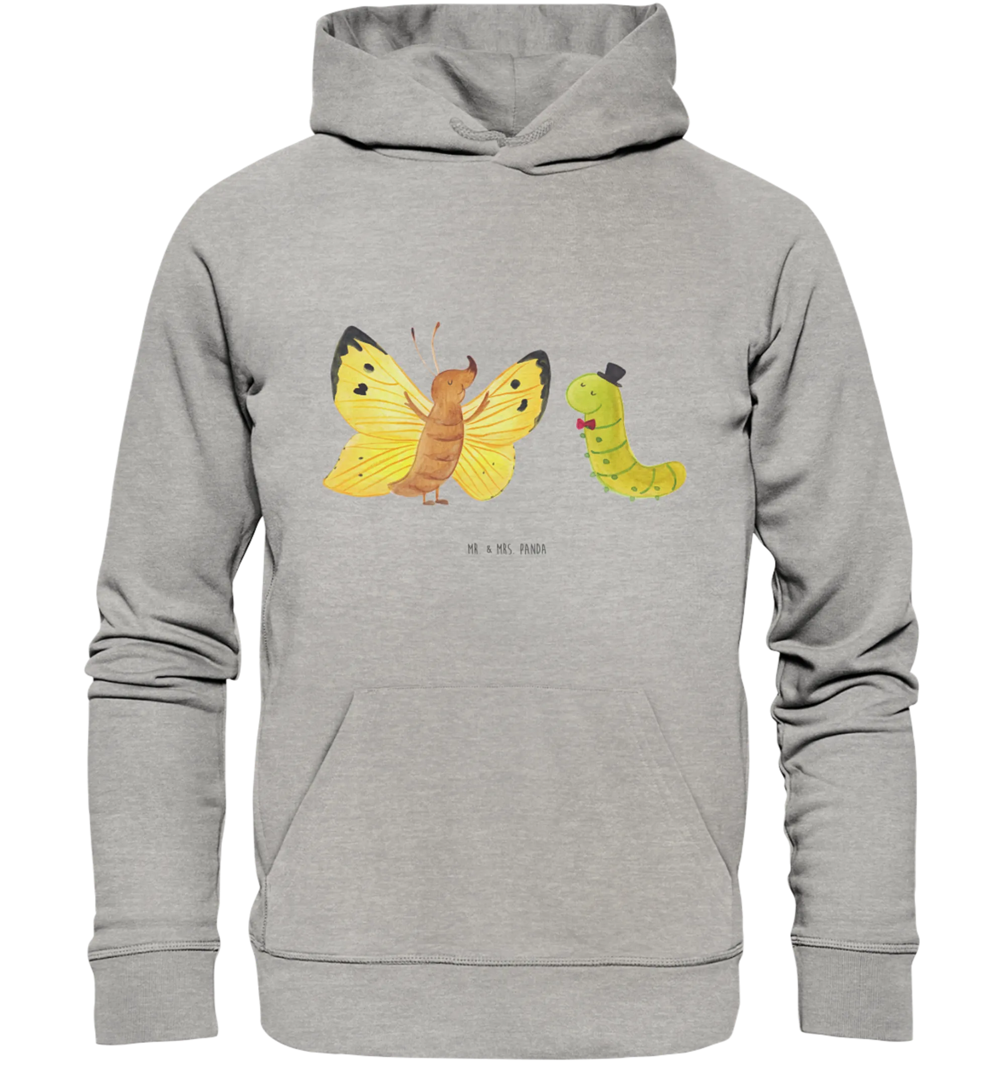 Entdecke den wundervollen Organic Hoodie mit dem bezaubernden Motiv von Raupe und Schmetterling aus der Small World Kollektion von Mr. & Mrs. Panda! Dieser Hoodie ist mehr als nur ein Kleidungsstück – er ist ein Symbol für Wachstum, Veränderung und die Schönheit des Lebens.
