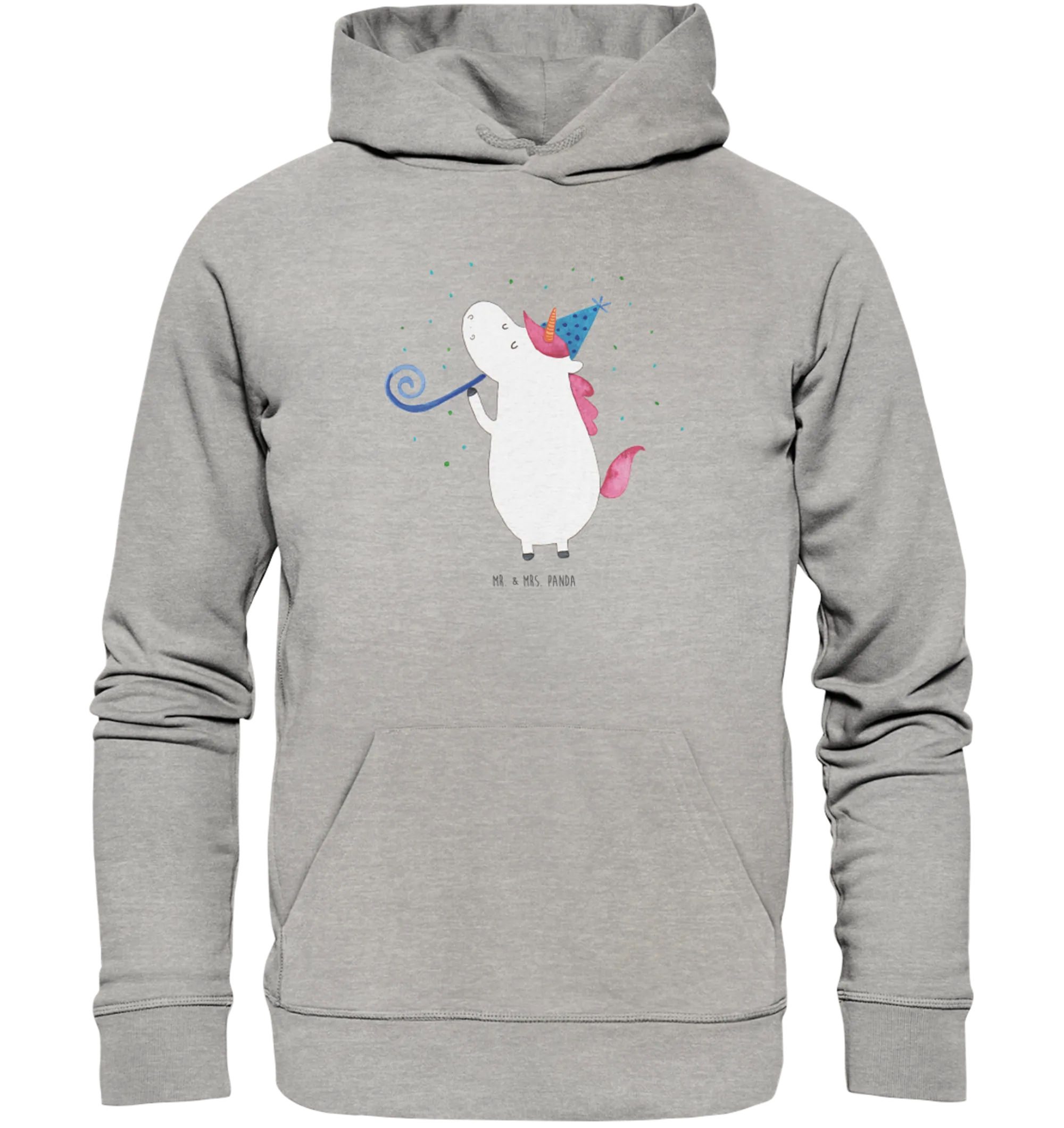 Wenn du ein besonderes Geschenk suchst, das Freude und Spaß bringt, dann ist der Organic Hoodie mit dem zauberhaften Einhorn Party Motiv aus der Einhorn-Kollektion von Mr. & Mrs. Panda genau das Richtige für dich! Dieser Hoodie ist nicht nur stilvoll und bequem, er verkörpert auch die Lebensfreude, die Einhörner ausstrahlen.