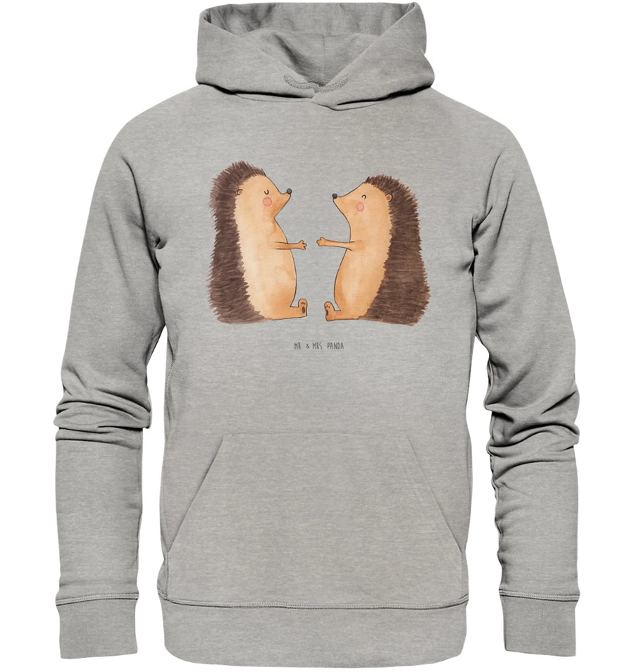 Der Organic Hoodie mit dem süßen Igel Liebe Motiv von Mr. & Mrs. Panda ist das perfekte Geschenk für Verliebte. Dieser Hoodie zeigt, wie einzigartig eure Liebe ist und ist ideal für Jubiläen, Hochzeiten oder einfach so – um deine Gefühle auszudrücken.