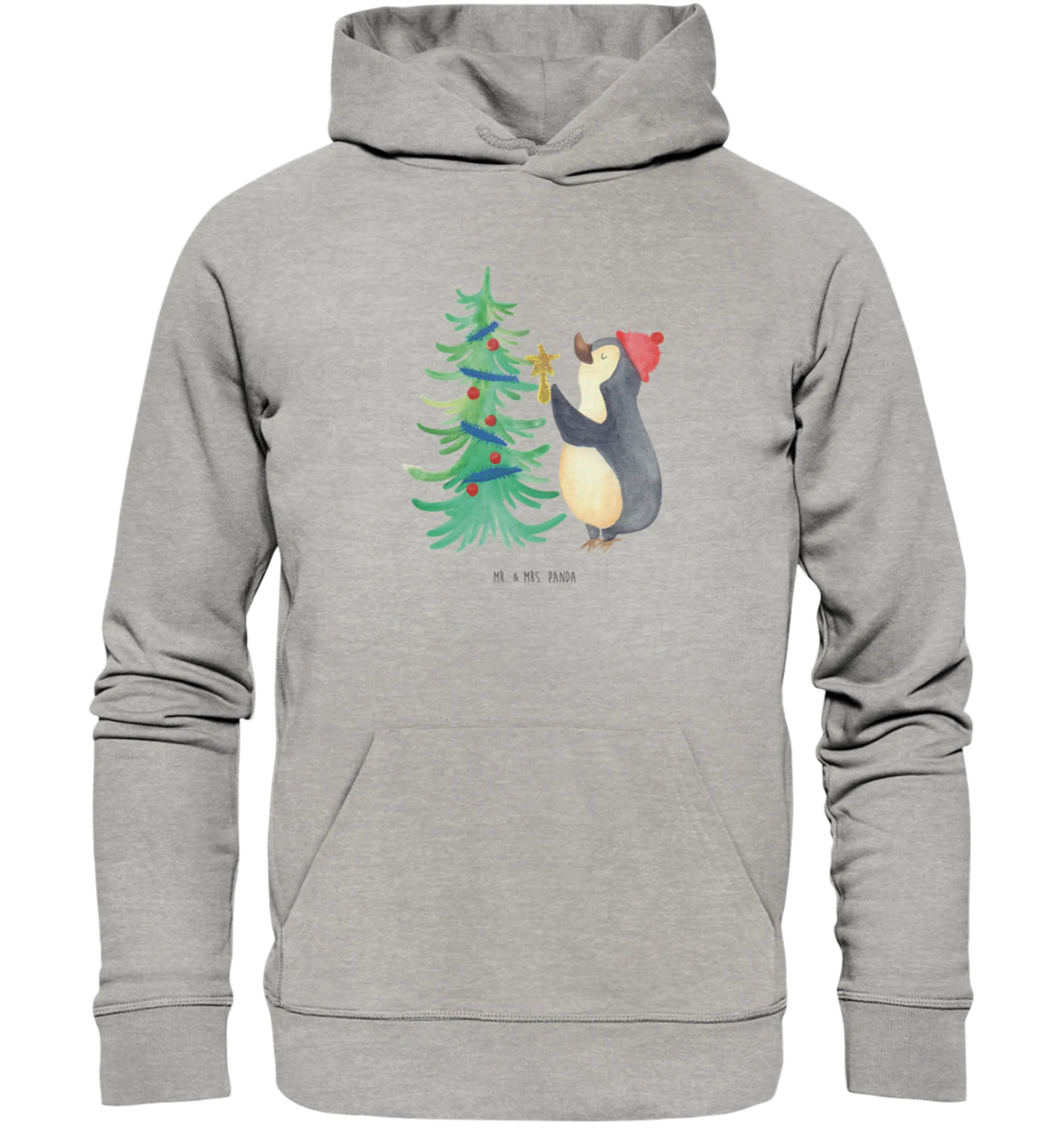 Der wunderschöne Organic Hoodie von Mr. & Mrs. Panda ist die perfekte Geschenkidee für die kalte Winterzeit! Das herzliche Motiv mit dem niedlichen Pinguin, der einen festlichen Weihnachtsbaum schmückt, bringt nicht nur Freude, sondern auch Gemütlichkeit in die kalte Jahreszeit.