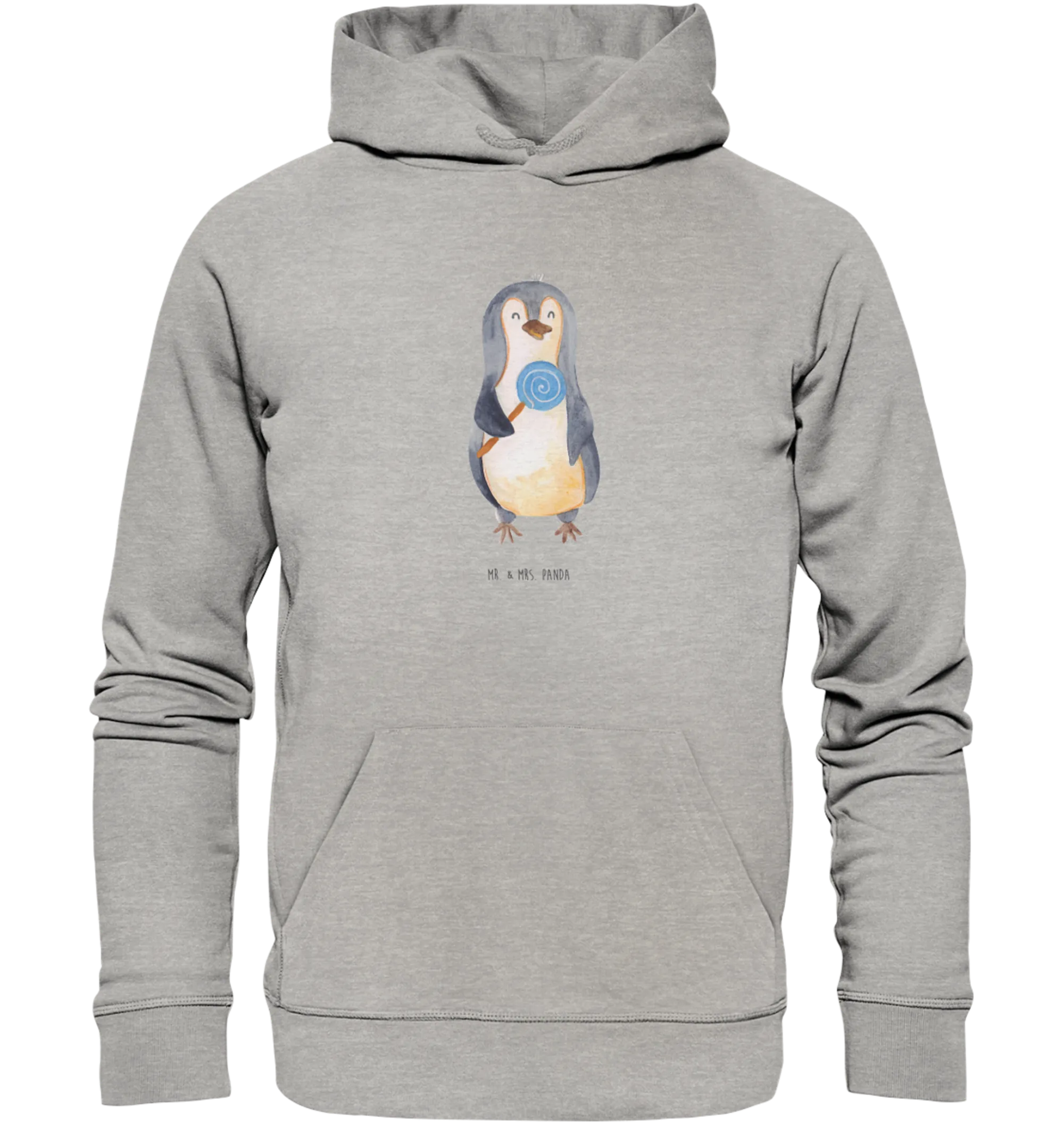 Entdecke den perfekten Organic Hoodie mit dem süßen Pinguin Lolli-Motiv aus der Pinguin-Kollektion von Mr. & Mrs. Panda! Diese wundervoll flauschige Bio-Baumwolljacke ist genau das Richtige für alle, die einen Hauch von Spaß und Niedlichkeit in ihrem Alltag bringen möchten.