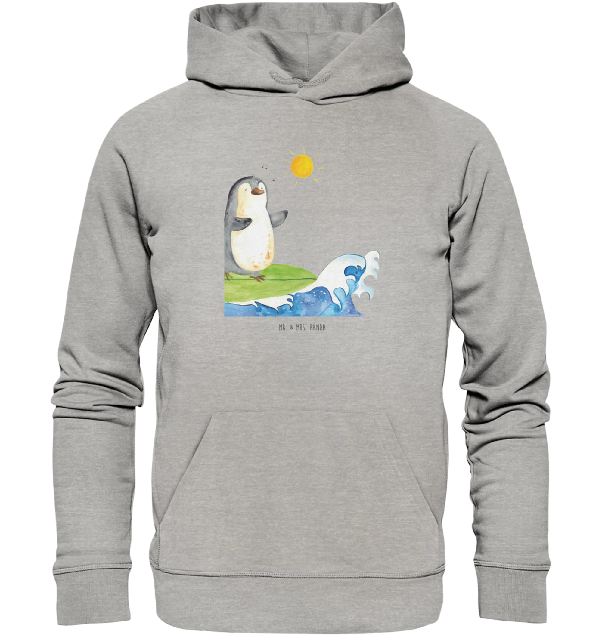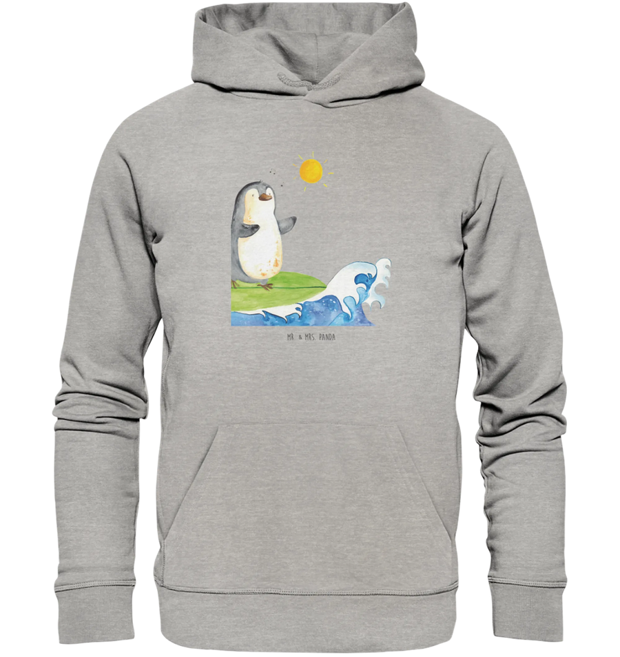 Willkommen in der Welt von Mr. & Mrs. Panda! Wenn du nach einem besonderen Geschenk suchst oder dir selbst etwas Gutes tun möchtest, dann ist unser wunderschöner Organic Hoodie mit dem süßen Pinguin Surfer genau das Richtige für dich. Dieser Kapuzenpullover ist nicht nur ein modisches Statement, sondern auch ein warmes und kuscheliges Kleidungsstück aus hochwertiger Bio-Baumwolle. Die samtige Innenseite wird dich sofort begeistern und du möchtest ihn gar nicht mehr ausziehen.