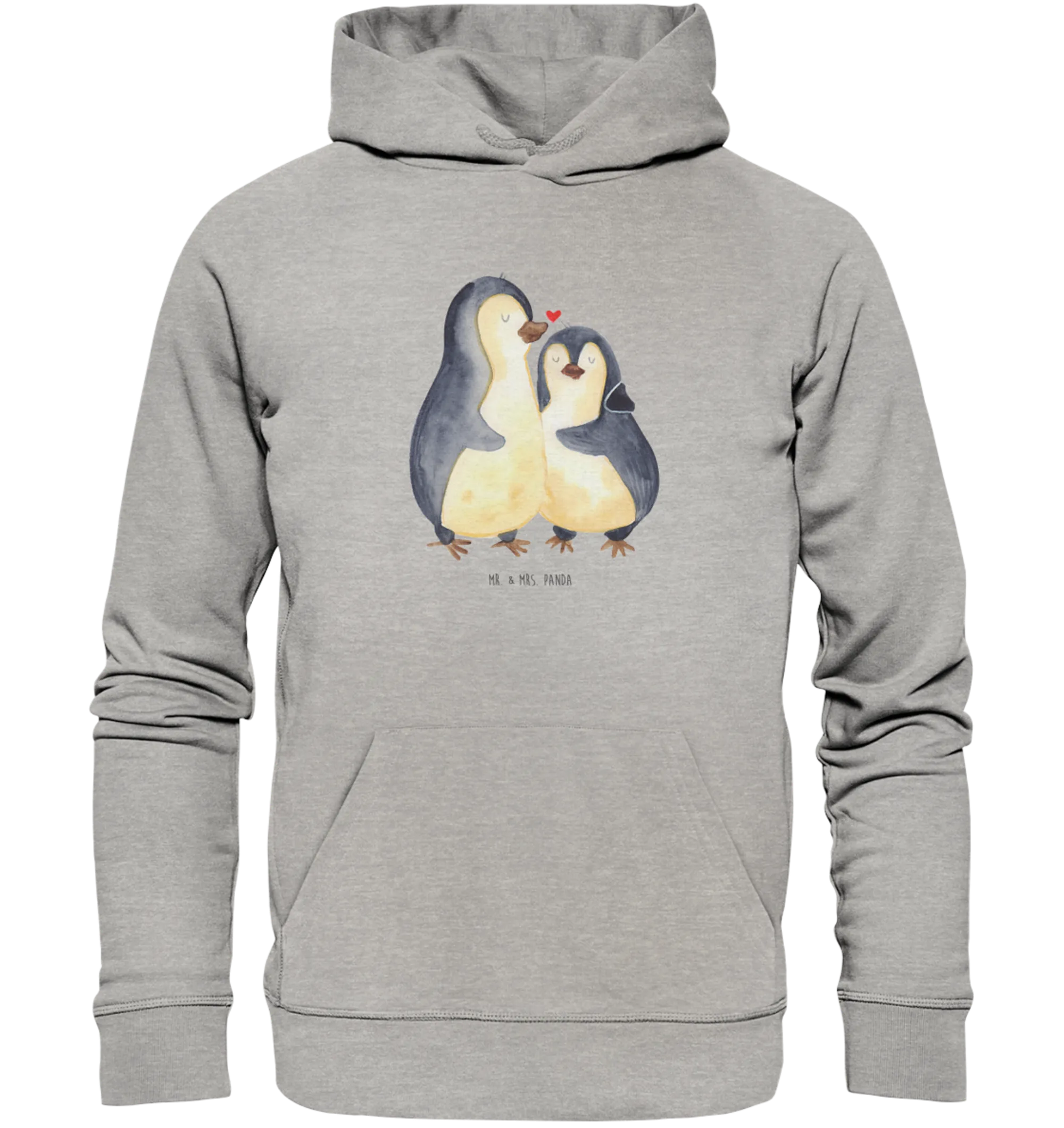 Der Hoodie besticht nicht nur durch seine außergewöhnliche Weichheit dank der hochwertigen Bio-Baumwolle, sondern auch durch sein zauberhaftes Design: zwei kuschelnde Pinguine, die durch ein rotes Herz verbunden sind, drücken die innige Liebe perfekt aus. Die Kunst ist in einer warmen Aquarelltechnik gehalten, die sofort für gute Laune sorgt und das Herz höherschlagen lässt. Man sieht den Pinguinen die Zuneigung an, sie sind glücklich und zufrieden – genau wie in einer harmonischen Beziehung!