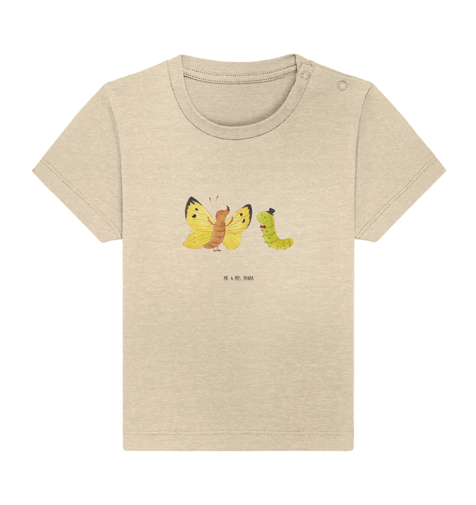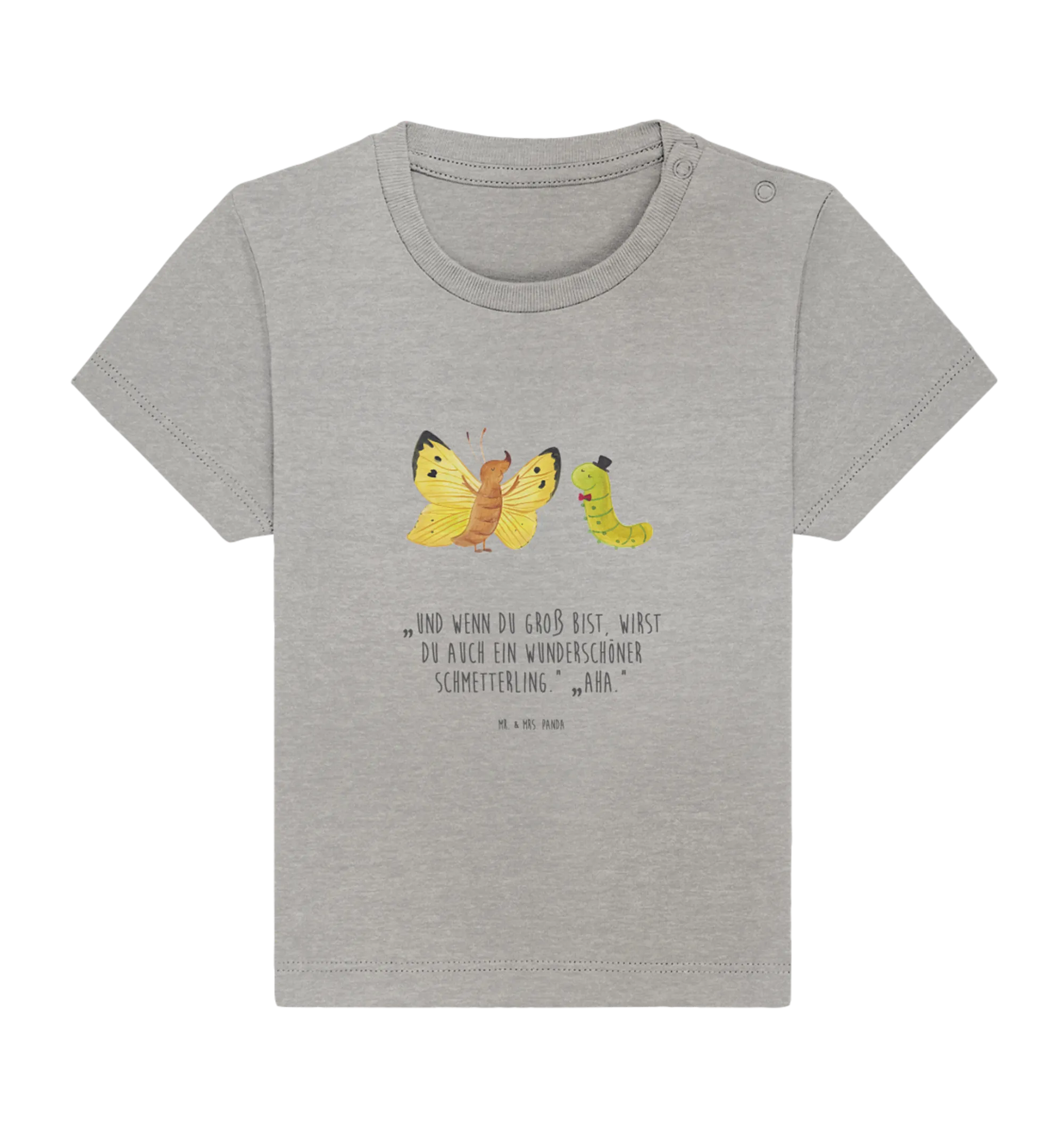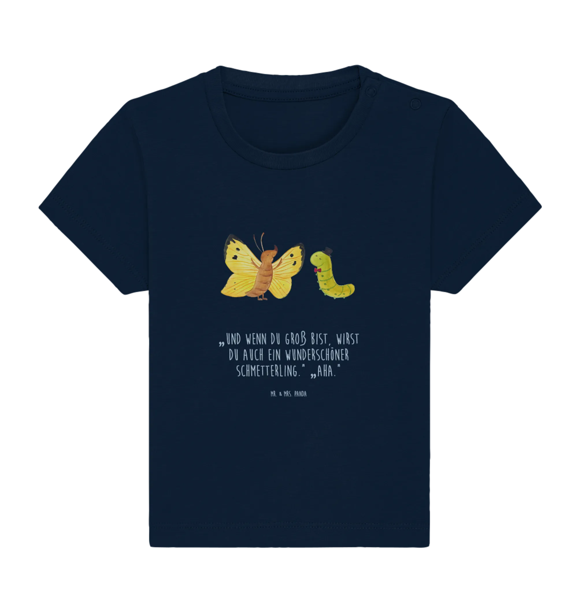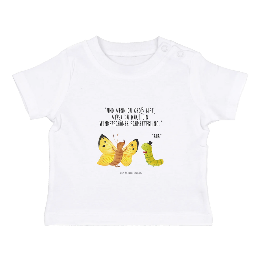 Organiczna koszulka dla niemowląt gąsienica motyl - 0. - 6. miesiąc - z napisem - Biały