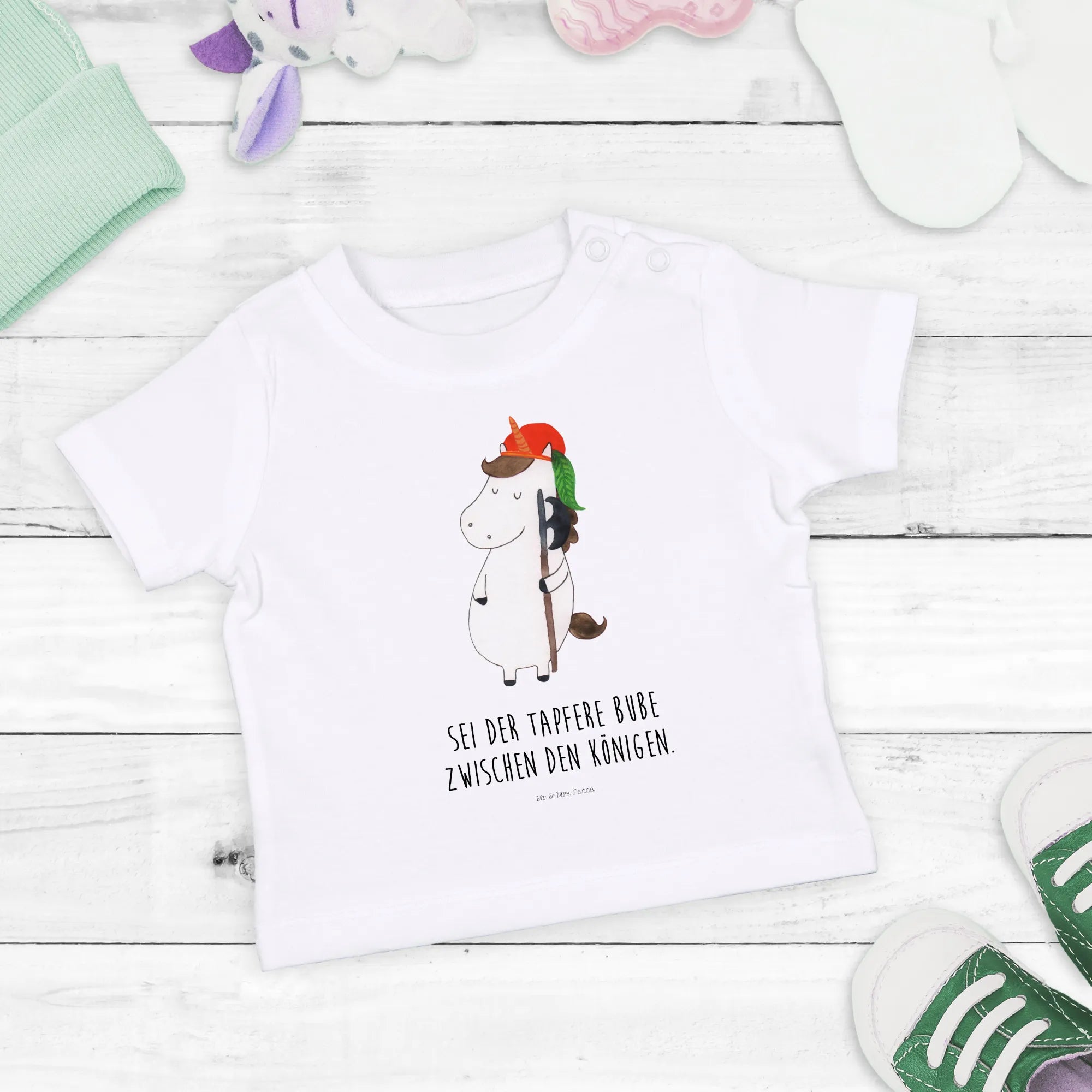 Organiczna koszulka dla niemowląt Jednorożec Chłopiec - 6. - 12. miesiąc - z napisem - Biały
