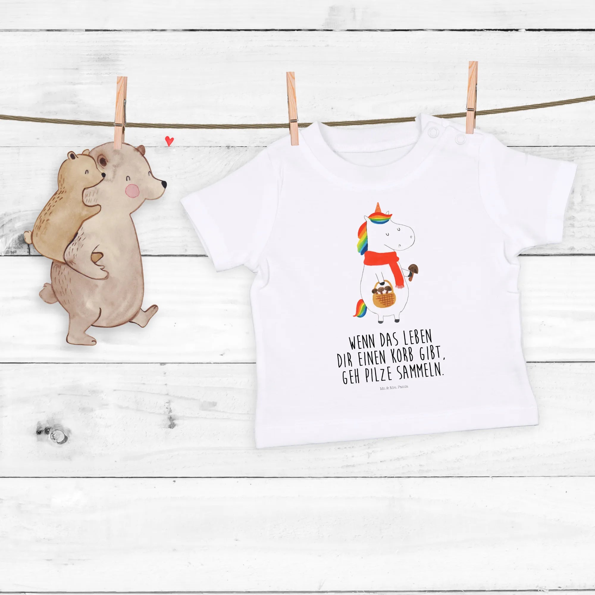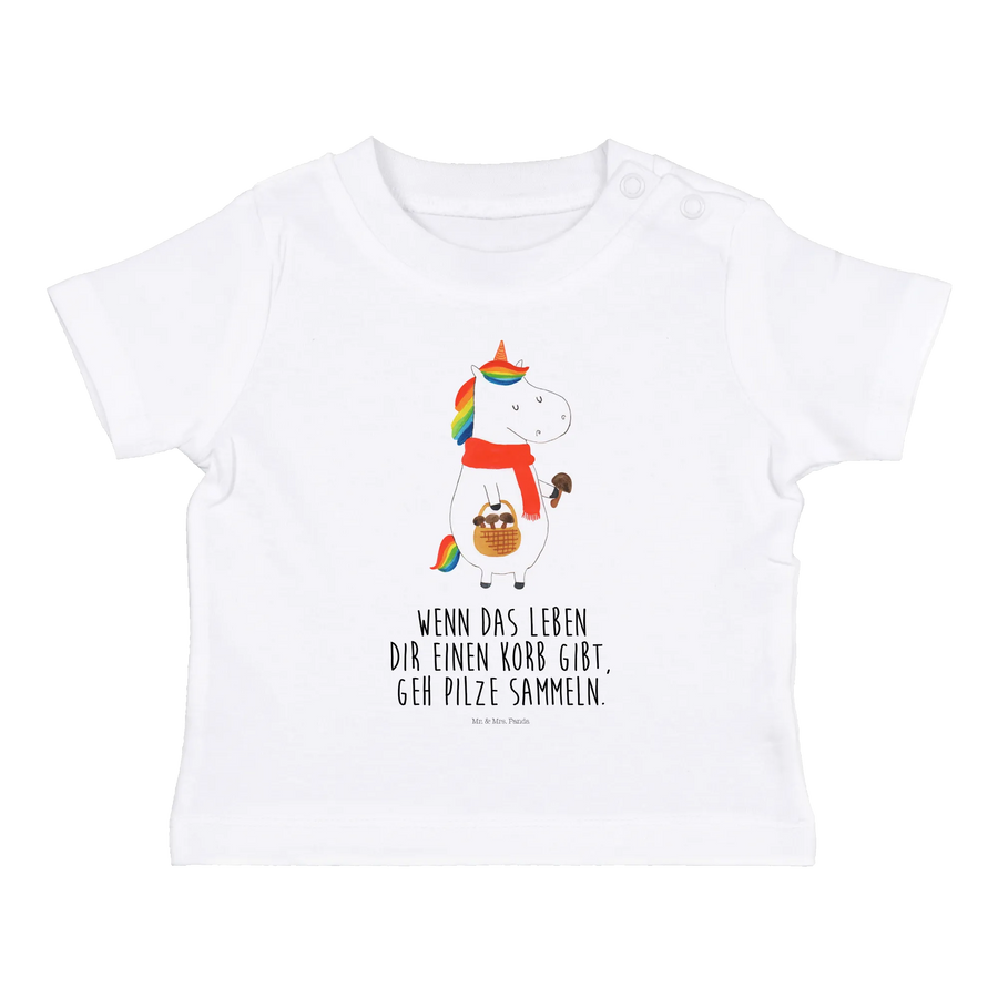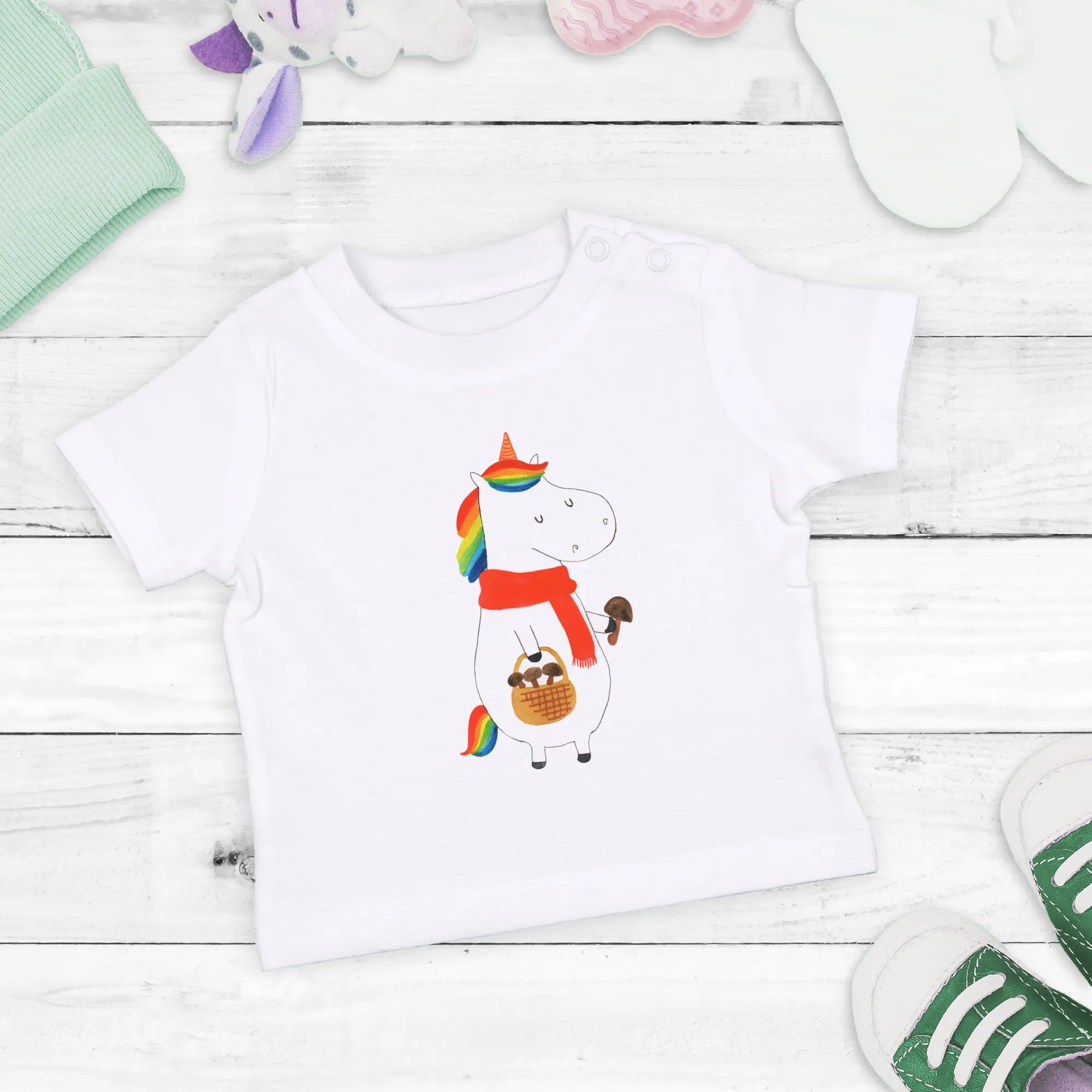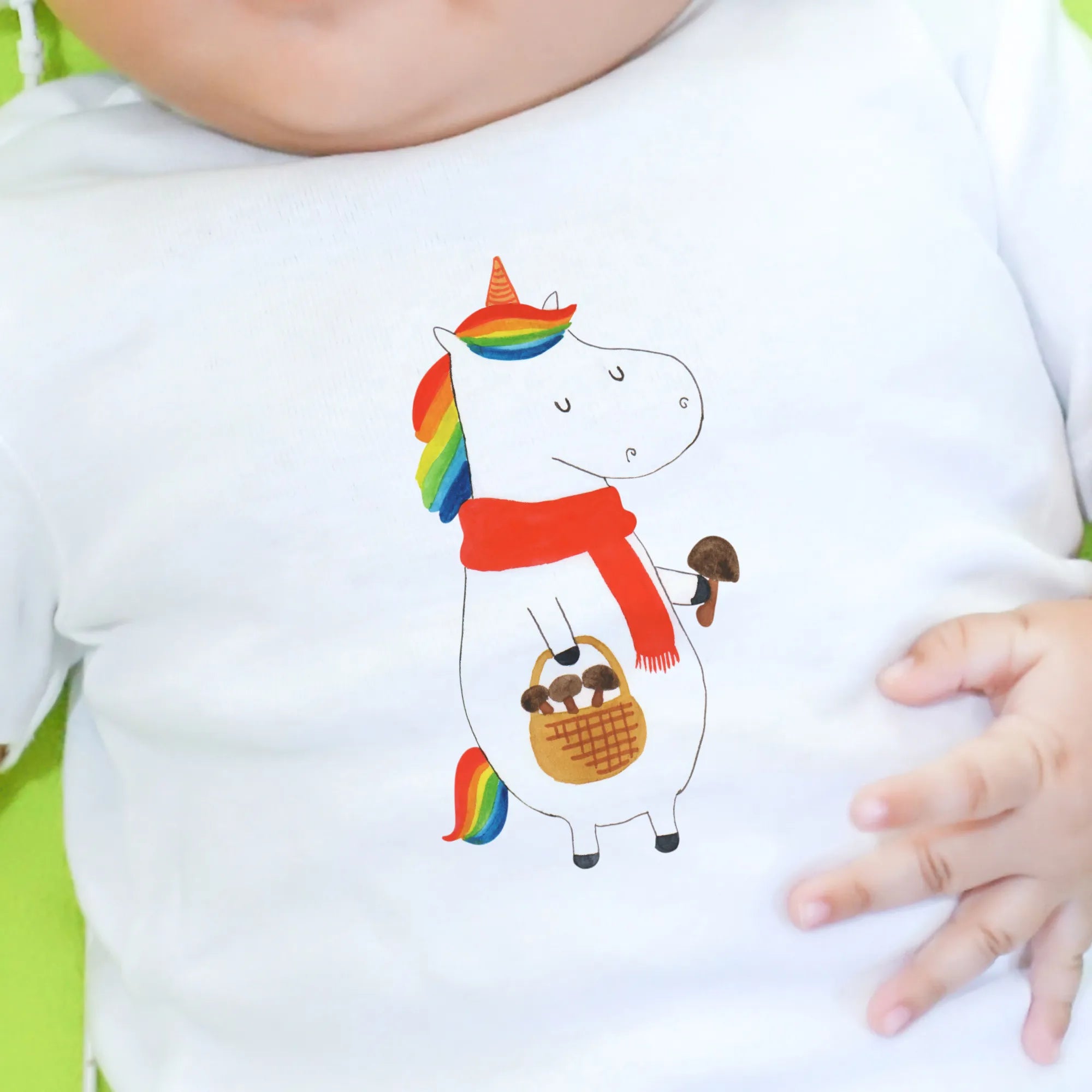 Organiczna koszulka dla niemowląt Jednorożec grzyb - 6. - 12. miesiąc - z napisem - Biały