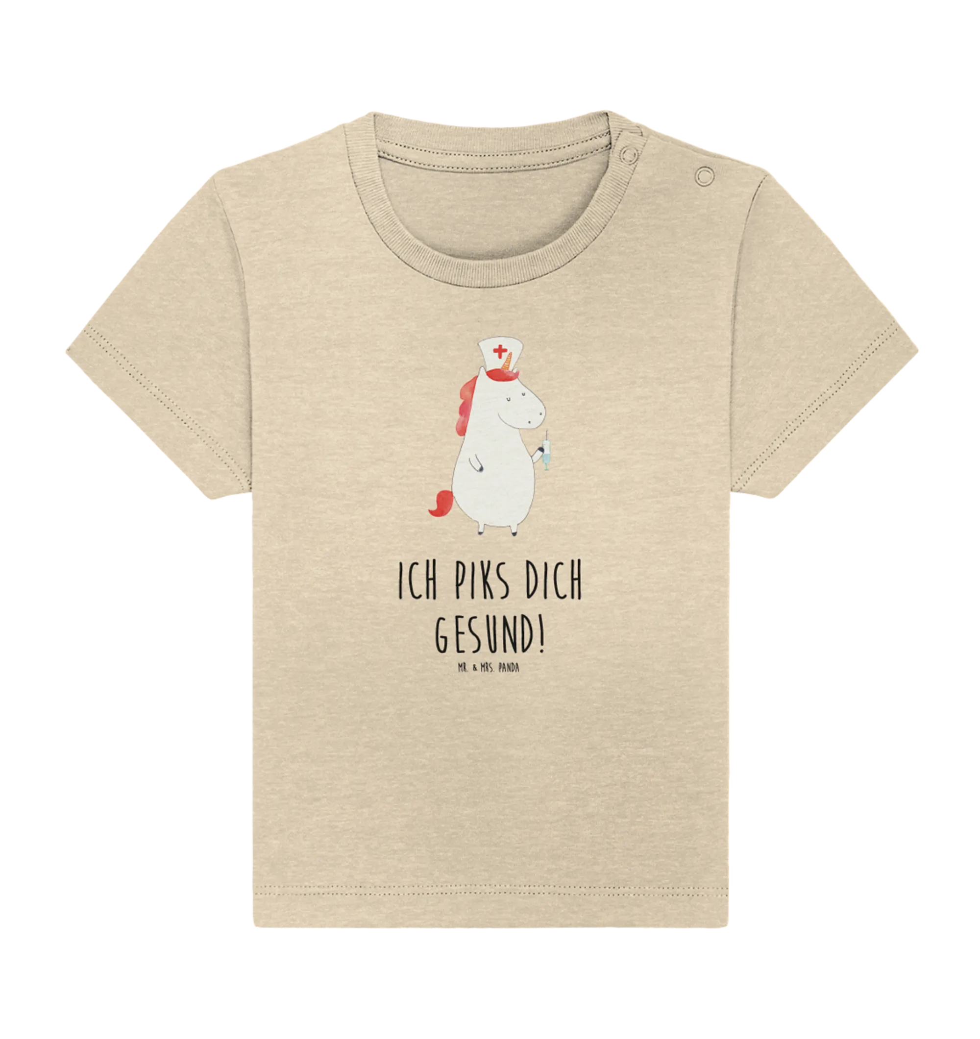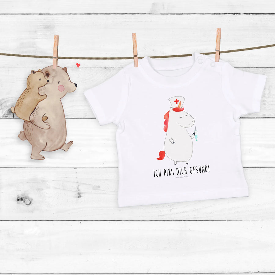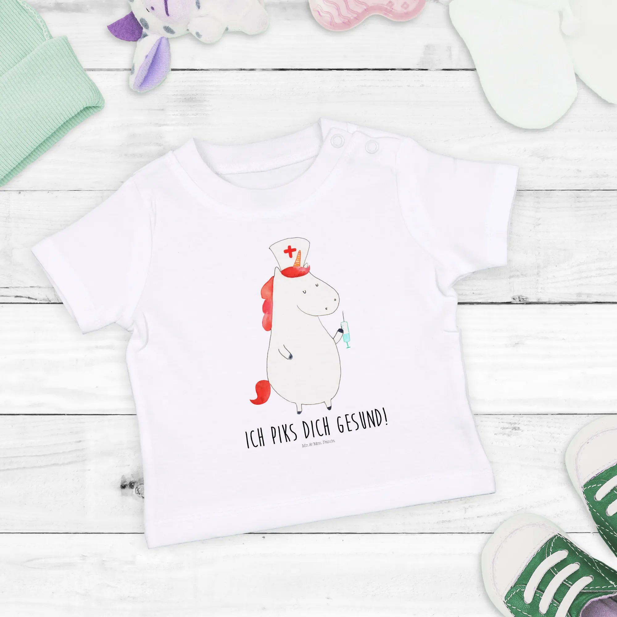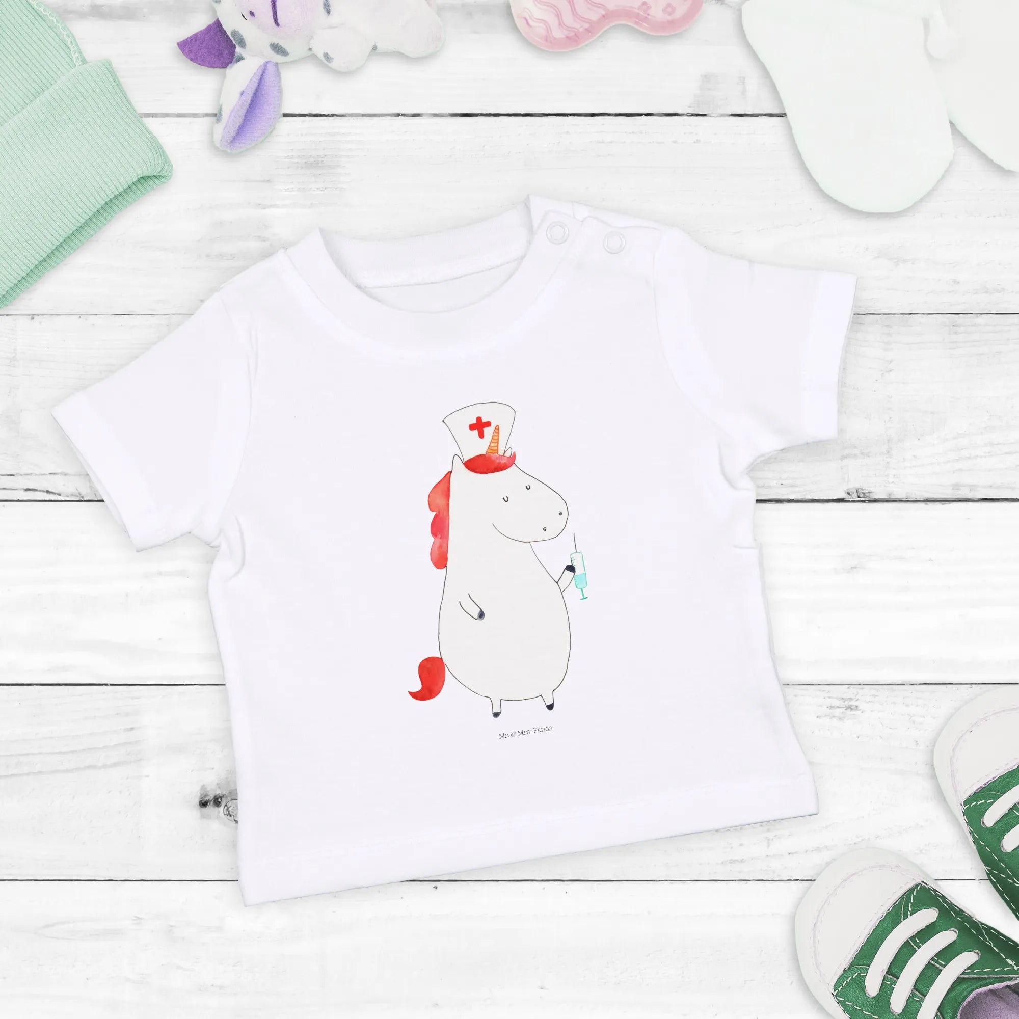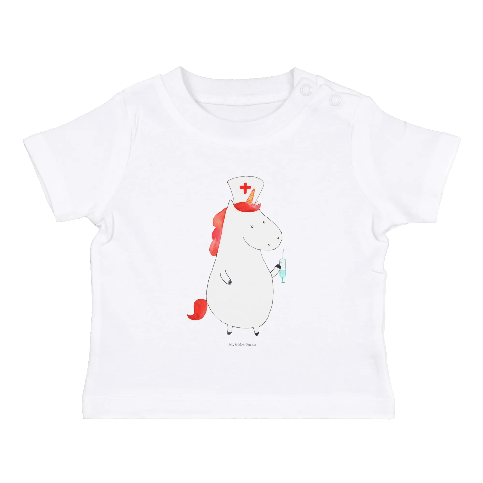 Organiczna koszulka dla niemowląt Jednorożec Pielęgniarka - 6. - 12. Monat - z napisem - biały