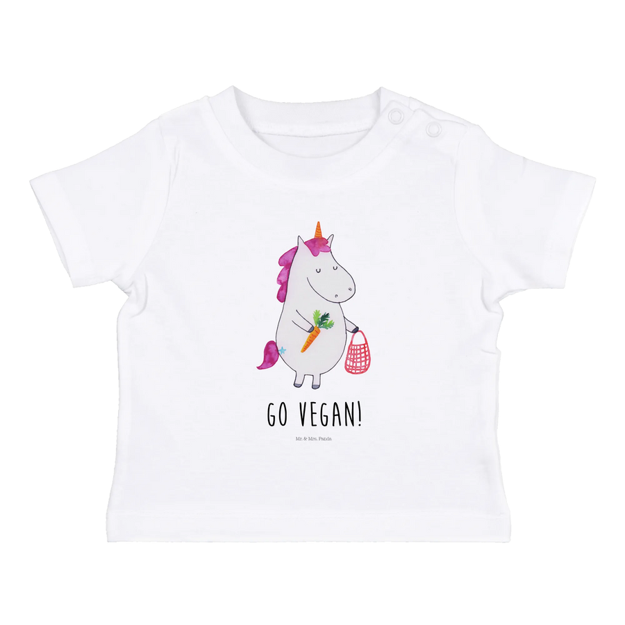 Organiczna koszulka dla niemowląt Jednorożec Wegański - 6. - 12. miesiąc - z napisem - Biały