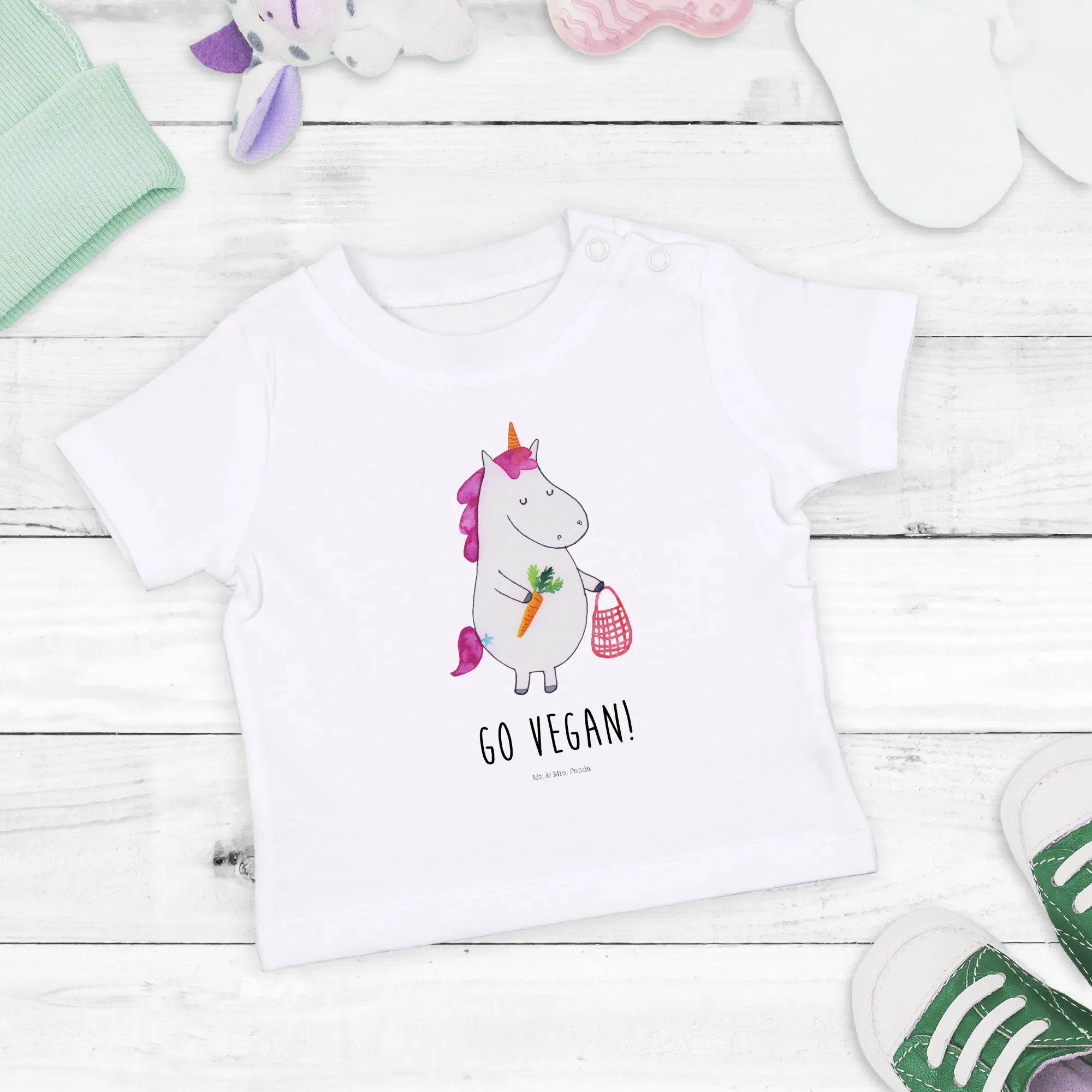 Organiczna koszulka dla niemowląt Jednorożec Wegański - 6. - 12. Monat - z napisem - biały