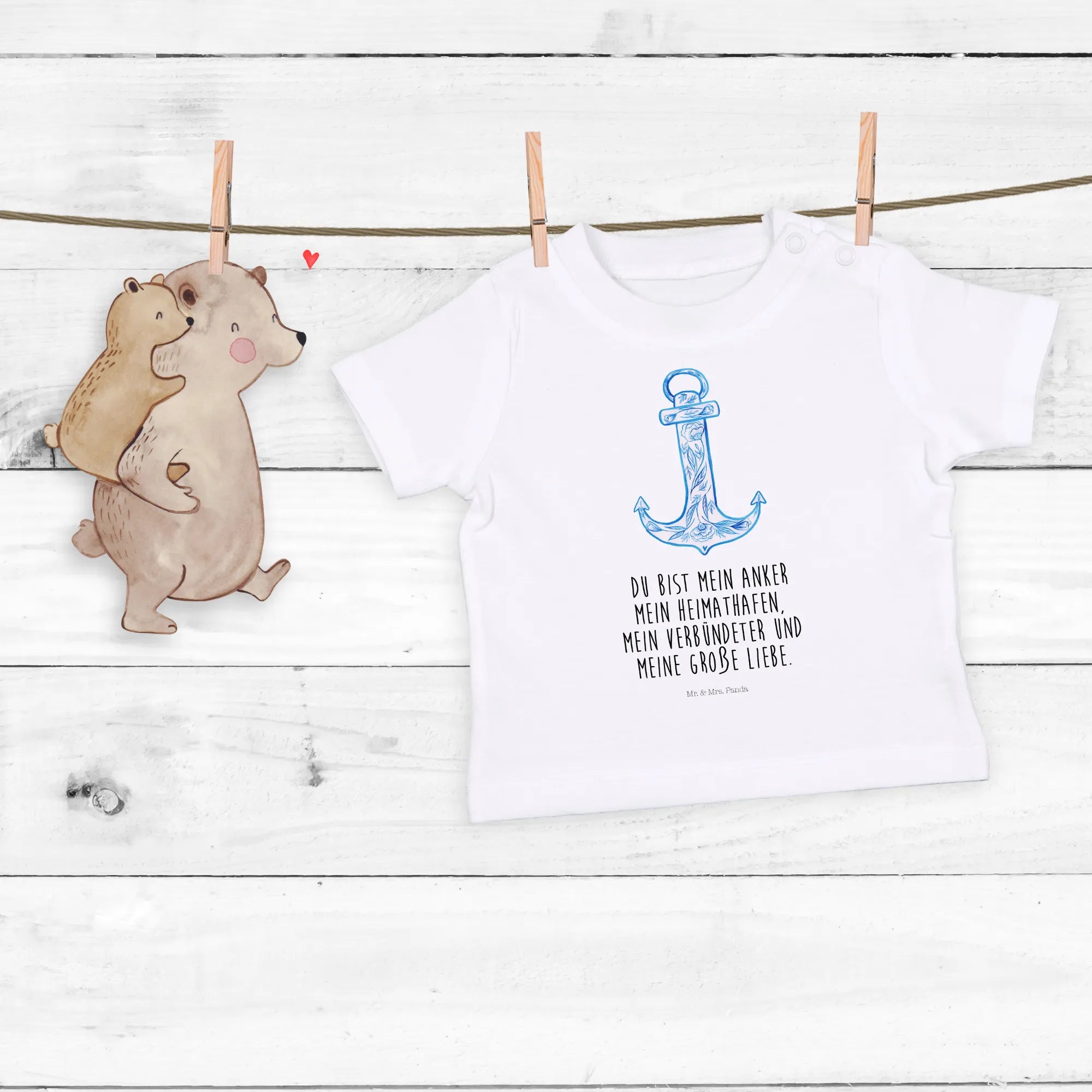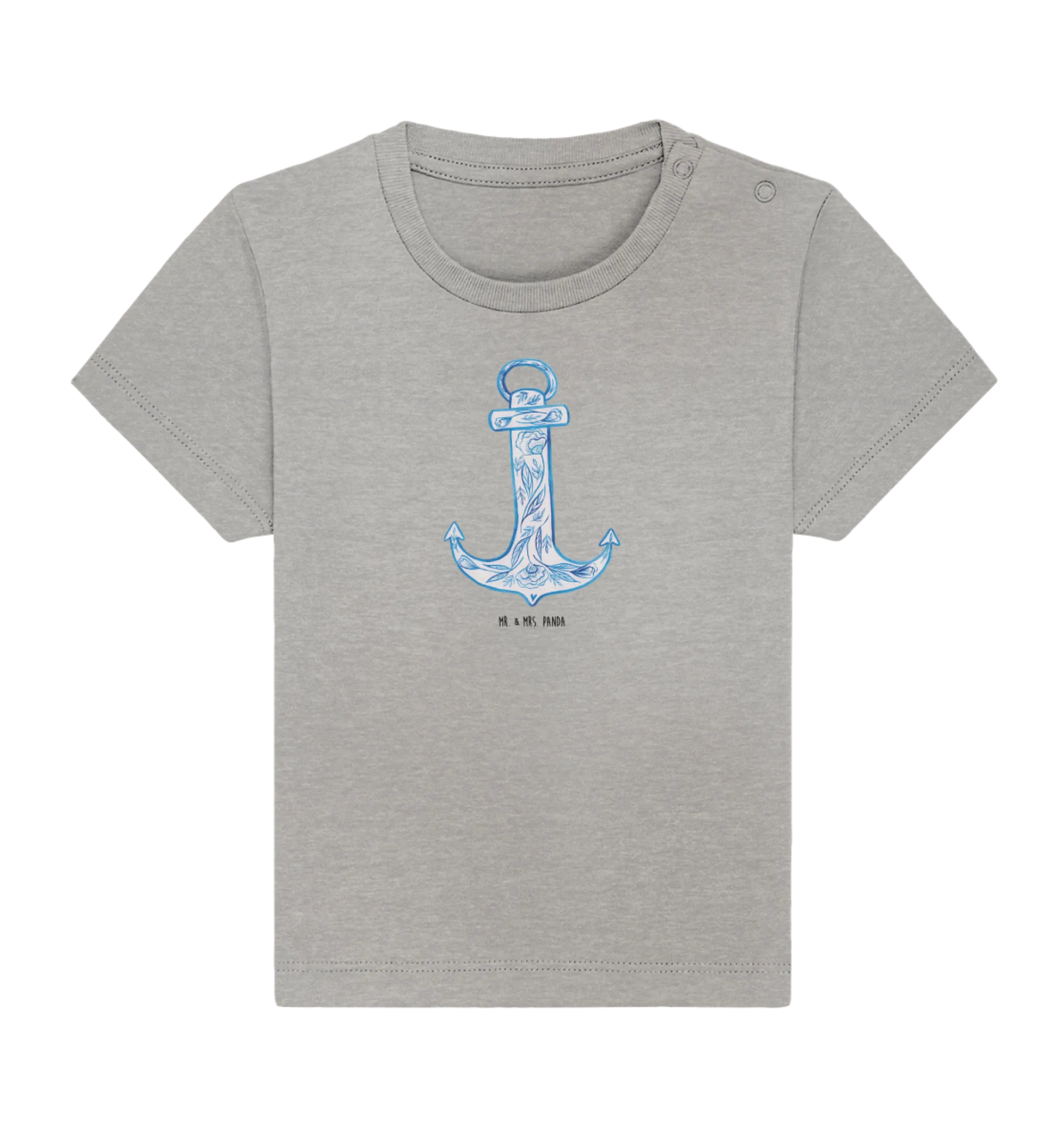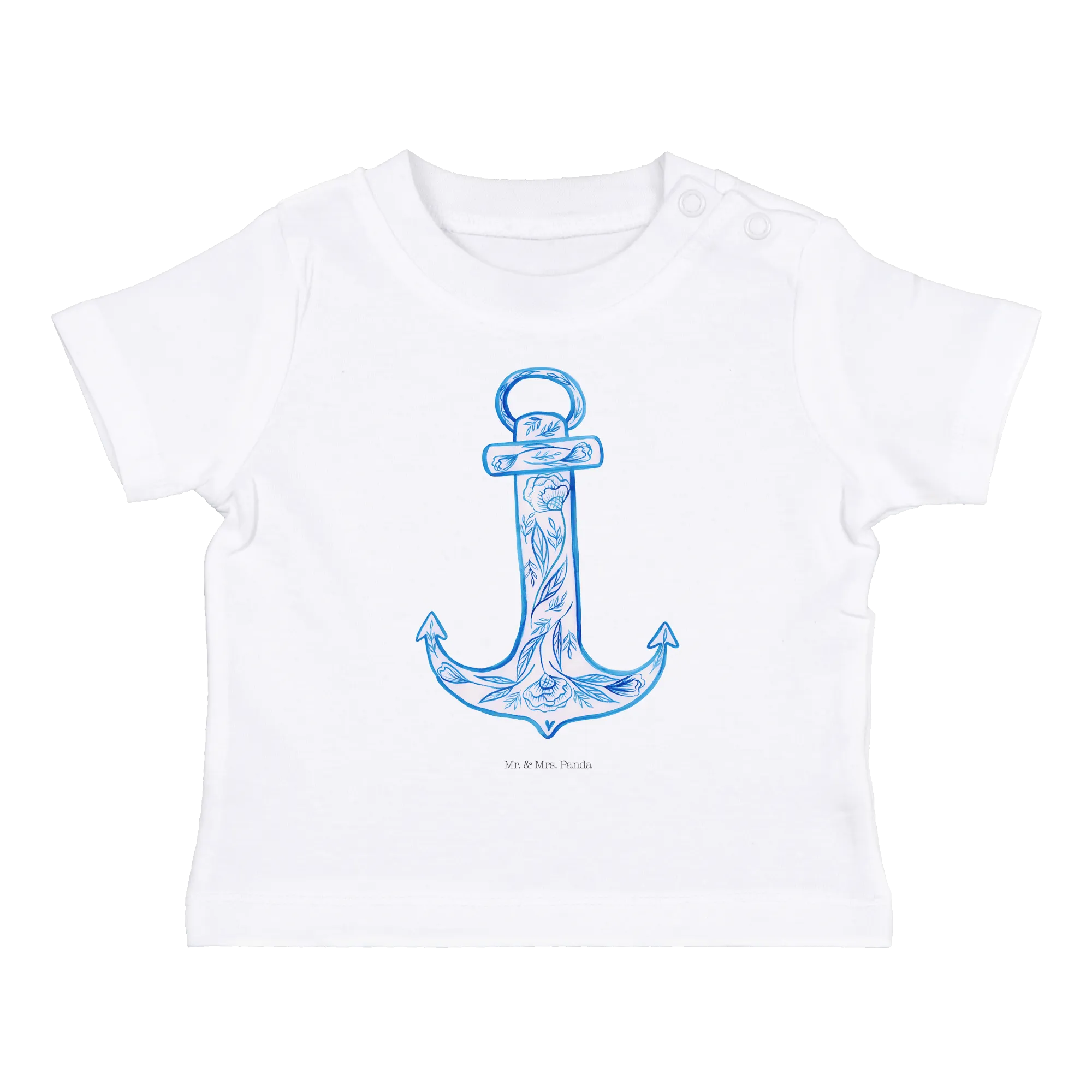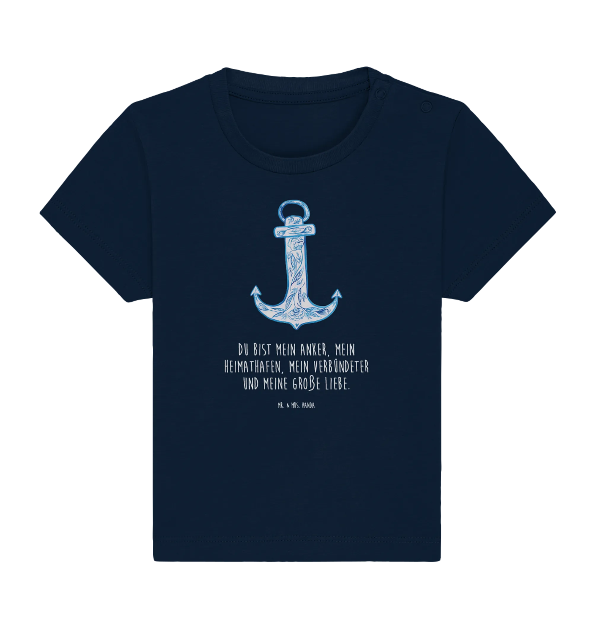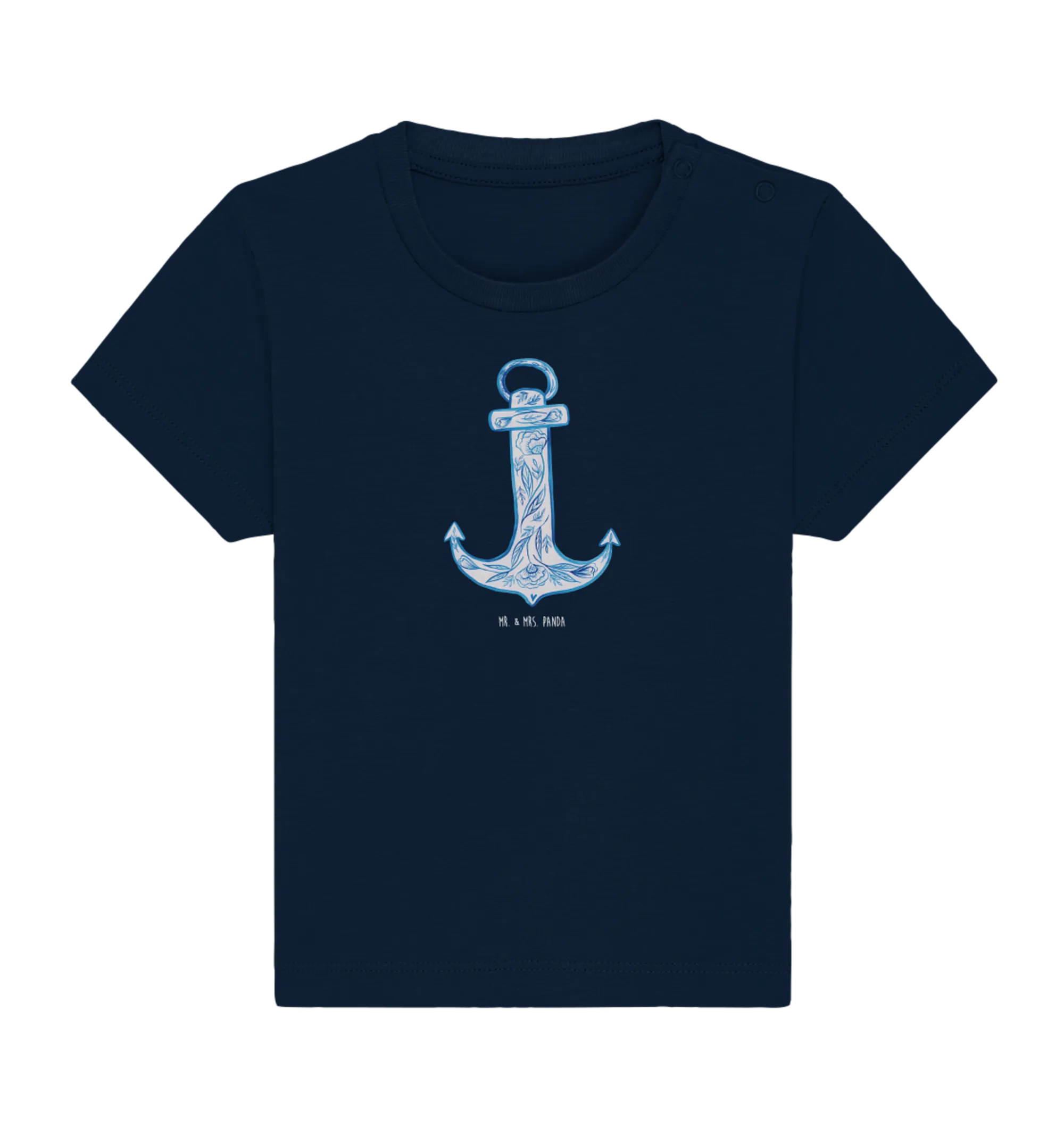 Organiczna koszulka dla niemowląt kotwica Niebieski - 0. - 6. miesiąc - z napisem - Biały