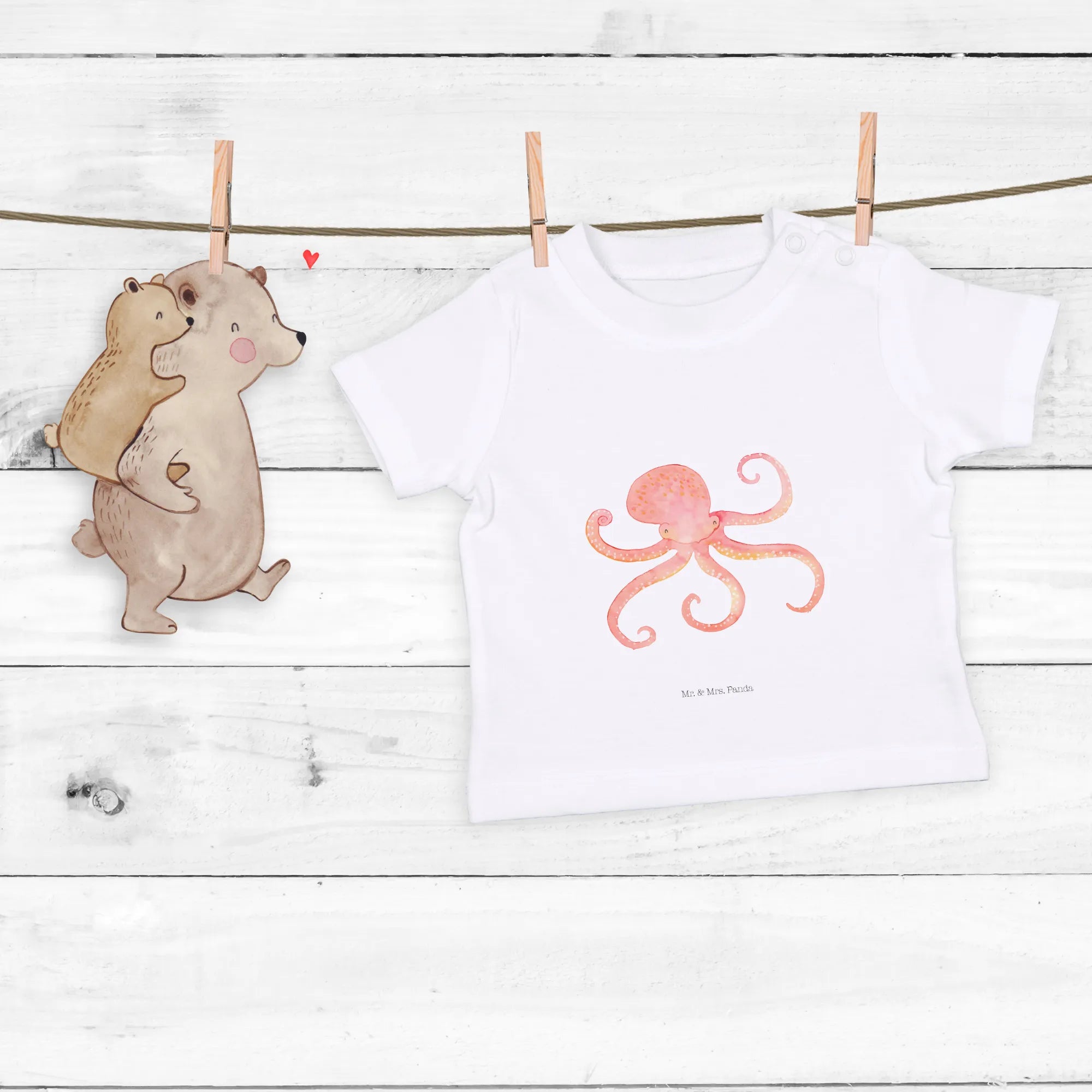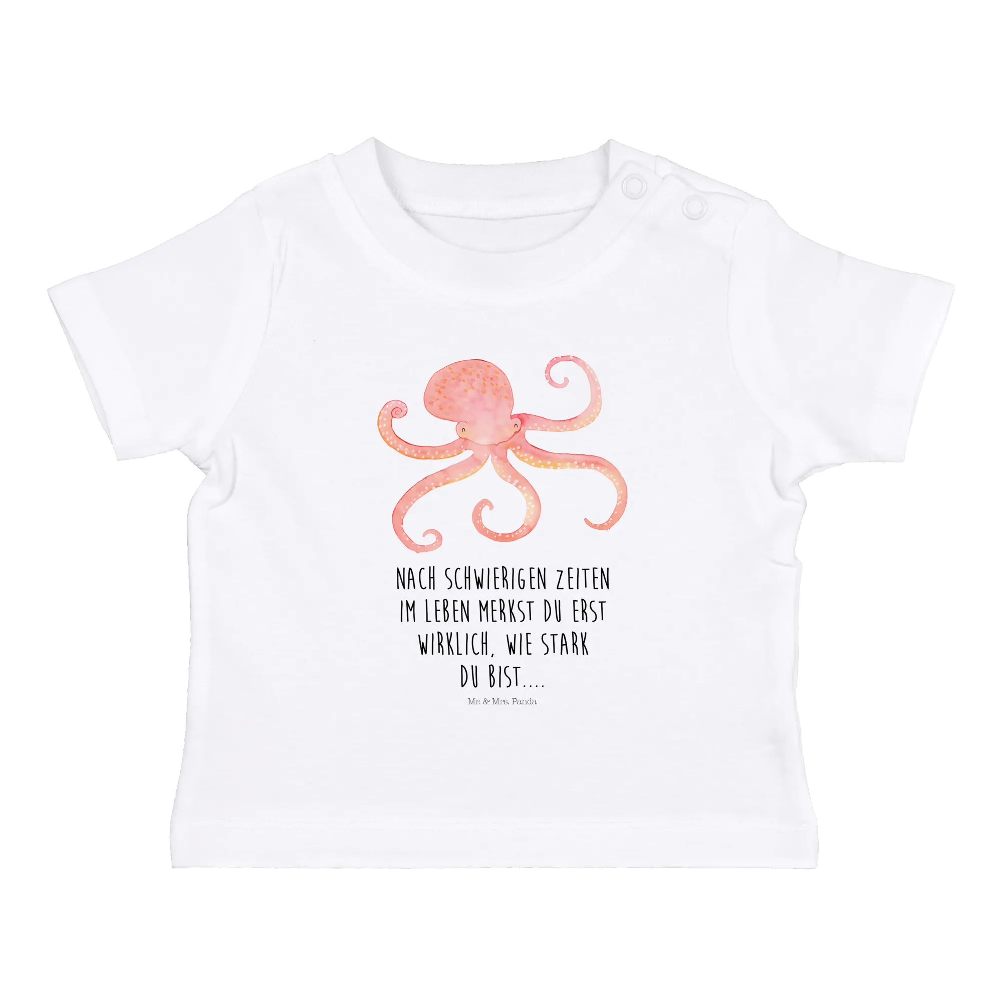 Organiczna koszulka dla niemowląt Ośmiornica - 0. - 6. Monat - z napisem - Biały
