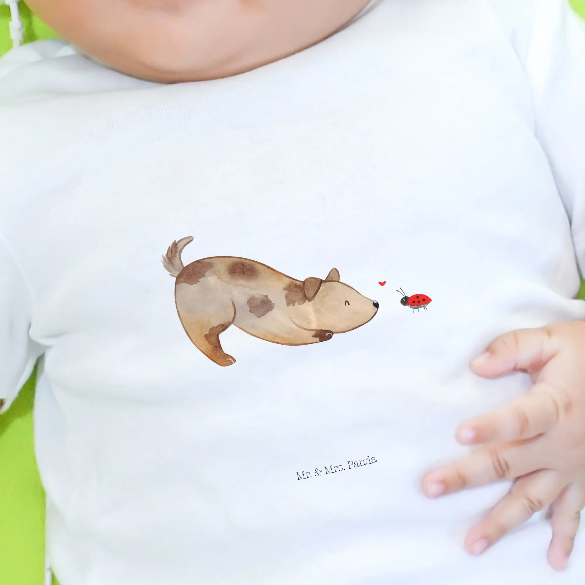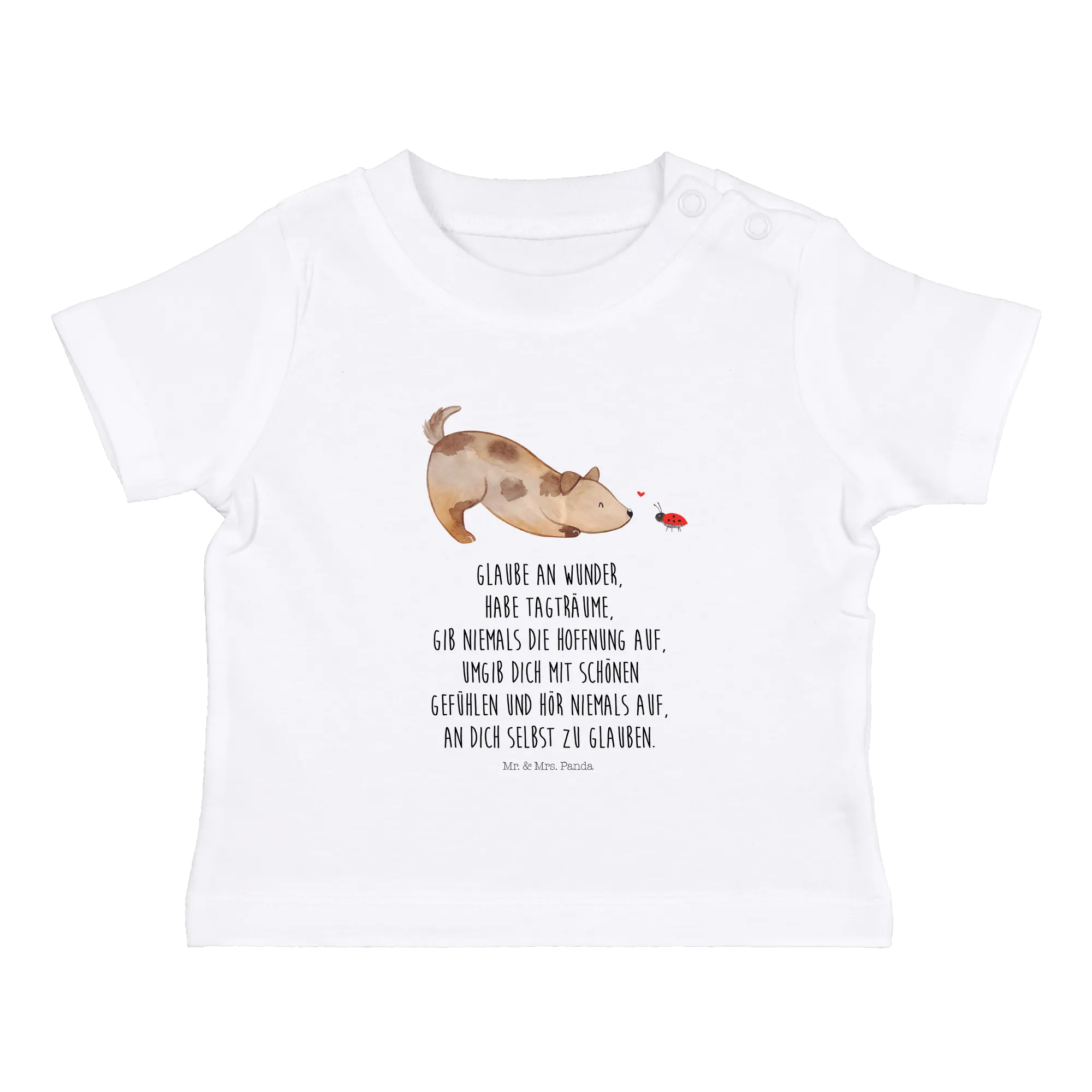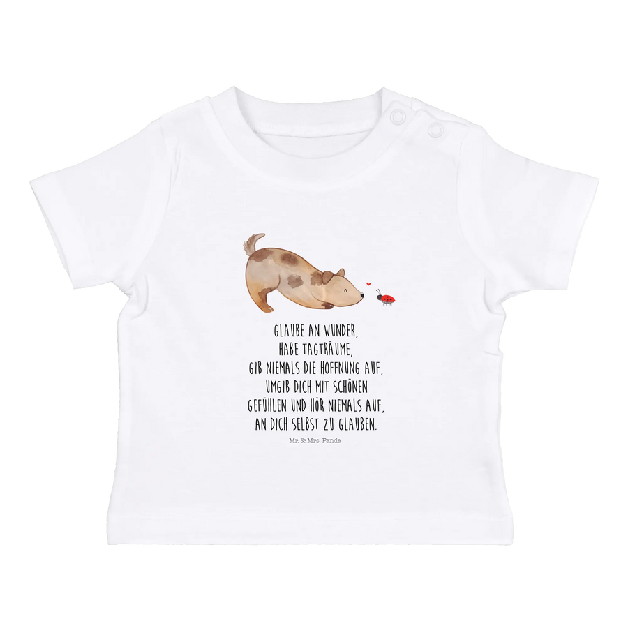 Organiczna koszulka dla niemowląt pies biedronka - 6. - 12. Monat - z napisem
