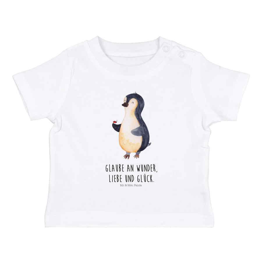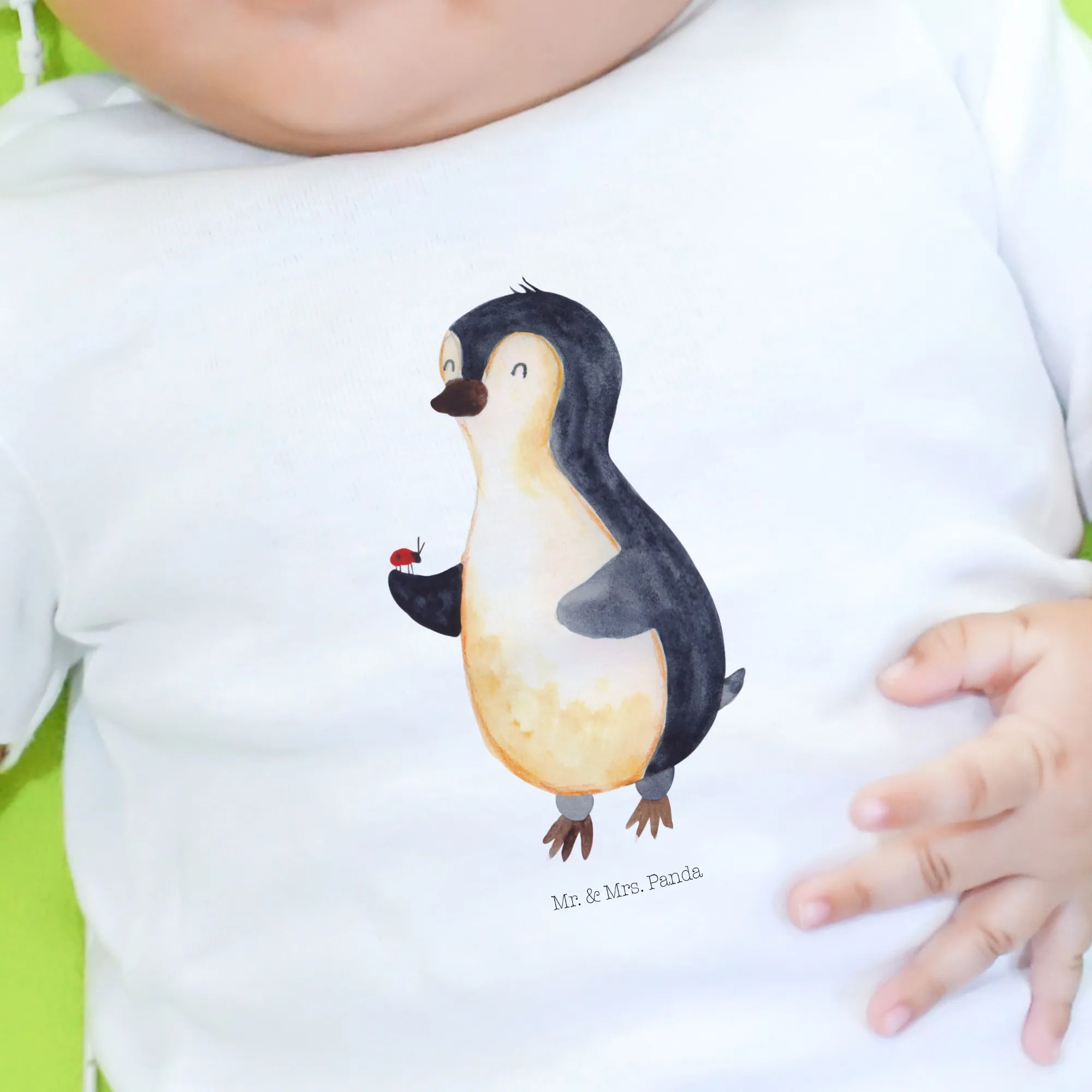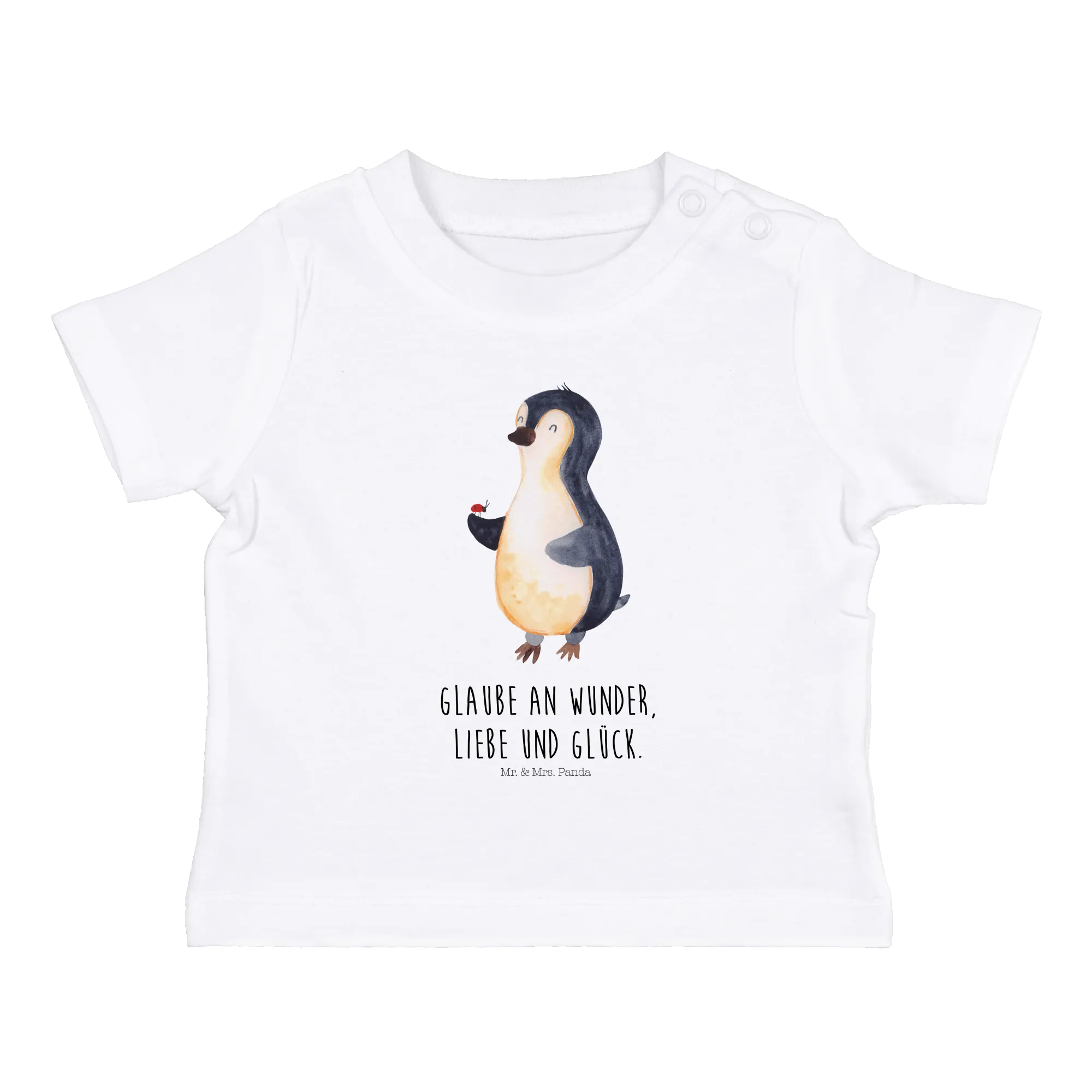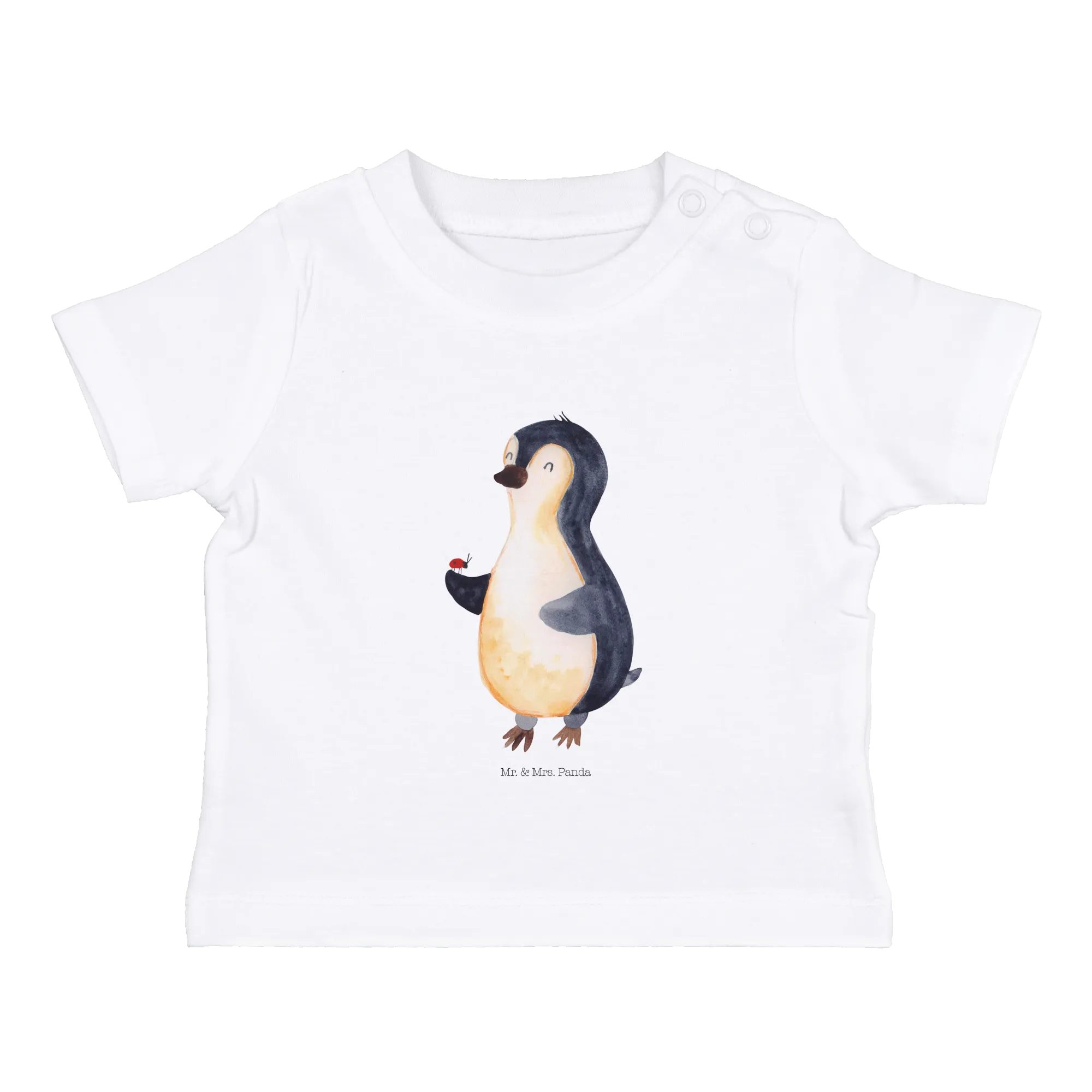 Organiczna koszulka dla niemowląt Pingwin biedronka - 0. - 6. miesiąc - z napisem - Biały