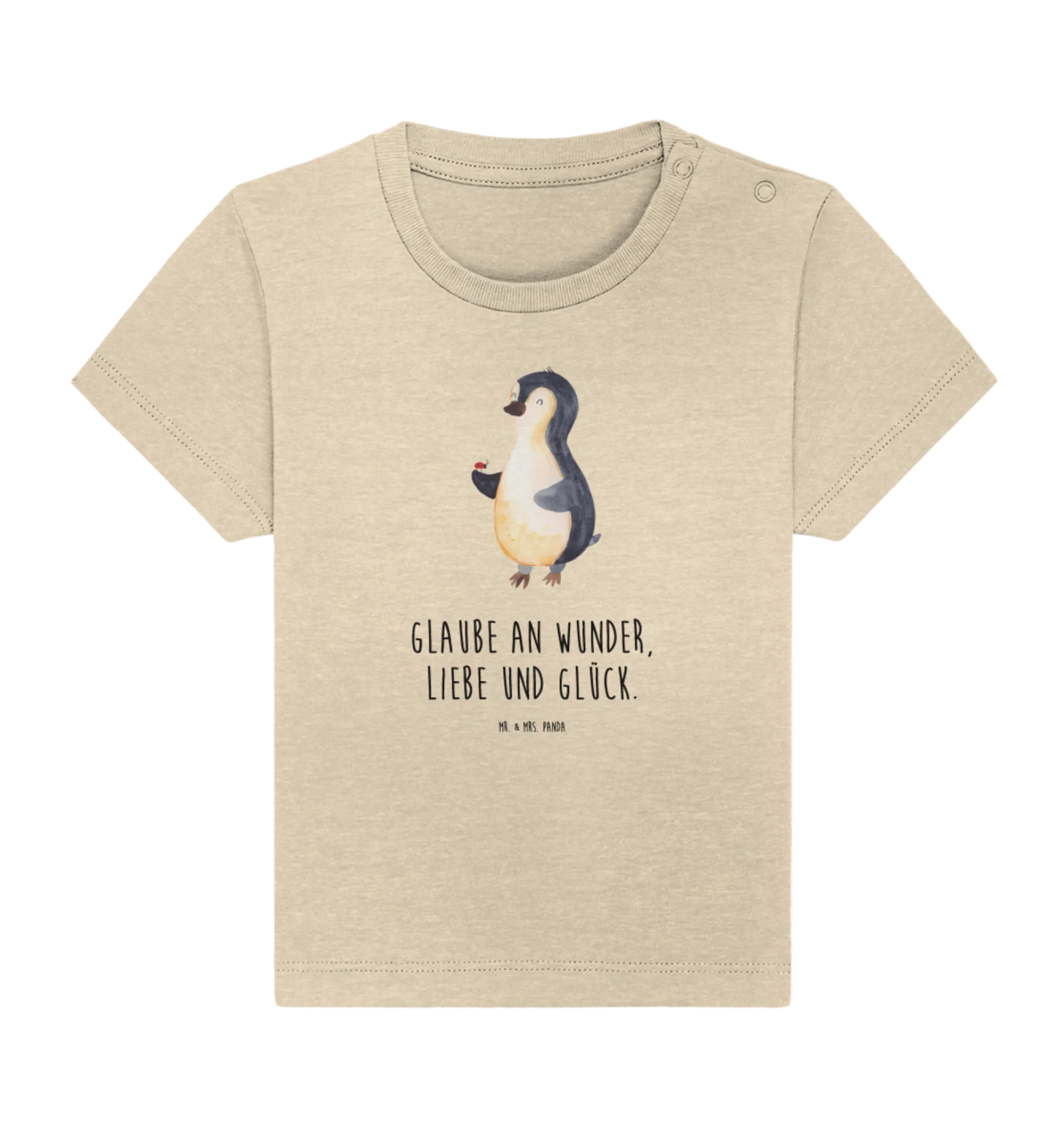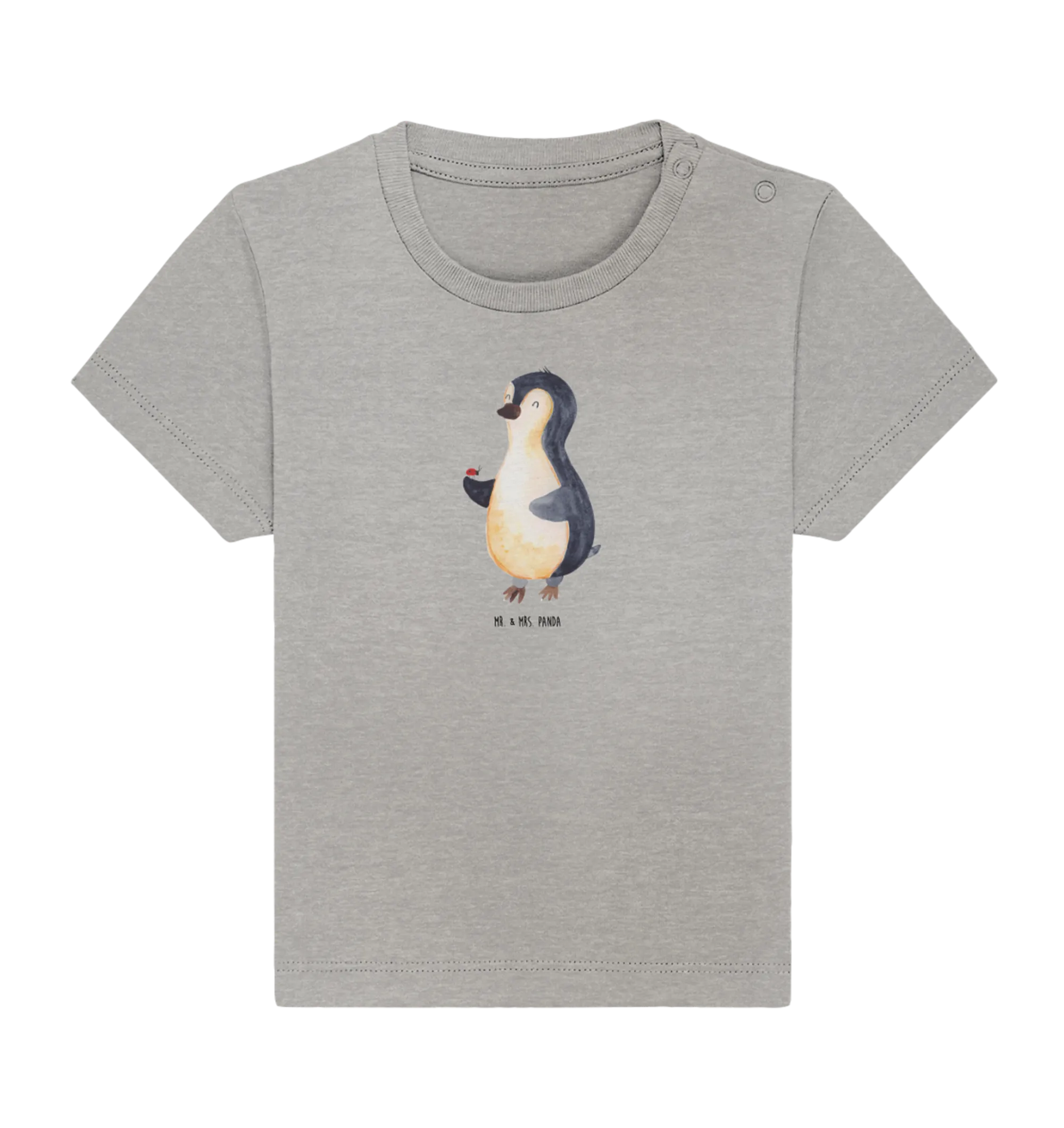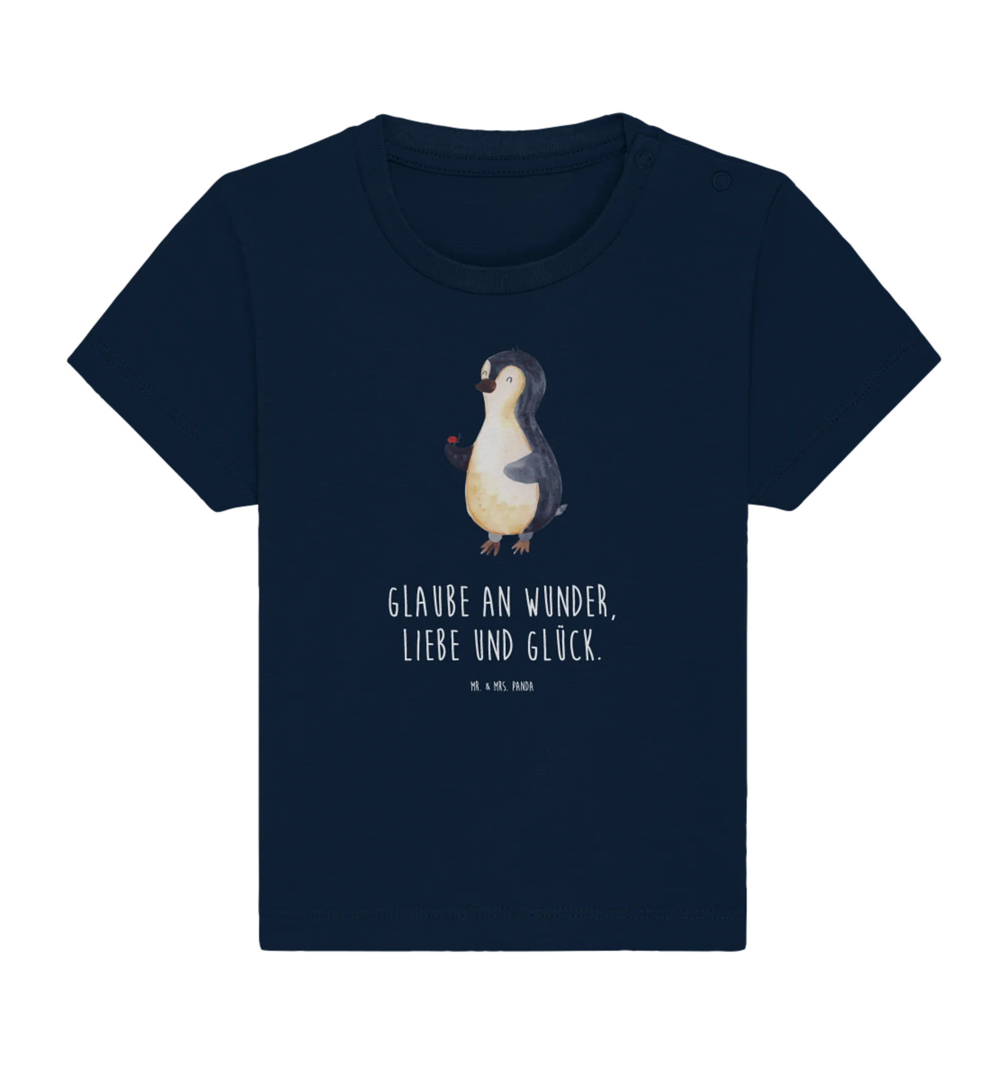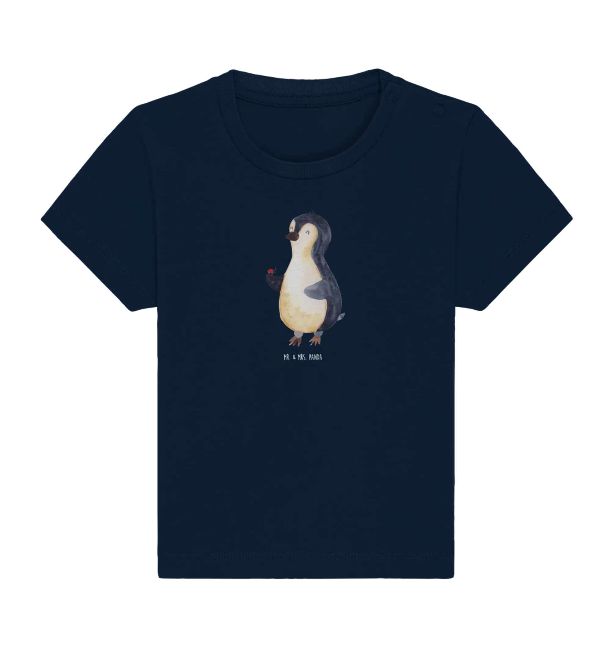 Organiczna koszulka dla niemowląt Pingwin biedronka - 0. - 6. miesiąc - z napisem - Biały