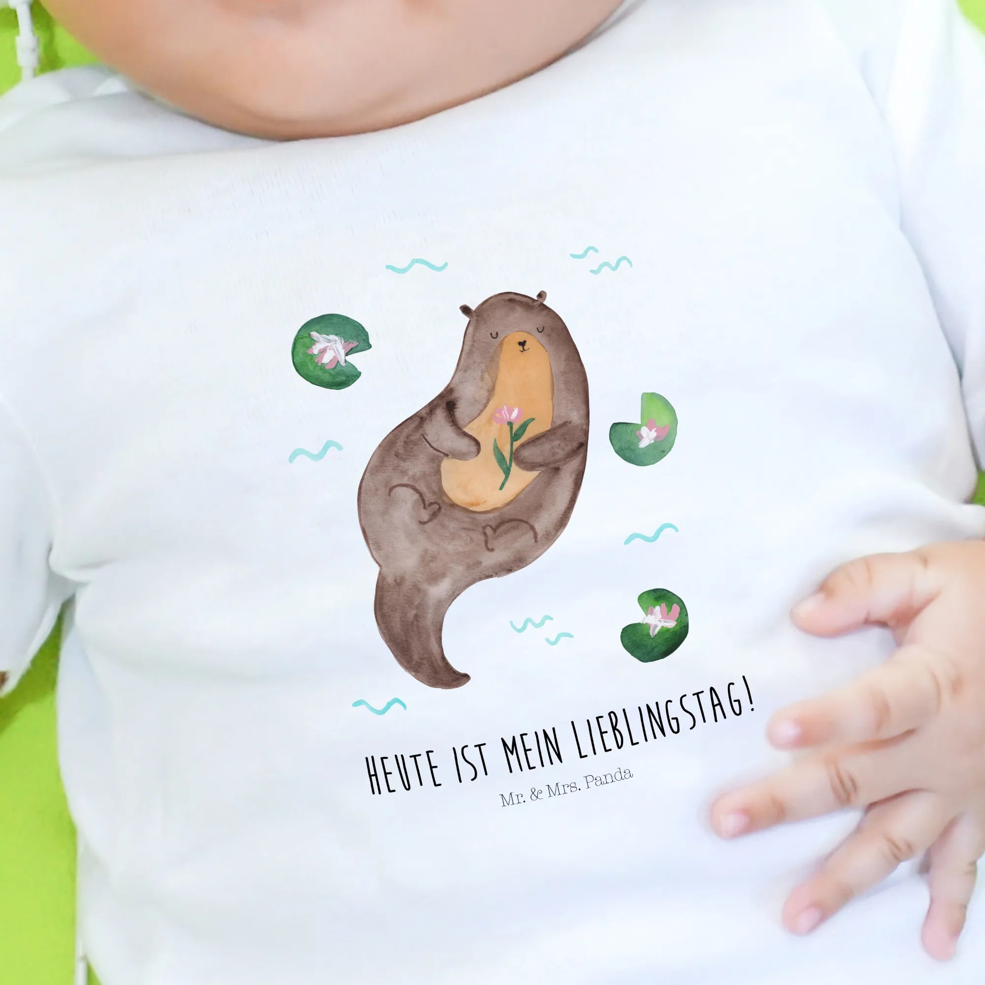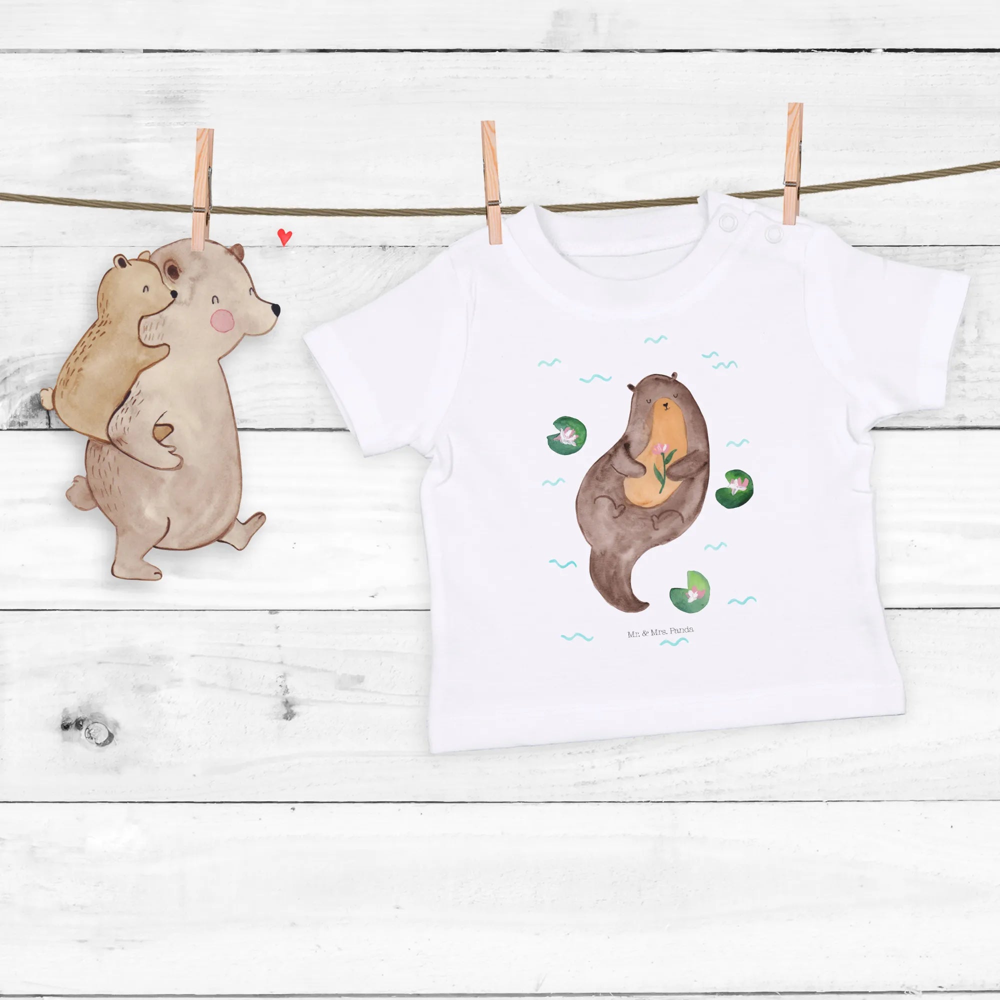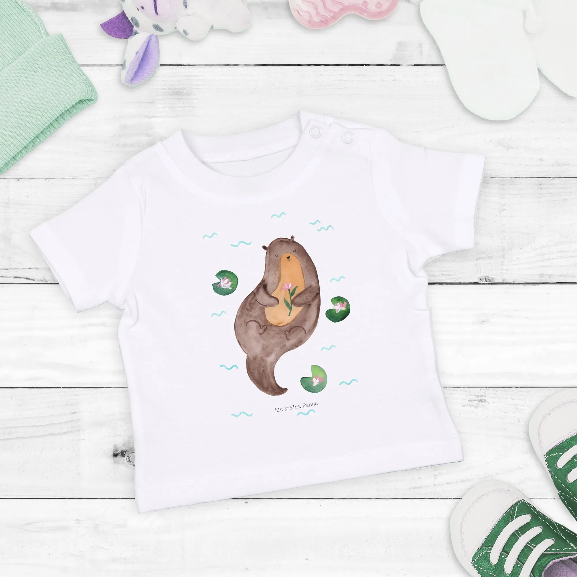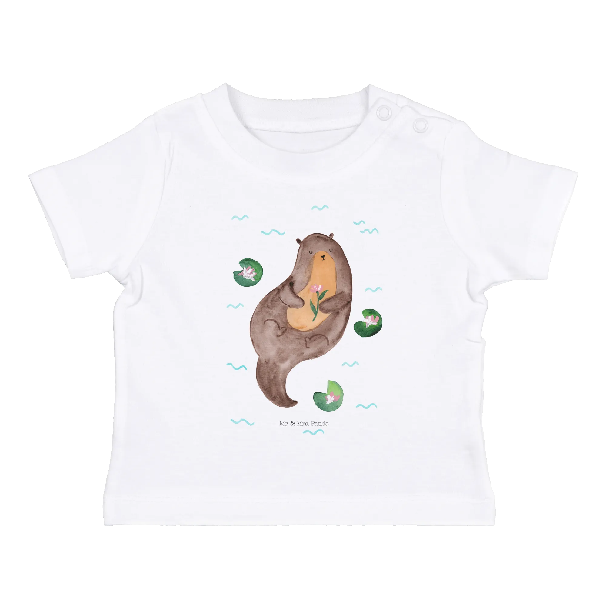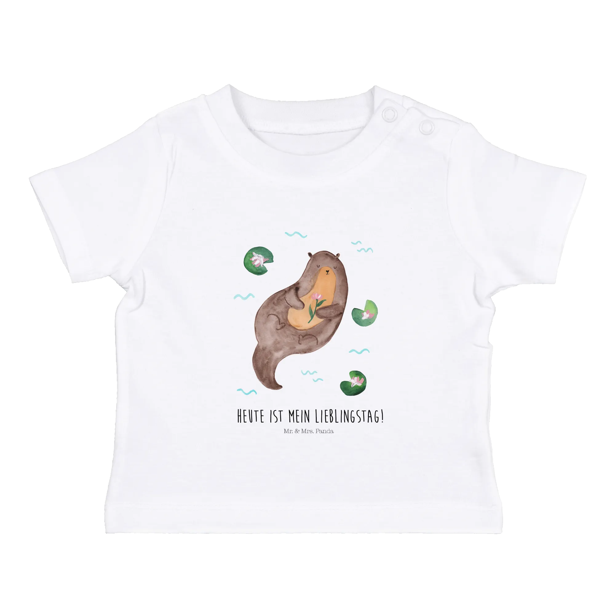 Organiczna koszulka dla niemowląt wydra lilia wodna - 6. - 12. Monat - z napisem - biały