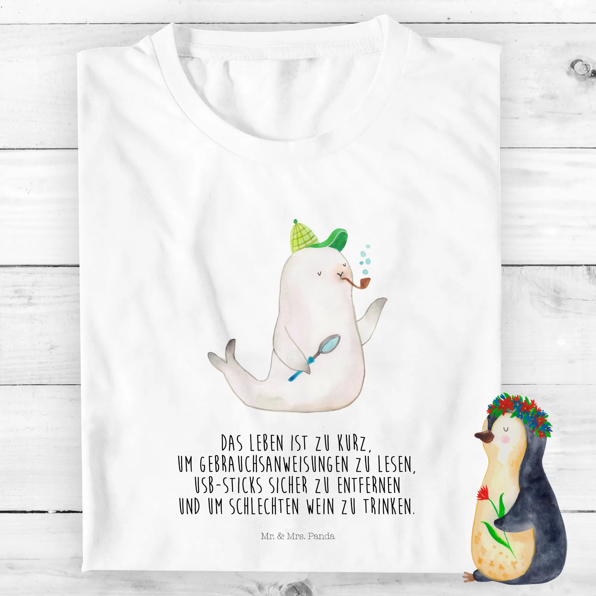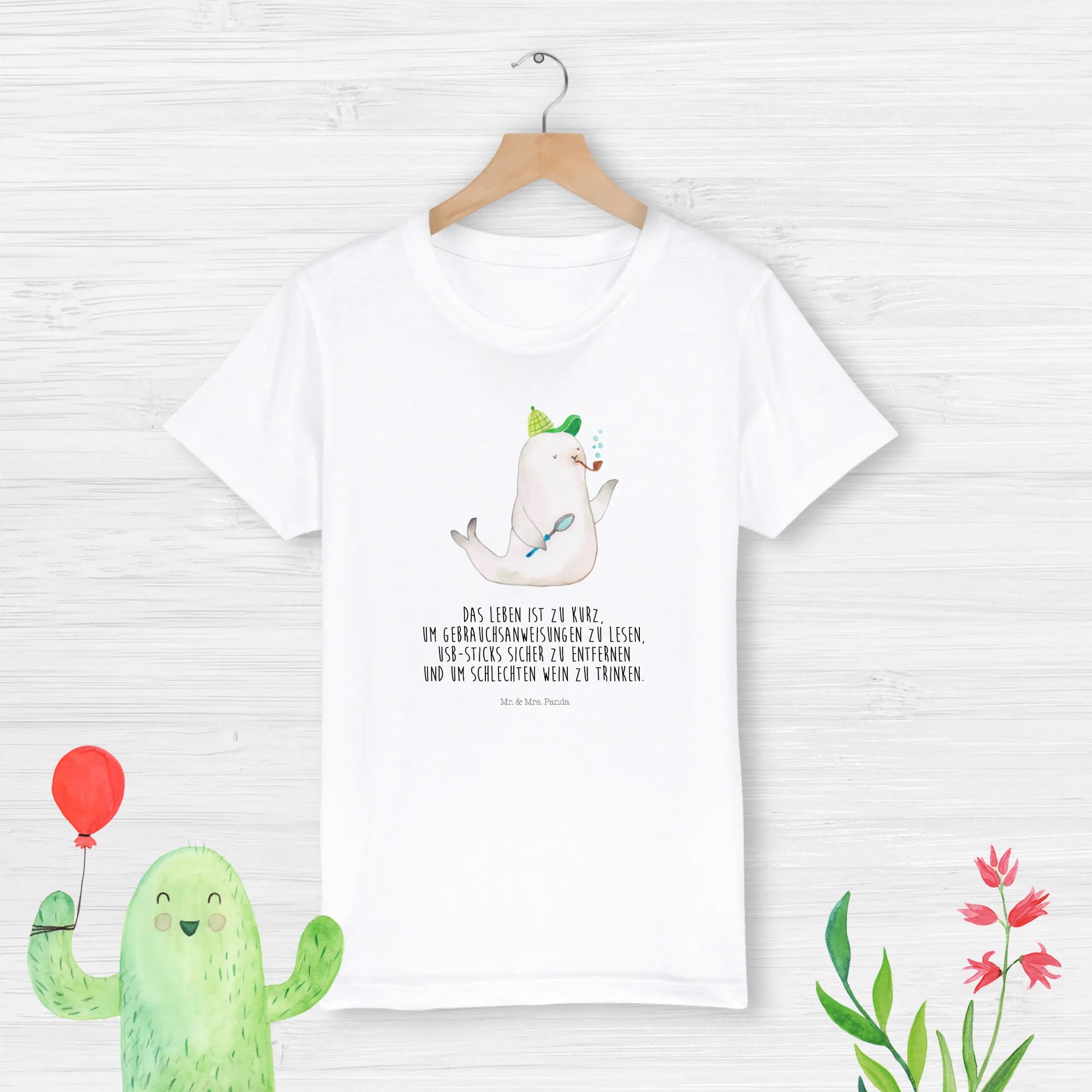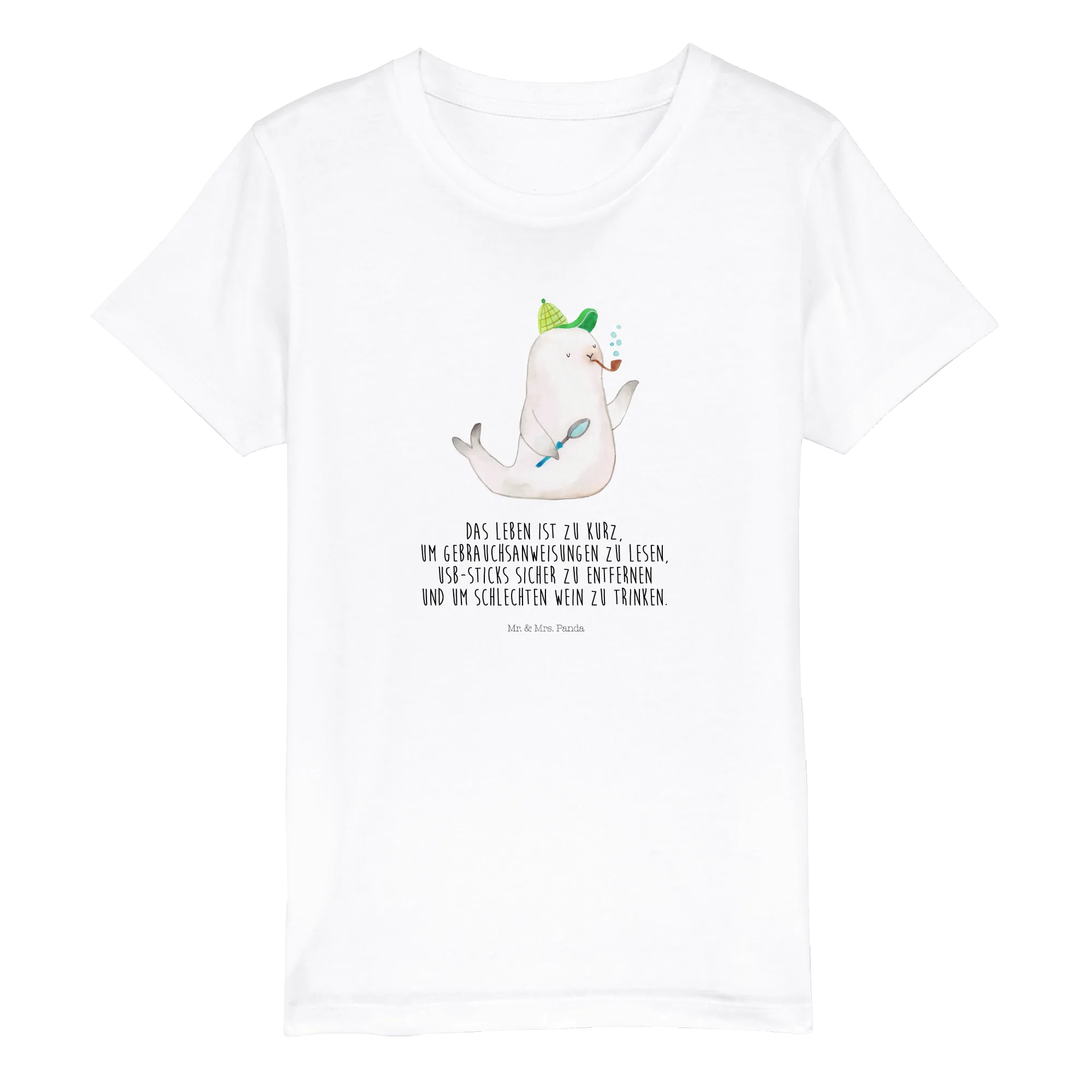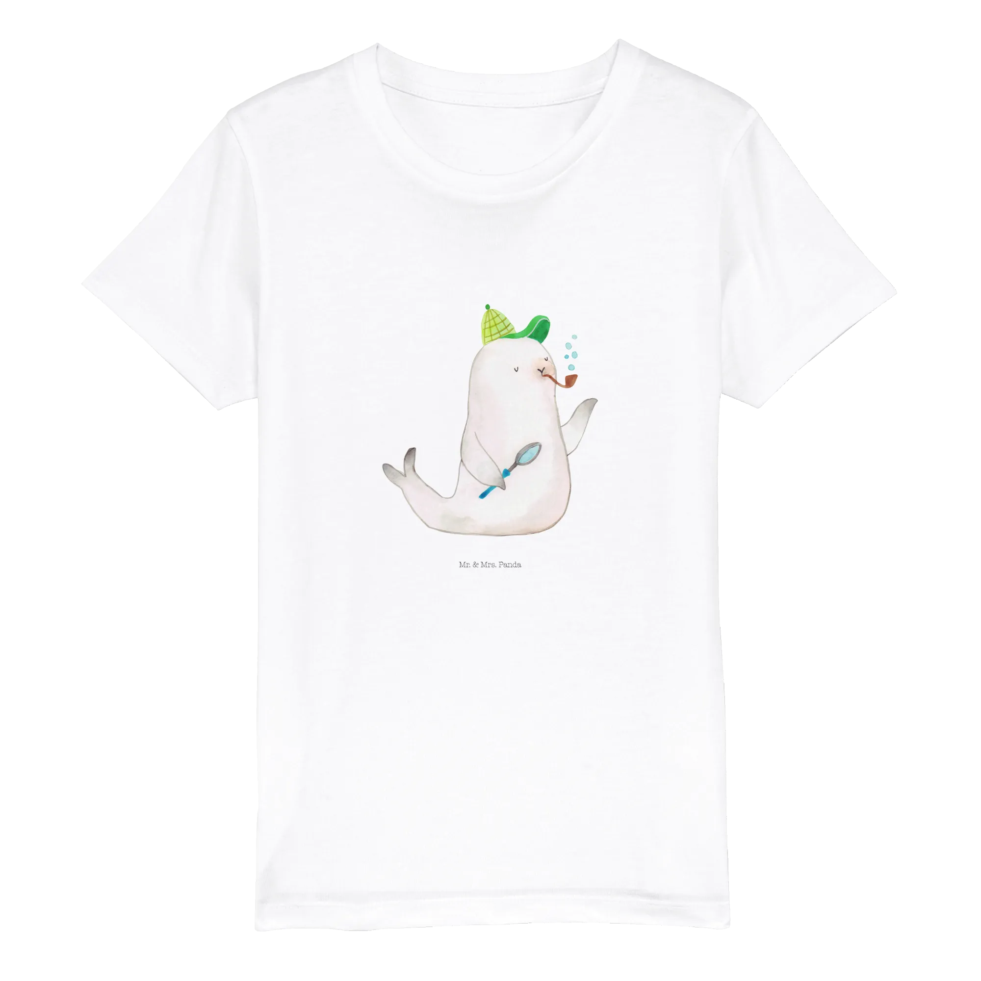 Organiczna koszulka dziecięca foka Sherlock - 12-14 Jahre (152/164) - z napisem - biały
