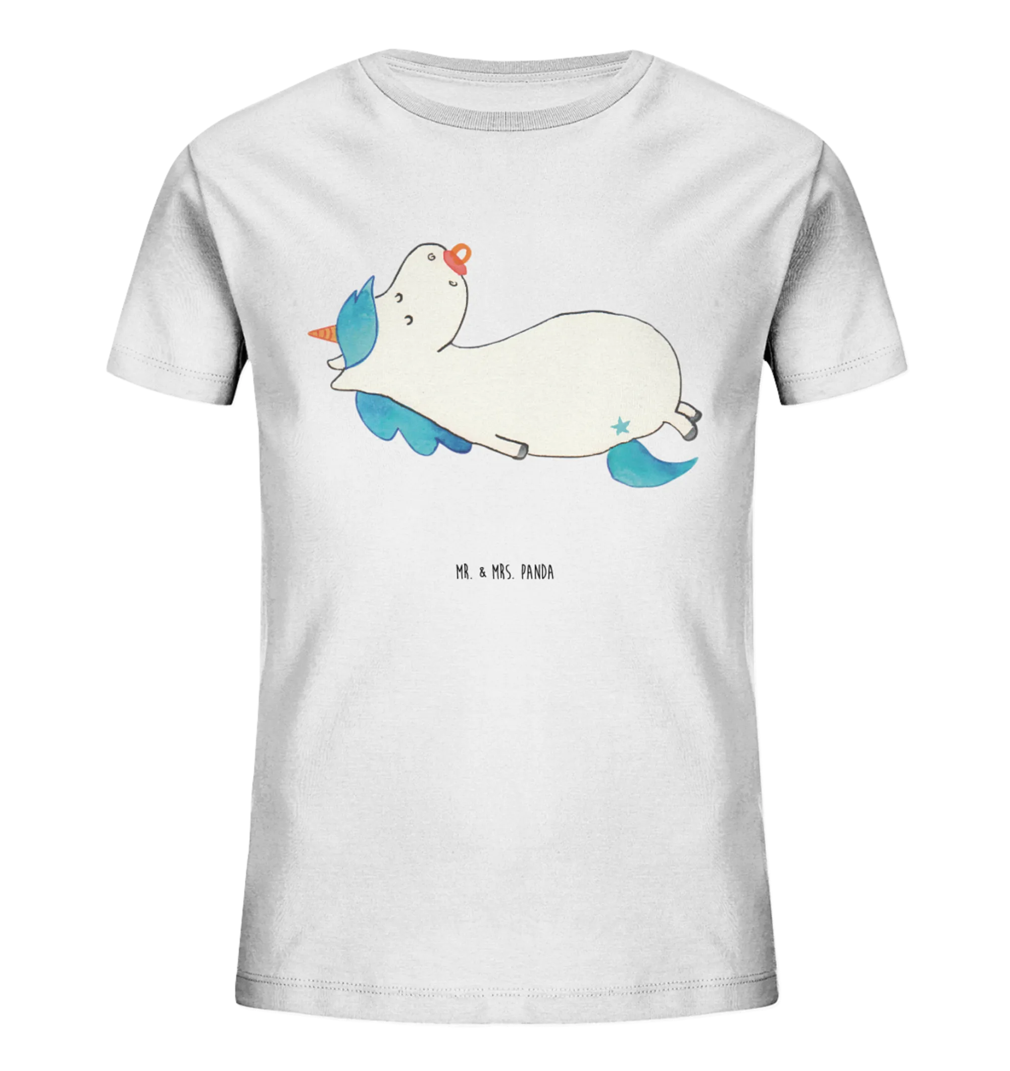 Das wundervolle Organic Kinder T-Shirt "Einhorn Schnullie" aus der Einhorn-Kollektion von Mr. & Mrs. Panda ist das perfekte Geschenk für kleine Einhorn-Fans und ihre Mamas! Mit viel Liebe handgezeichnet, zeigt unser süßes Einhorn, wie es glücklich mit einem Schnuller im Mund schläft.
