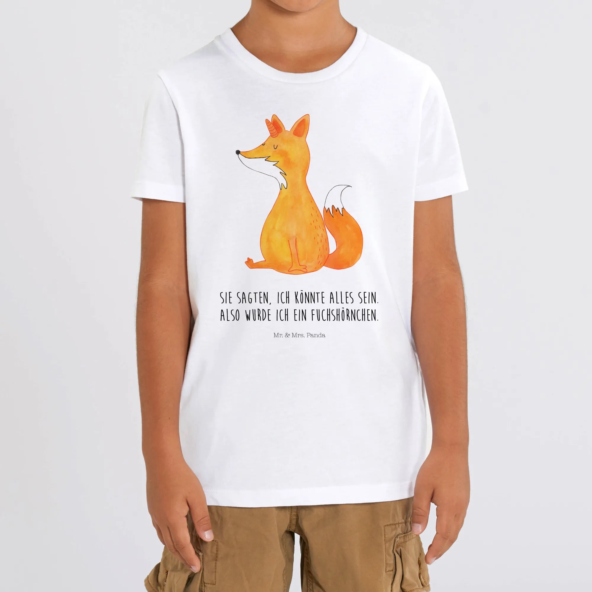 Suchst du ein nachhaltiges, liebevoll gestaltetes Geschenk für kleine Träumerinnen und Träumer? Unser Kinder T-Shirt aus der Einhorn - Kollektion von Mr. & Mrs. Panda vereint eine zarte Aquarell-Illustration mit einem frechen Spruch: „Sie sagten, ich könnte alles sein. Also wurde ich ein Fuchshörnchen.“ Das Motiv zeigt einen orange-gelb schimmernden Fuchs mit einem spiralförmigen Einhornhorn – ein charmantes, phantasievolles Design, das sowohl Mädchen als auch Jungen begeistert.