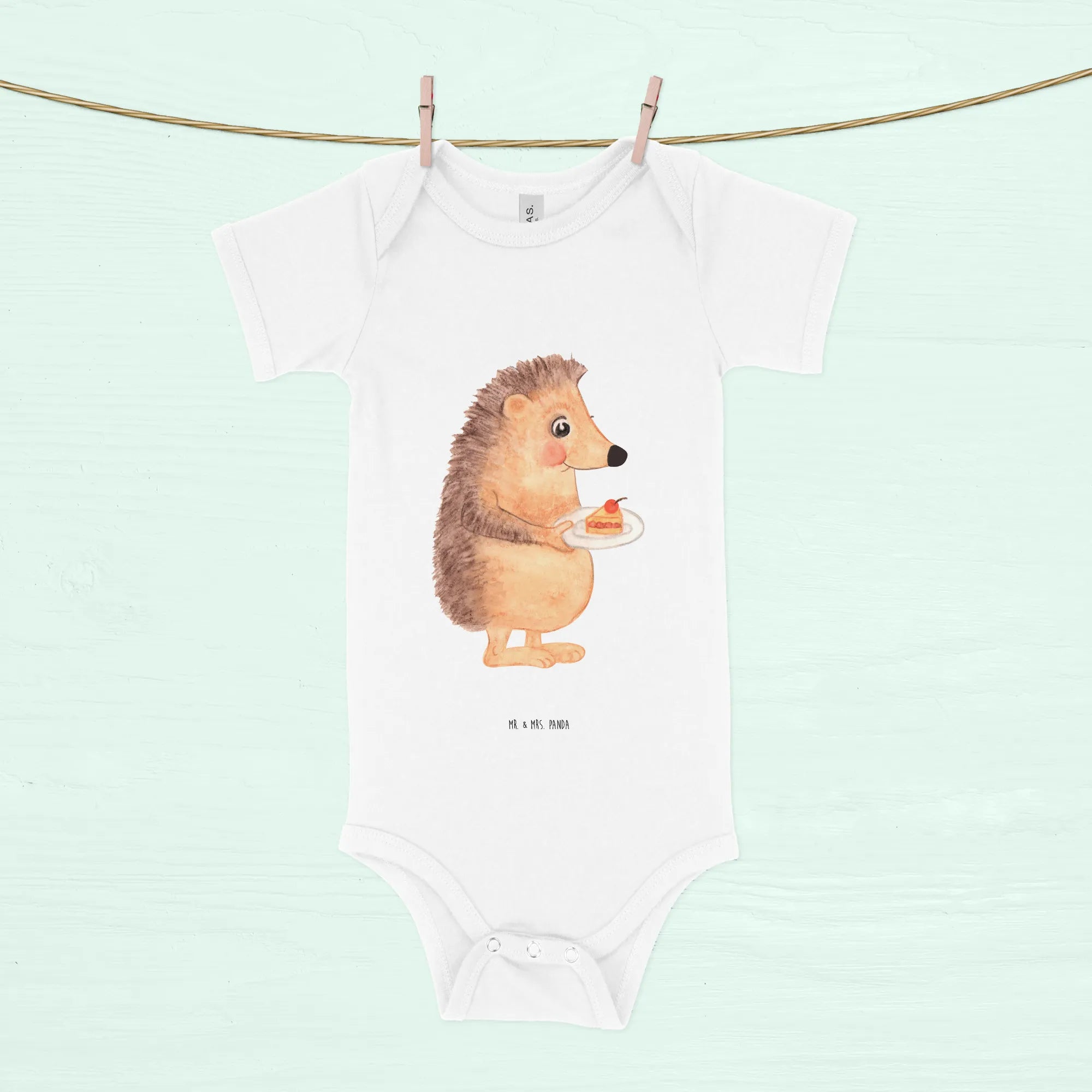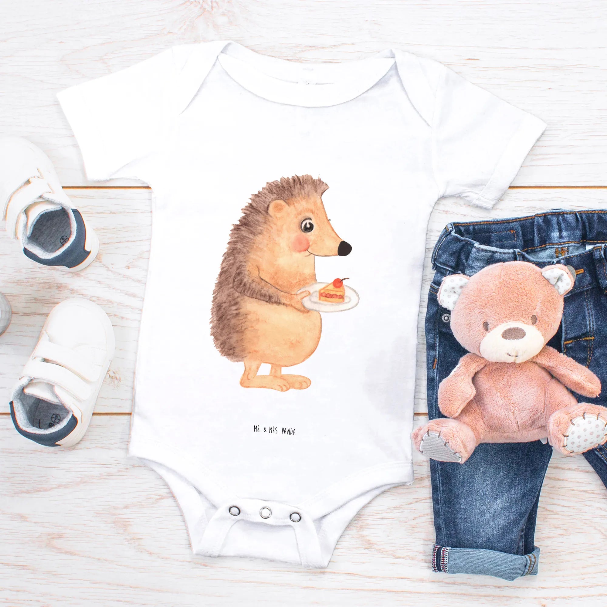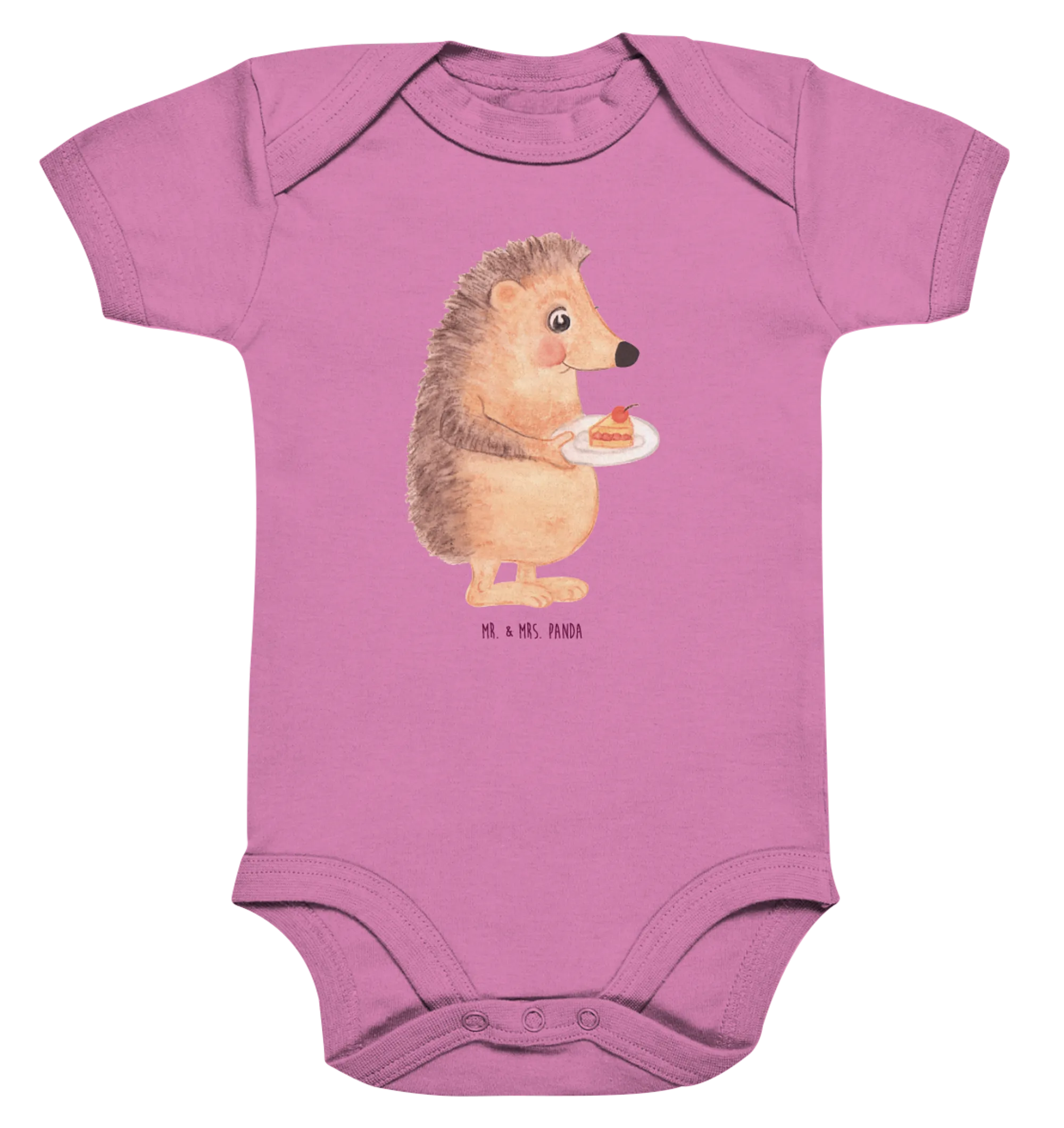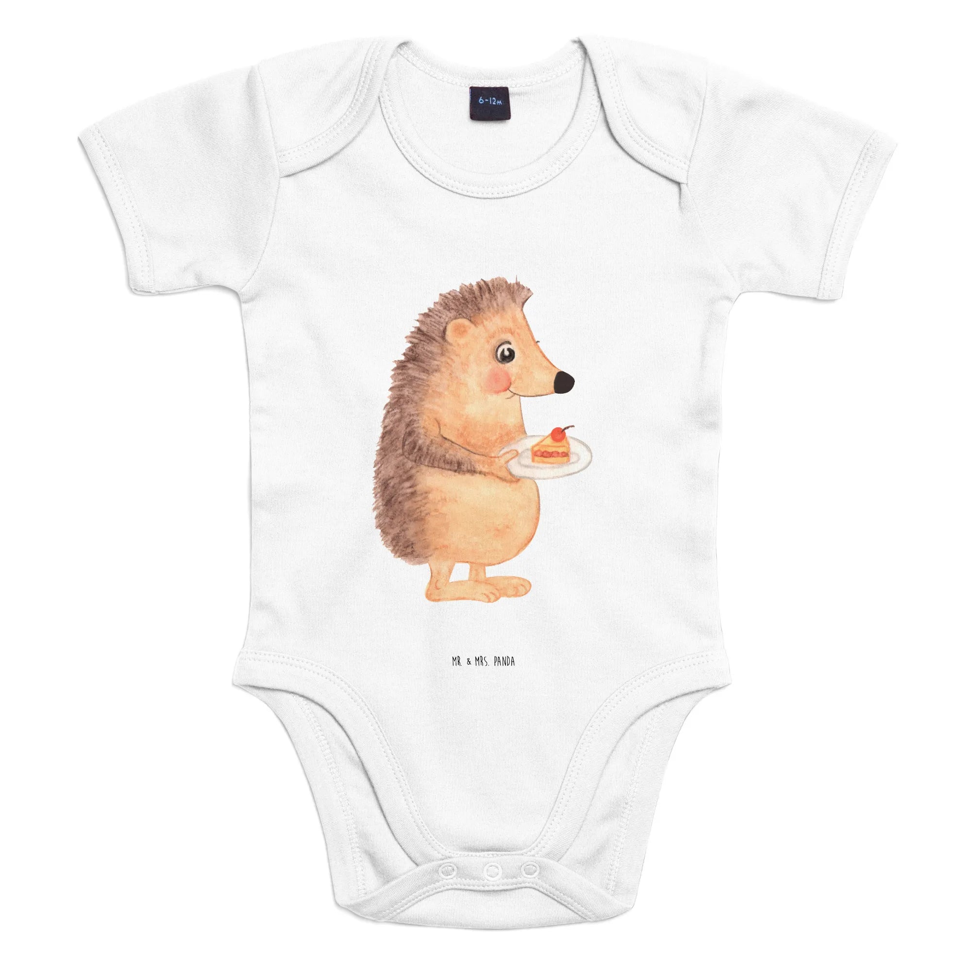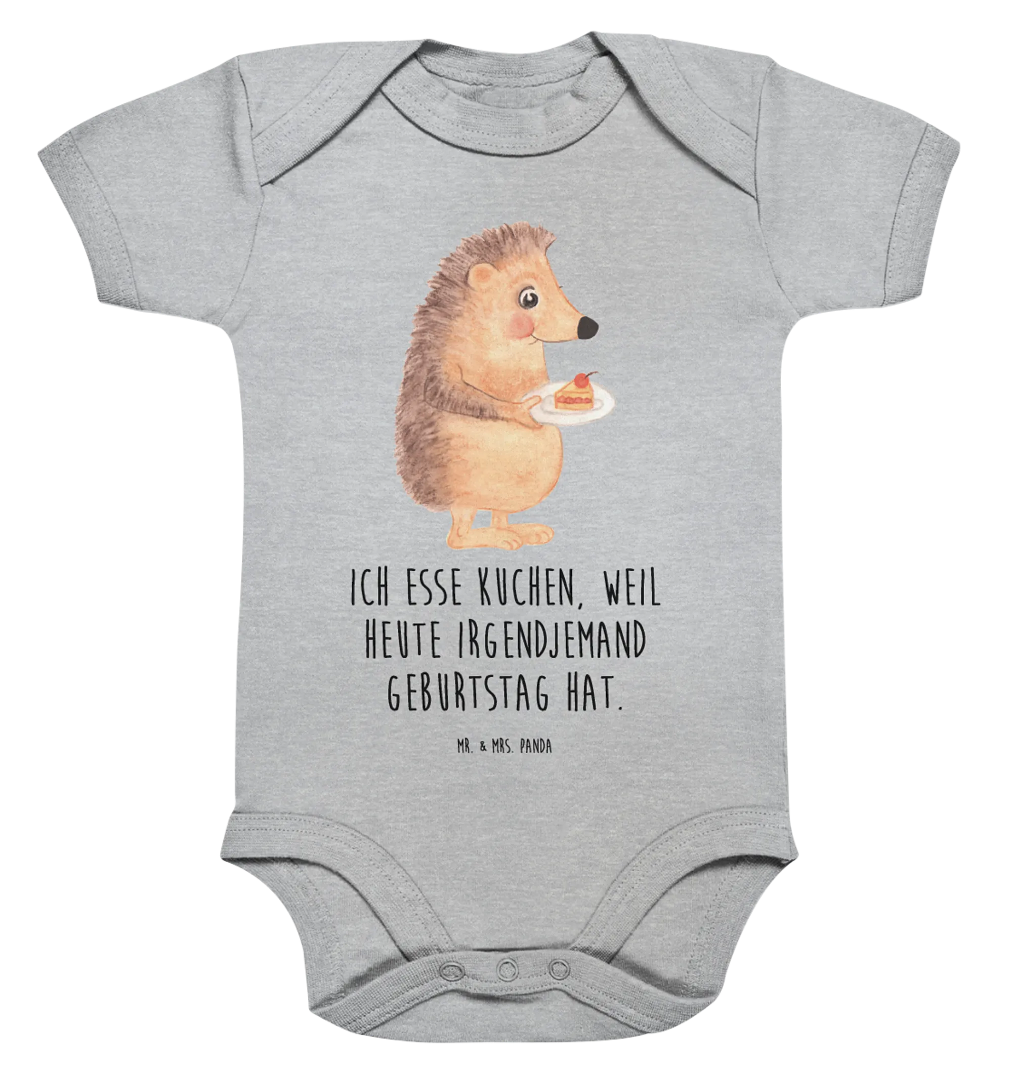 Organiczne body dla niemowląt jeż kawałek ciasta - 1. - 3. Monat - z napisem - Heather Grey