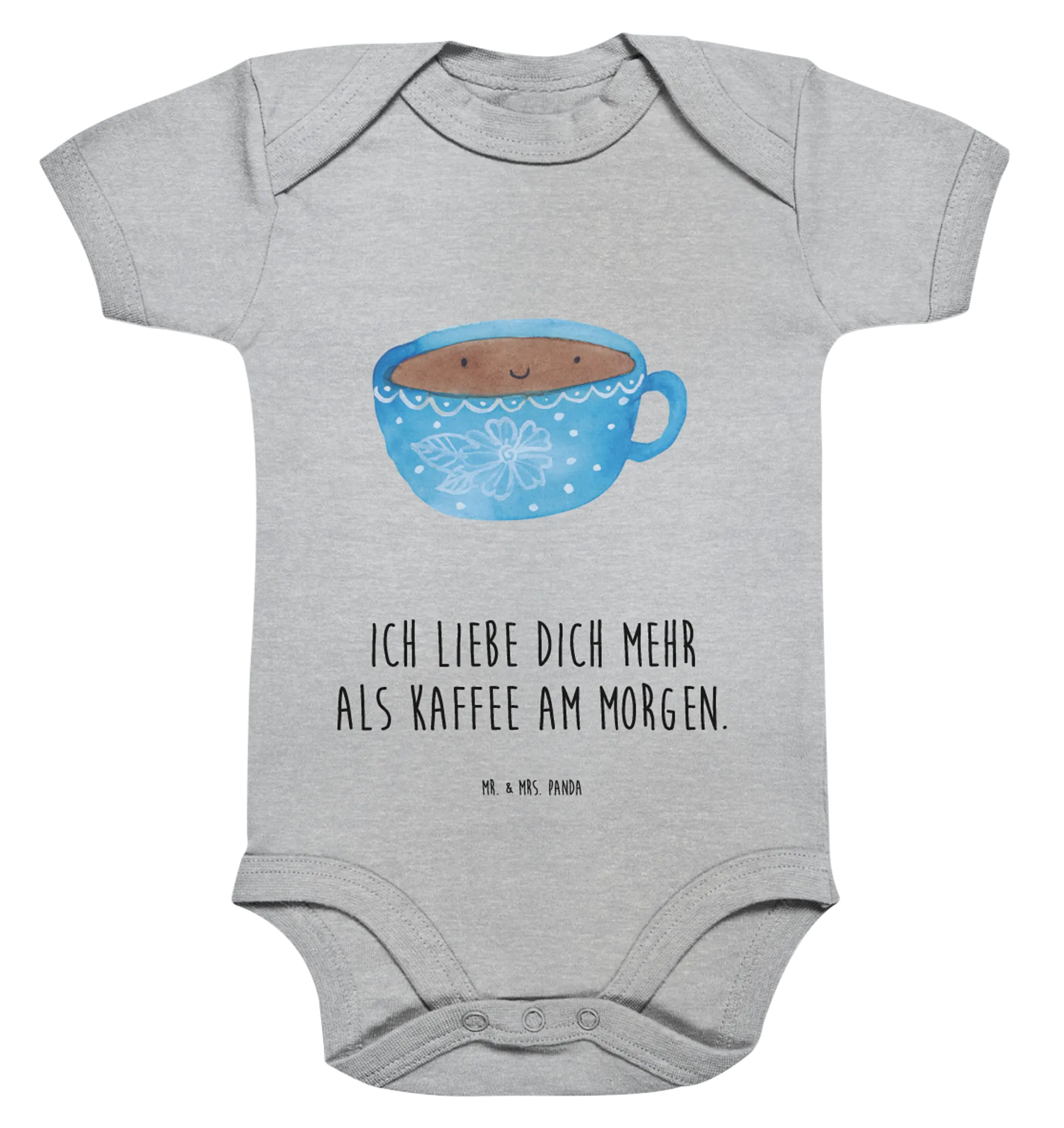 Organiczne body dla niemowląt Kawa kubek - 1. - 3. Monat - z napisem - Heather Grey