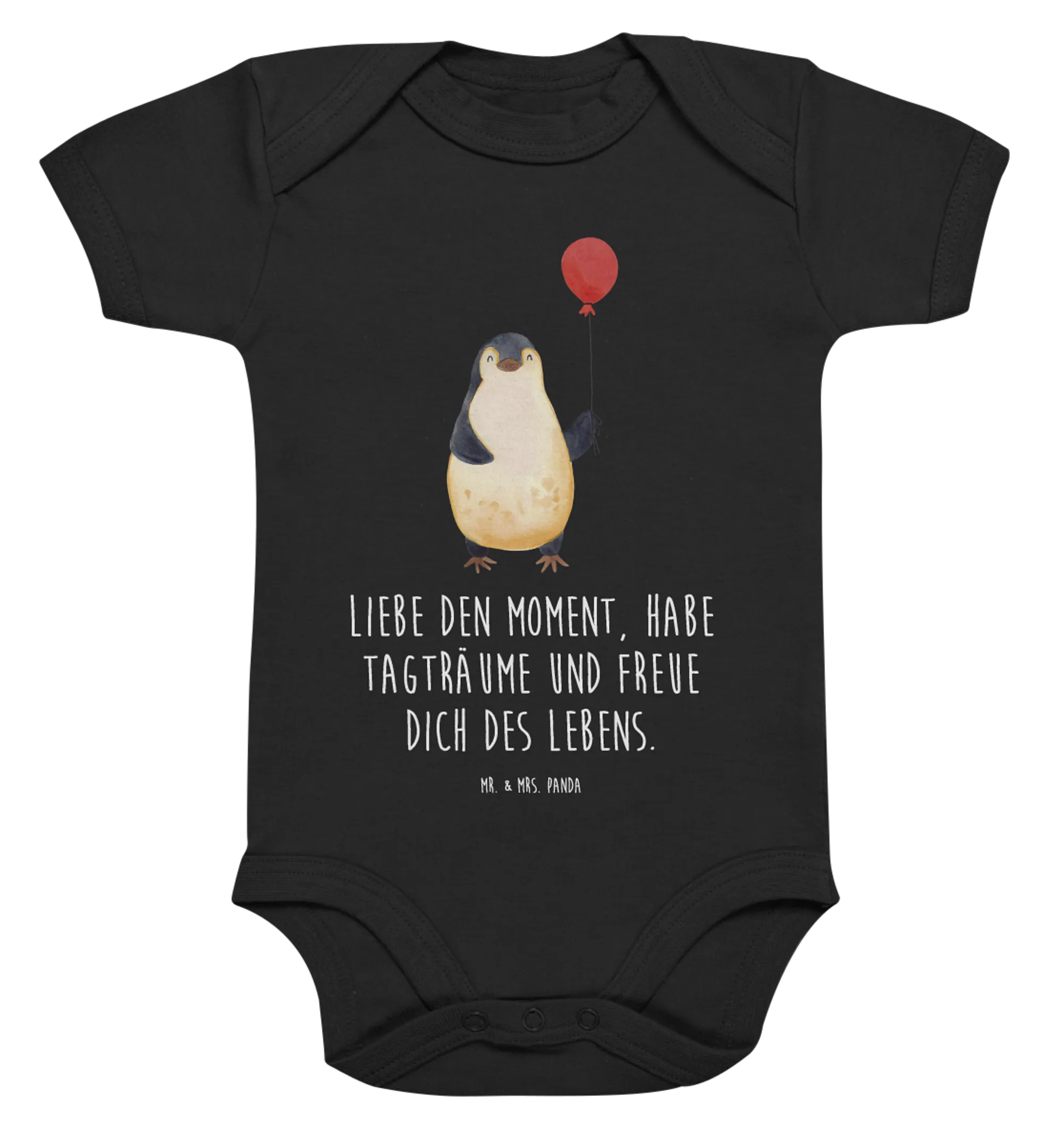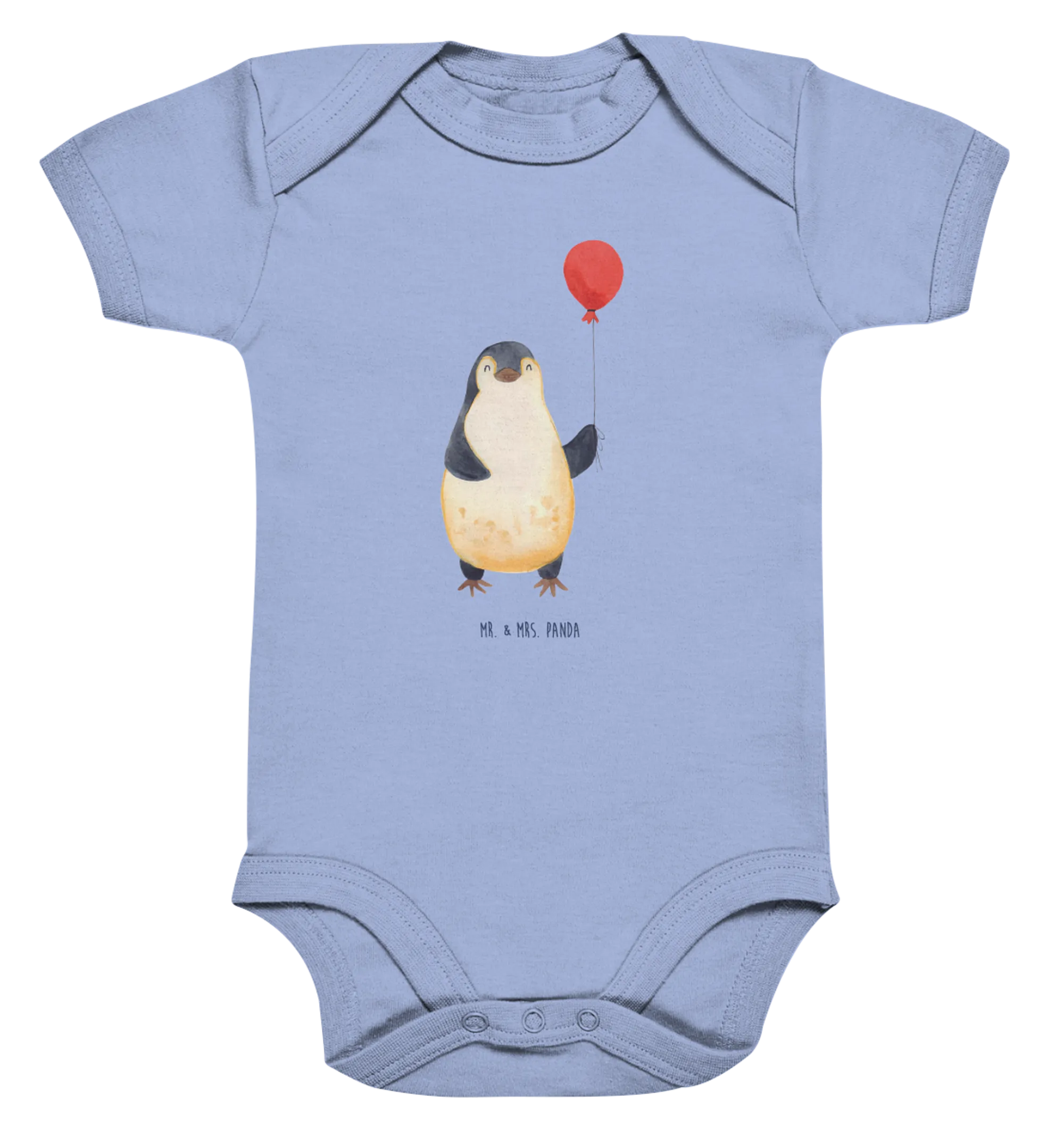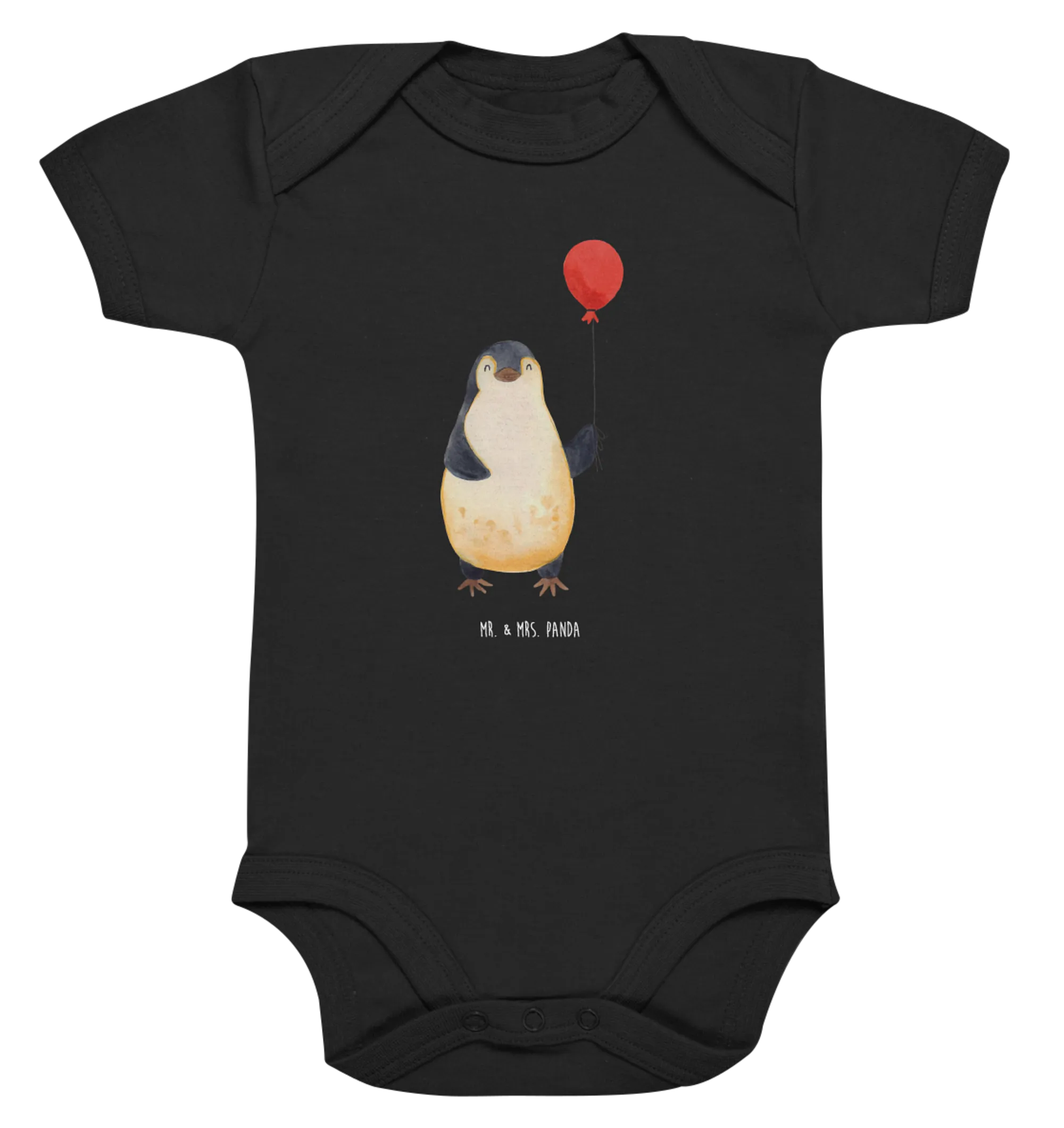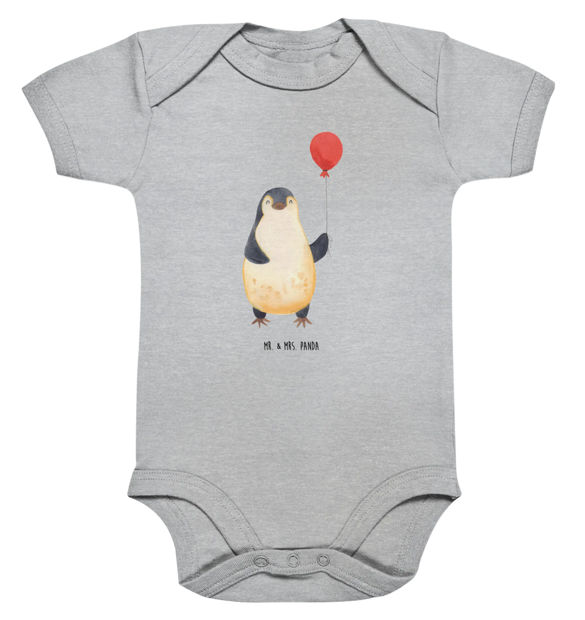 Organiczne body dla niemowląt pingwin balon - 3. - 6. miesiąc - z napisem - Heather Grey